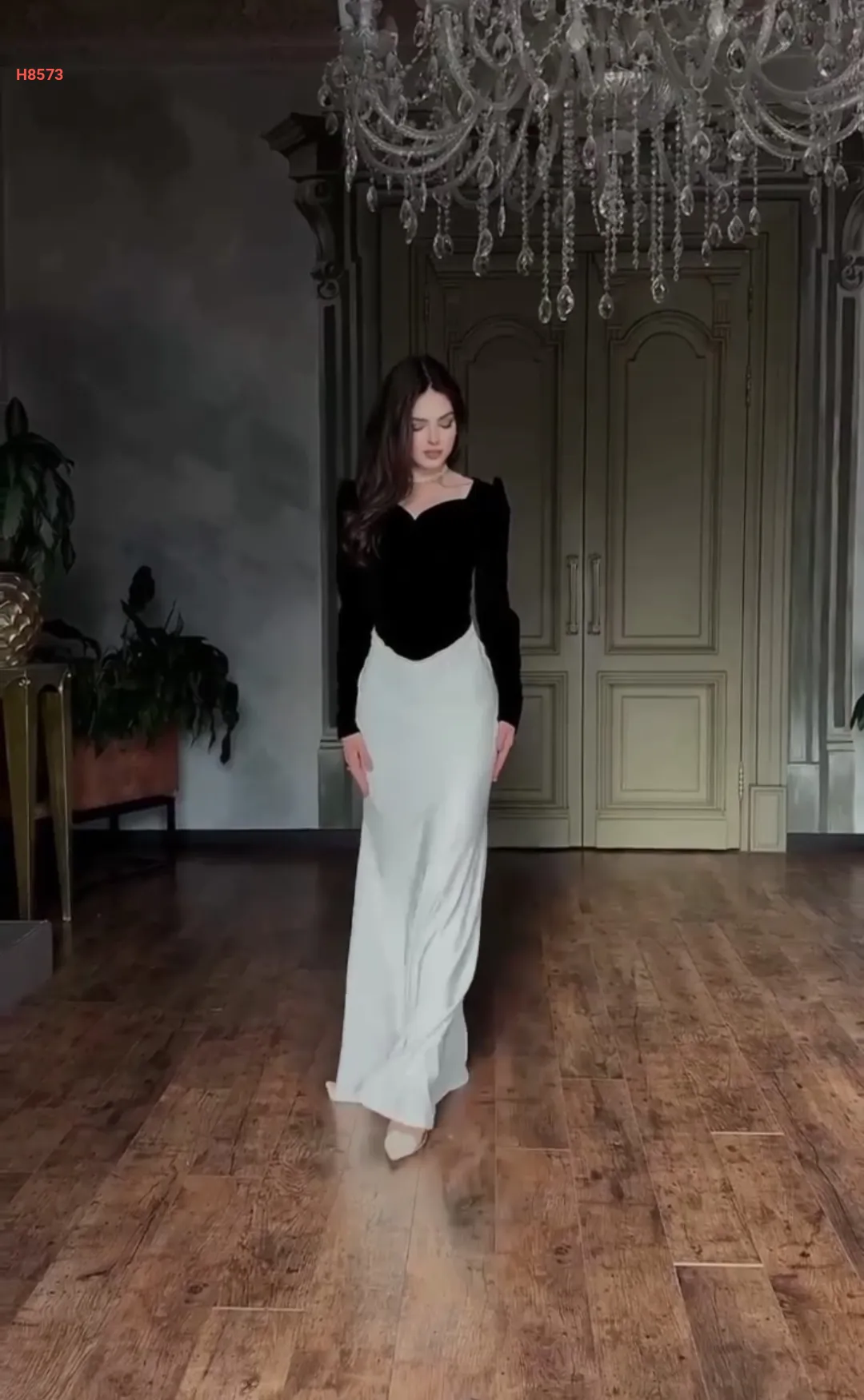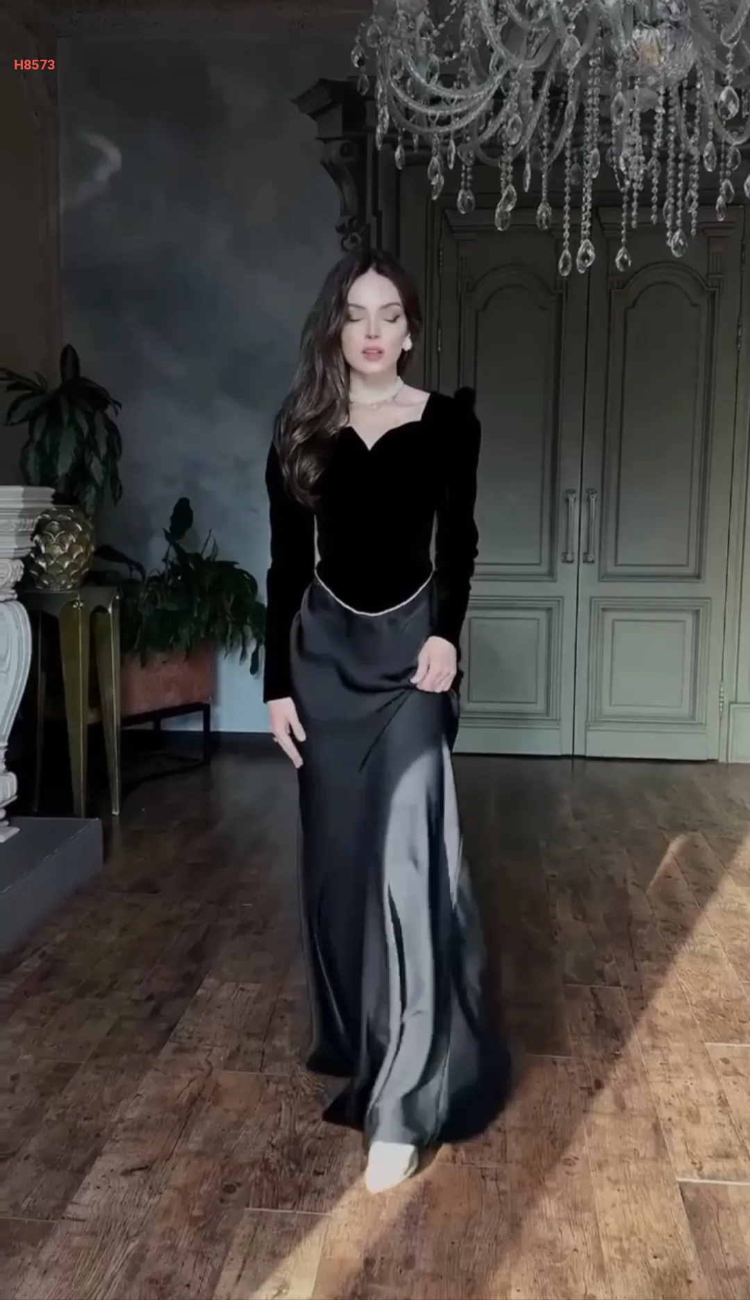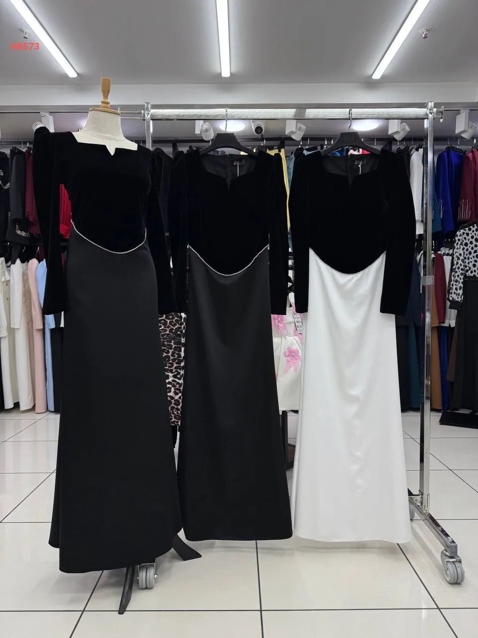 فستان سواريه سادة مخمل ساتان ، بأكمام
