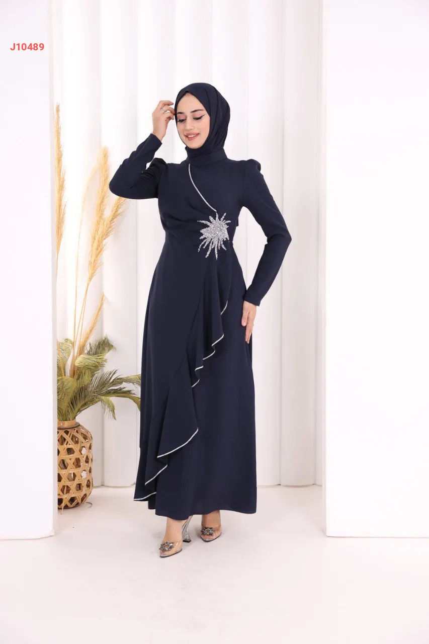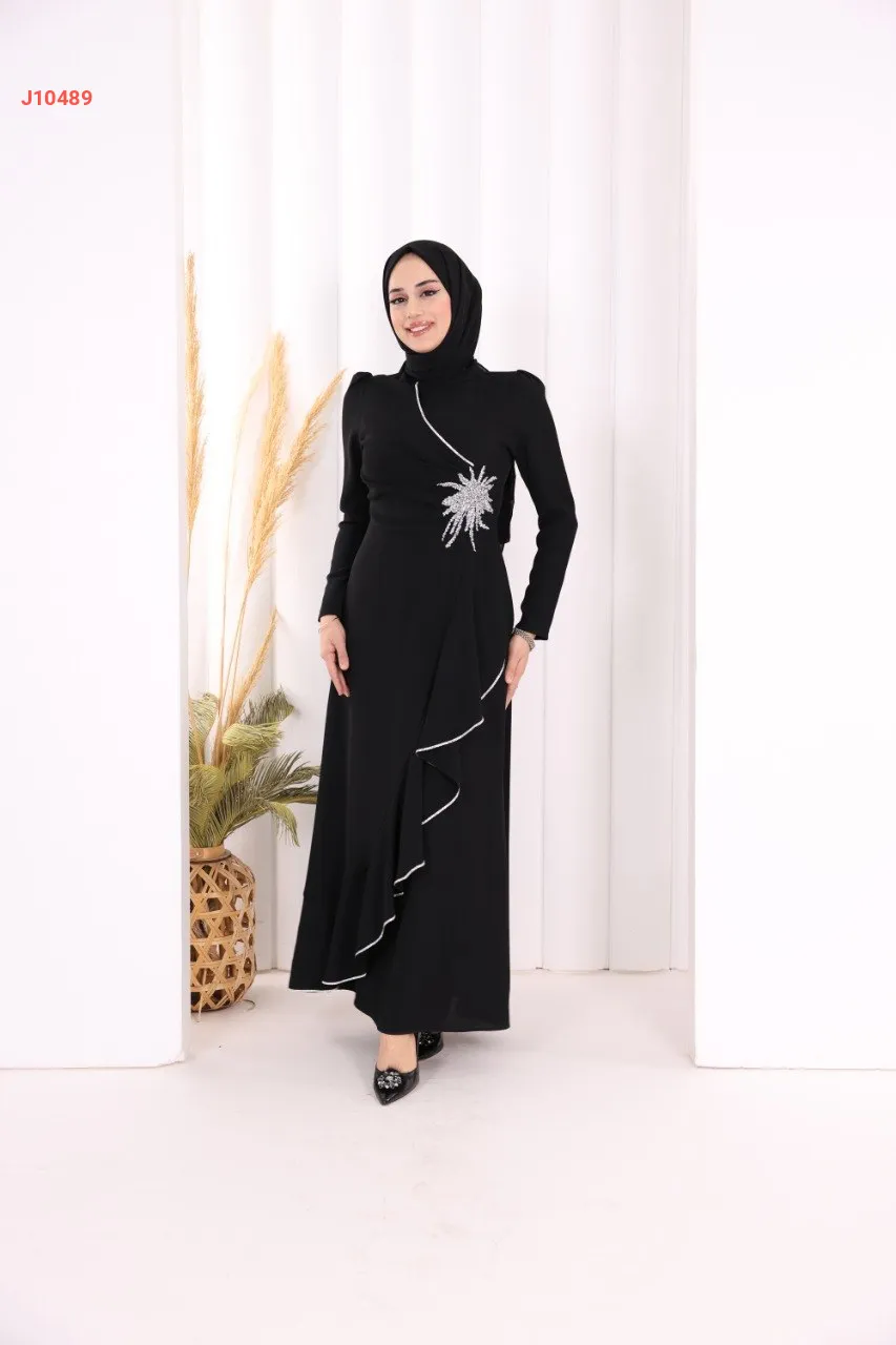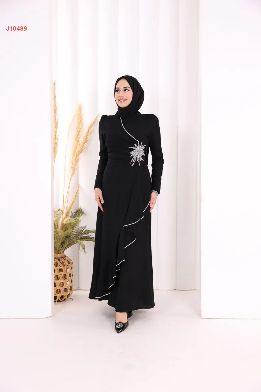فستان سواريه سادة مع عرق ألماس فضي على جنب