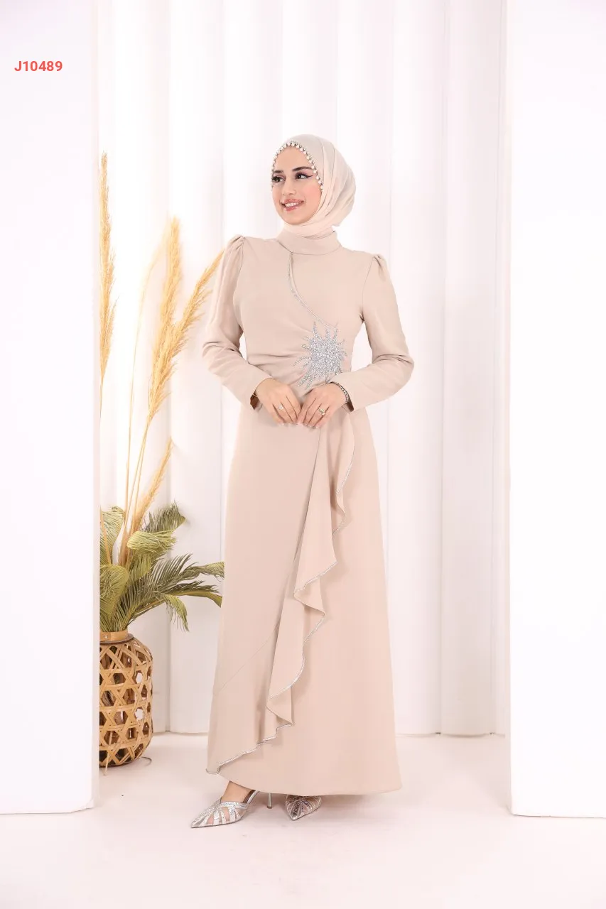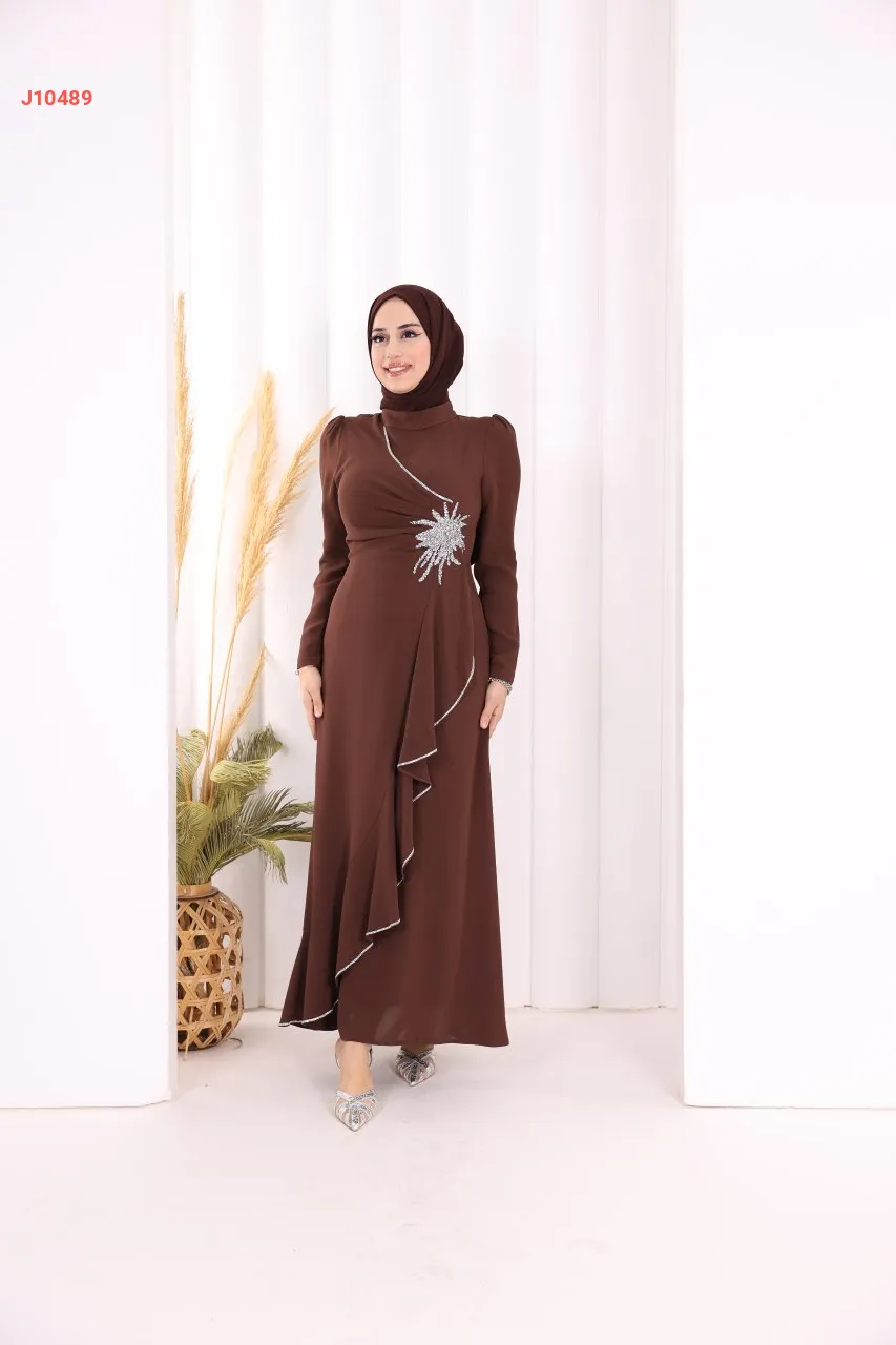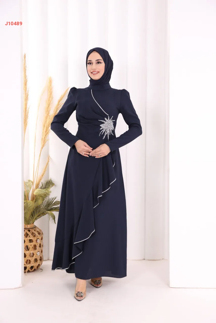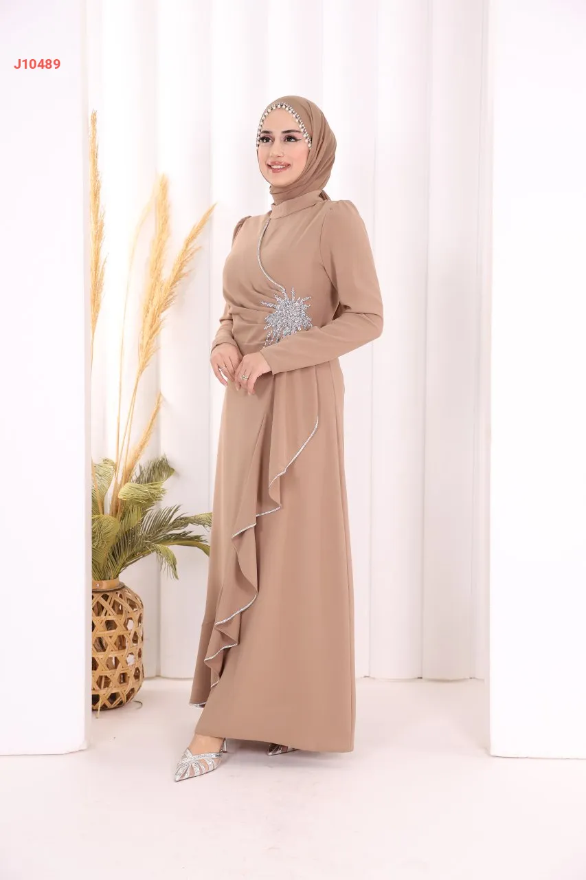 فستان سواريه سادة مع عرق ألماس فضي على جنب