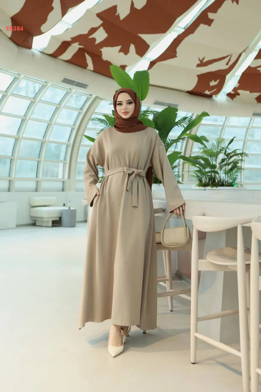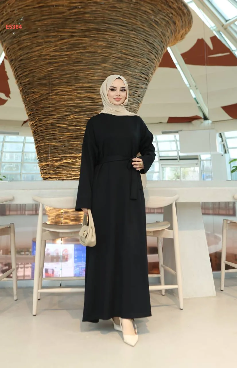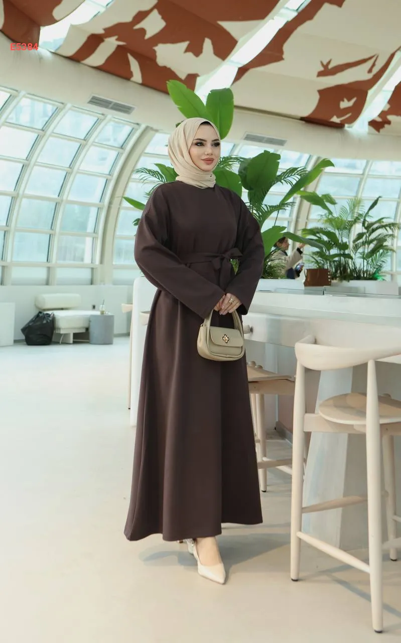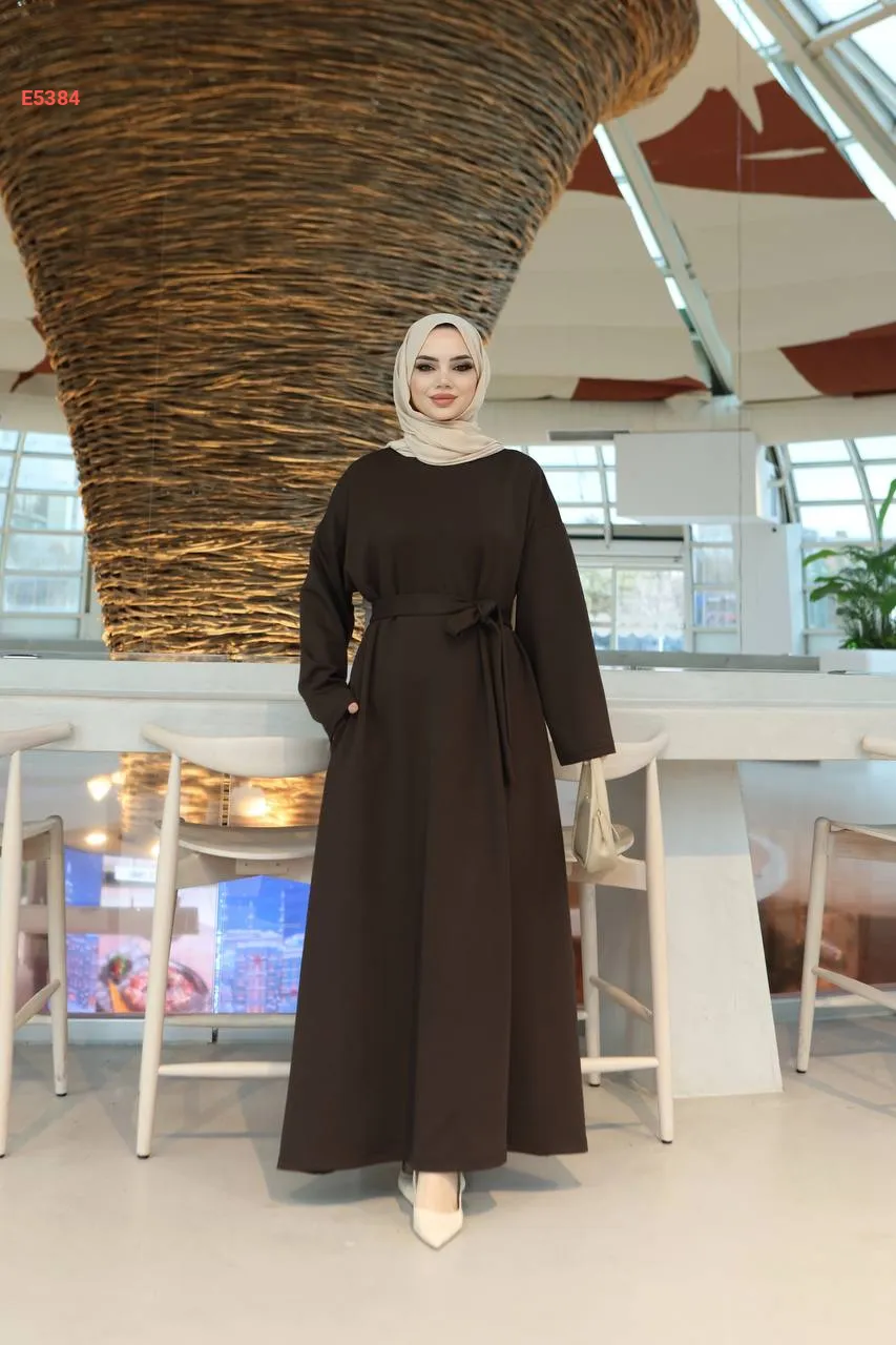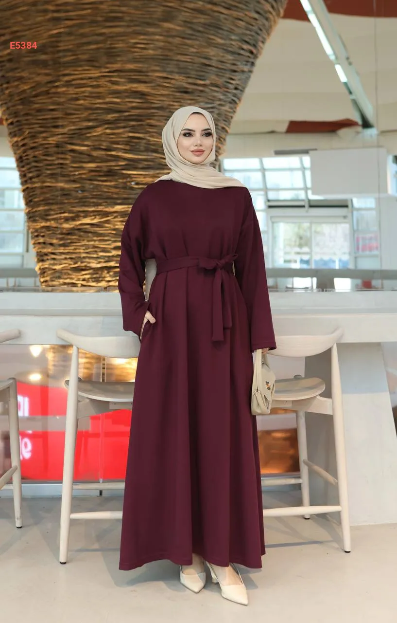فستان طويل سادة مع حزام