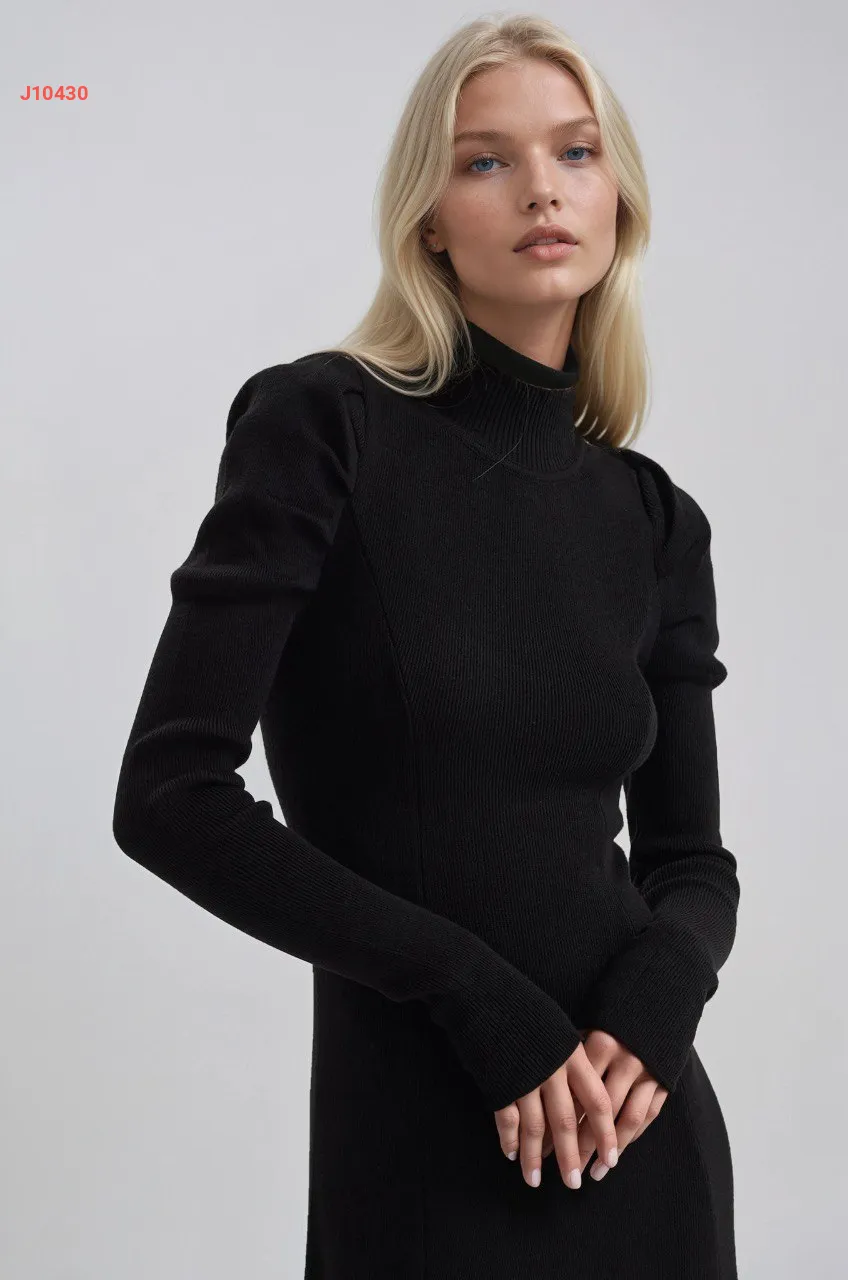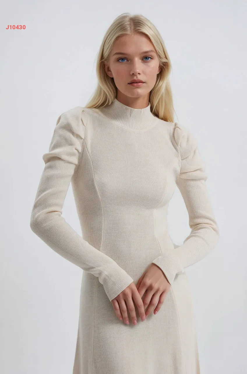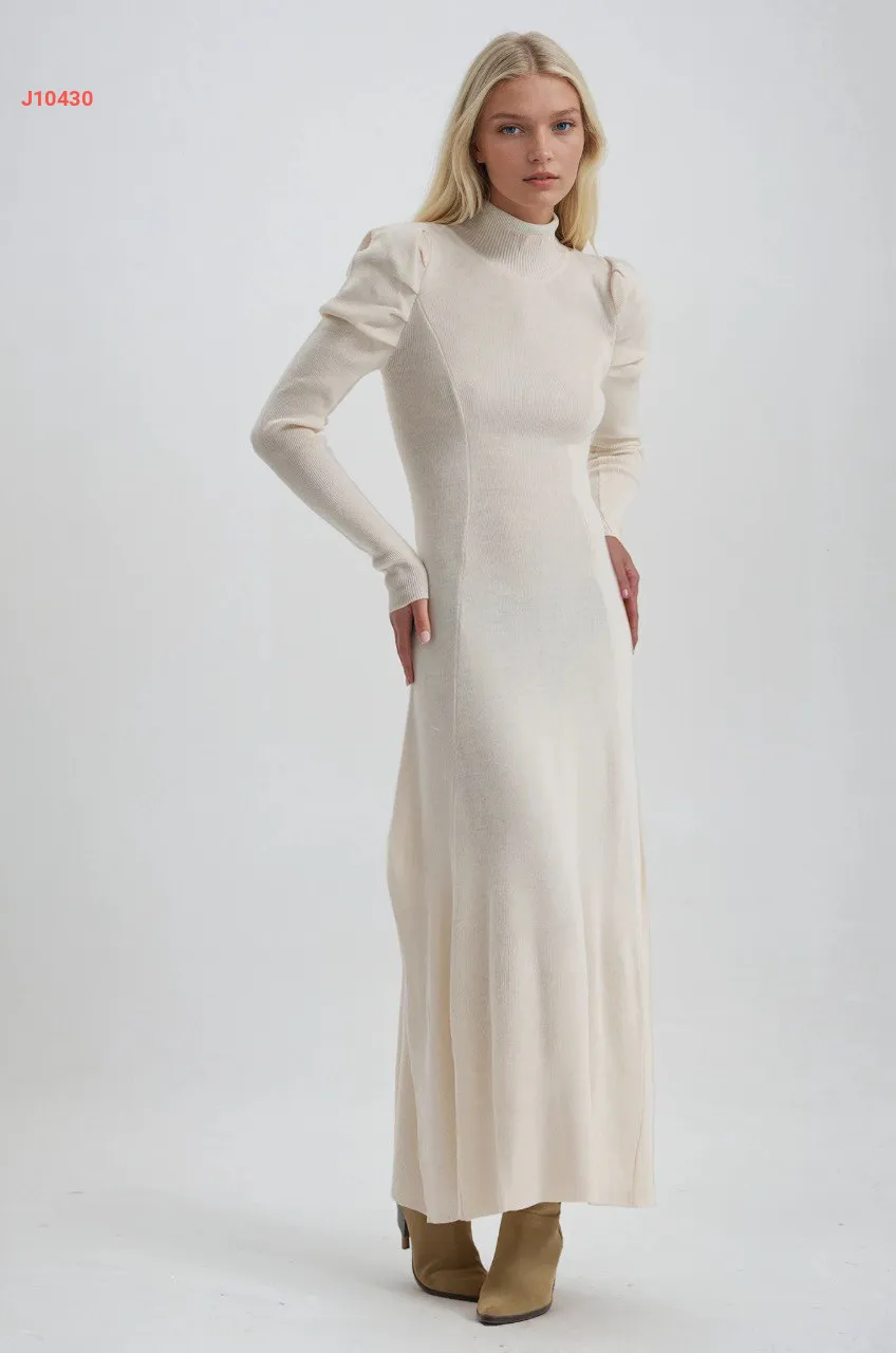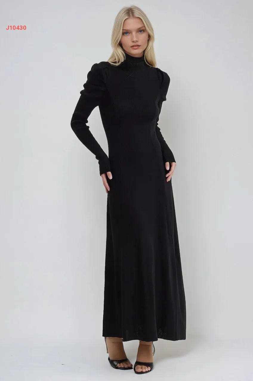 فستان طويل سادة بأكمام مجمعة