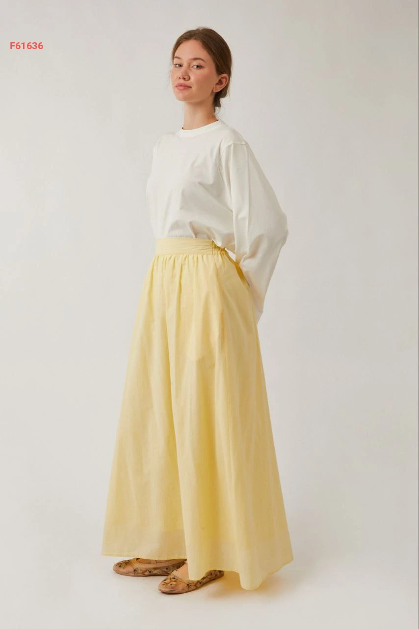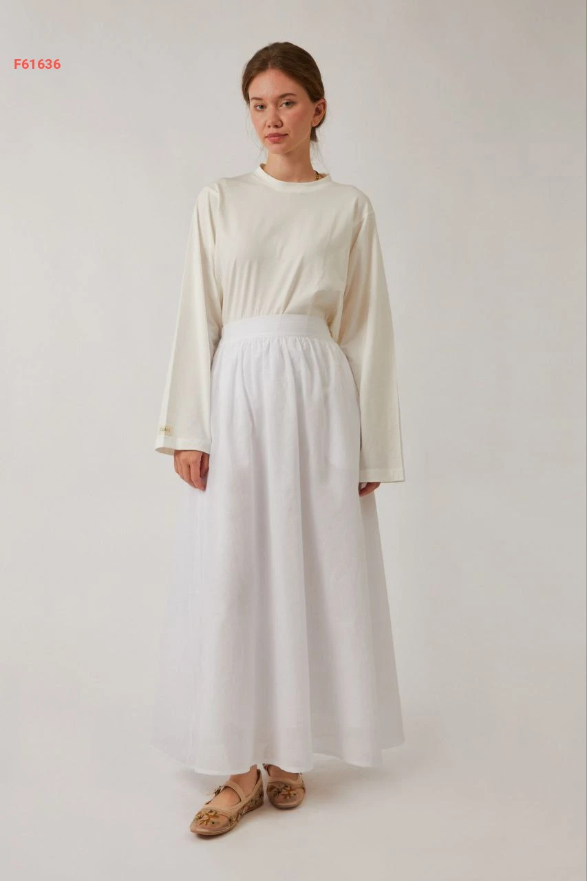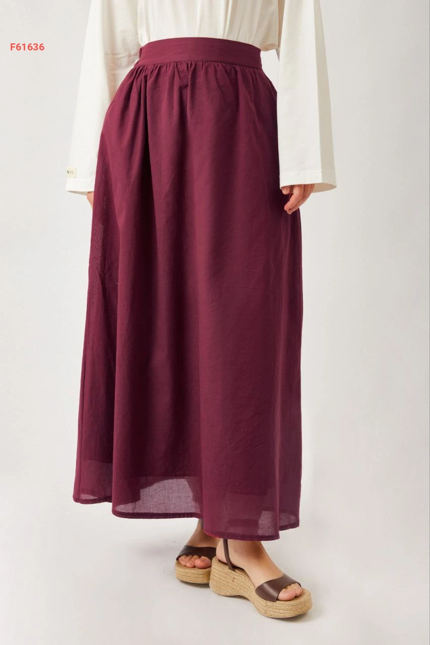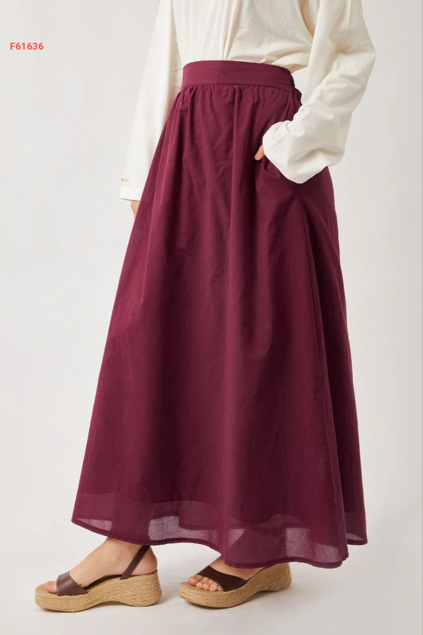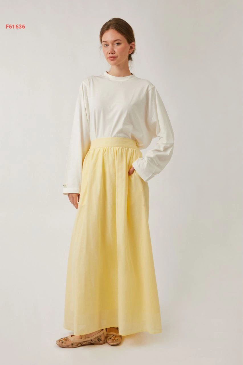 تنورة سادة طويلة بخصر مطاطي وجيب