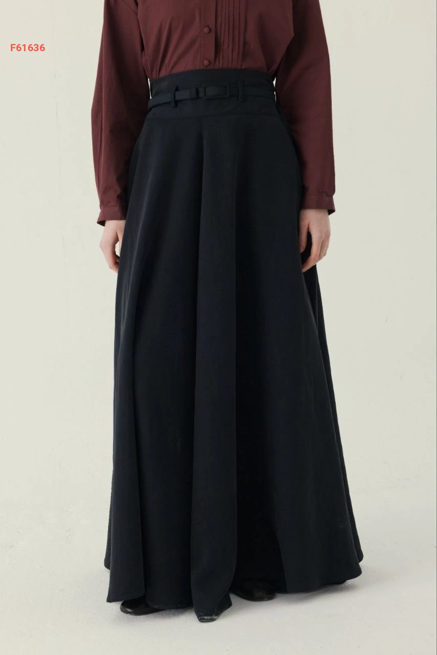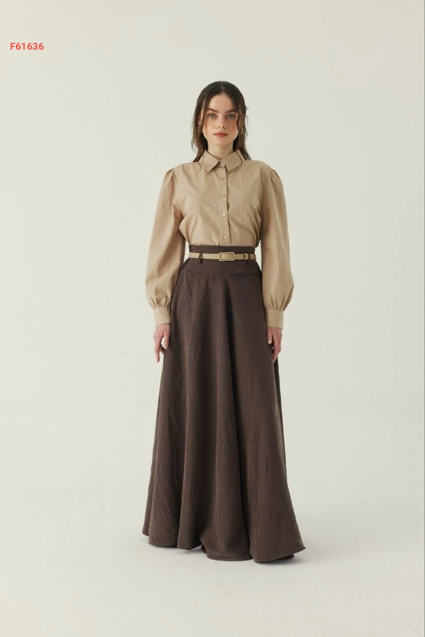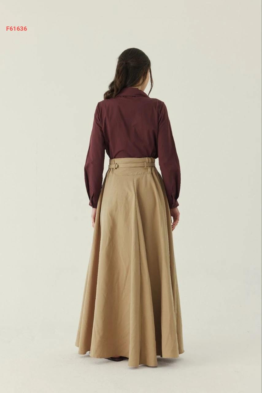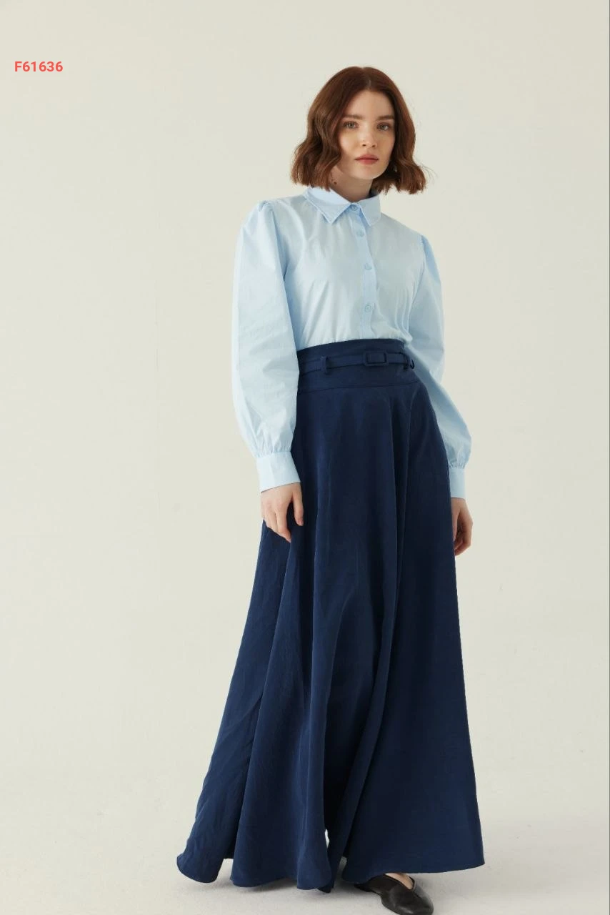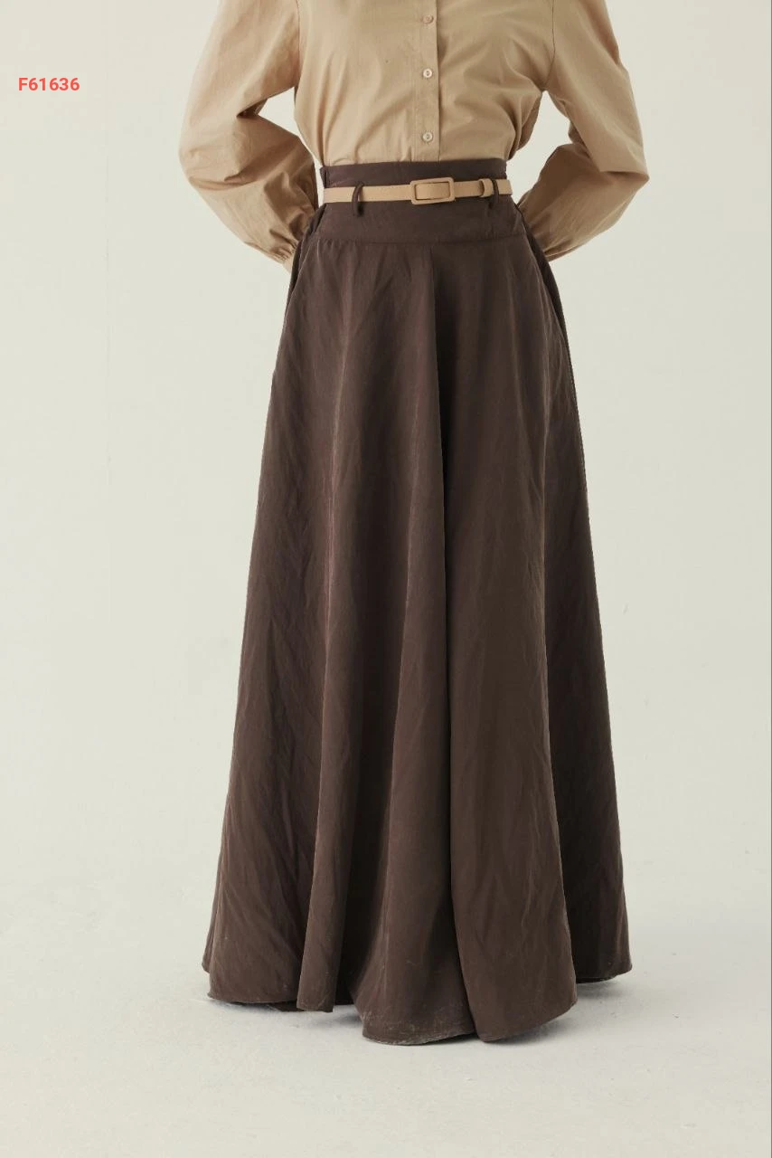 تنورة طويلة سادة خصر عالي مع جيب وحزام