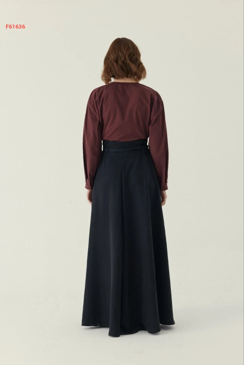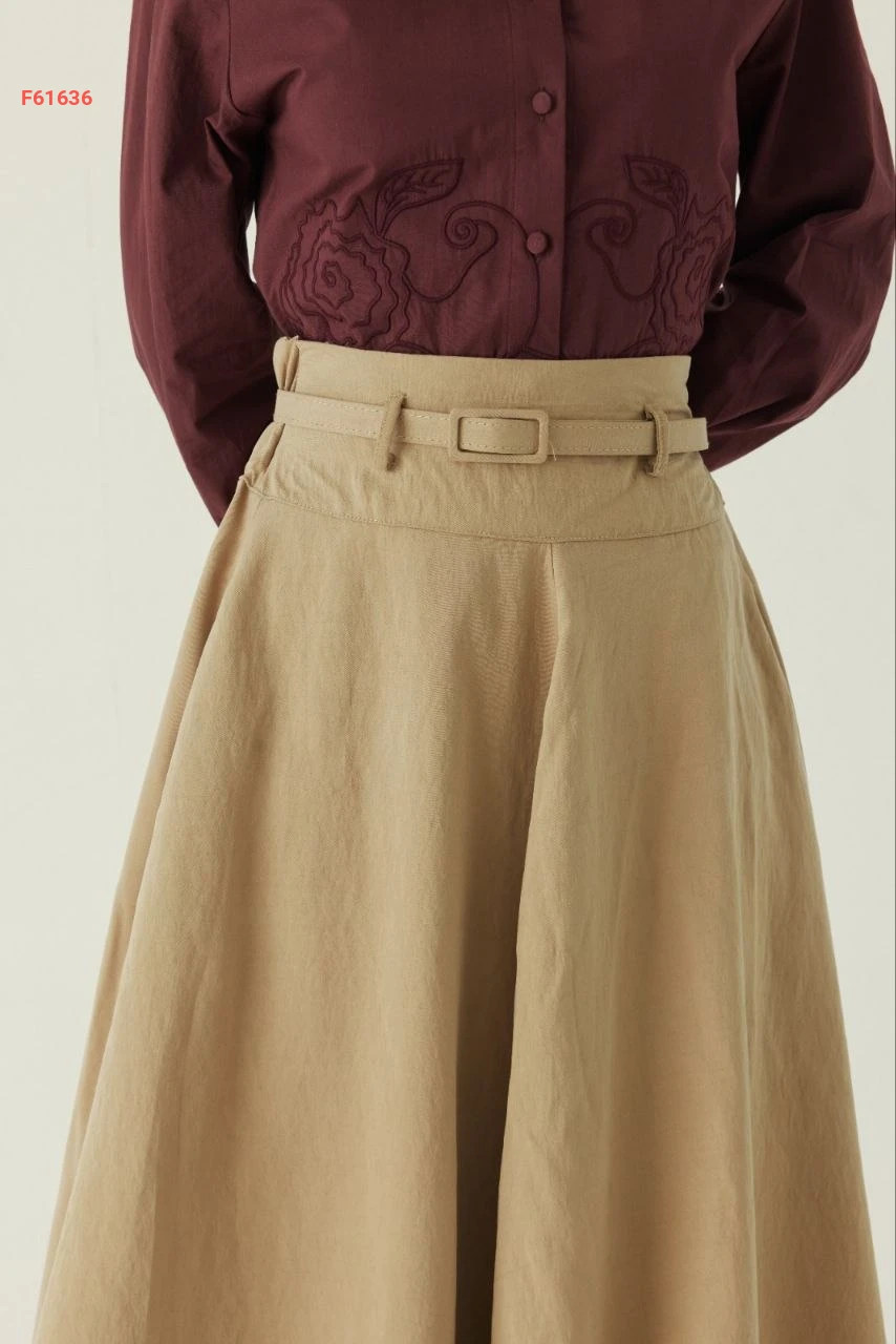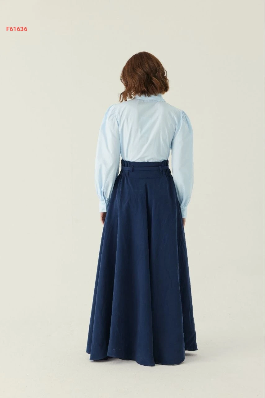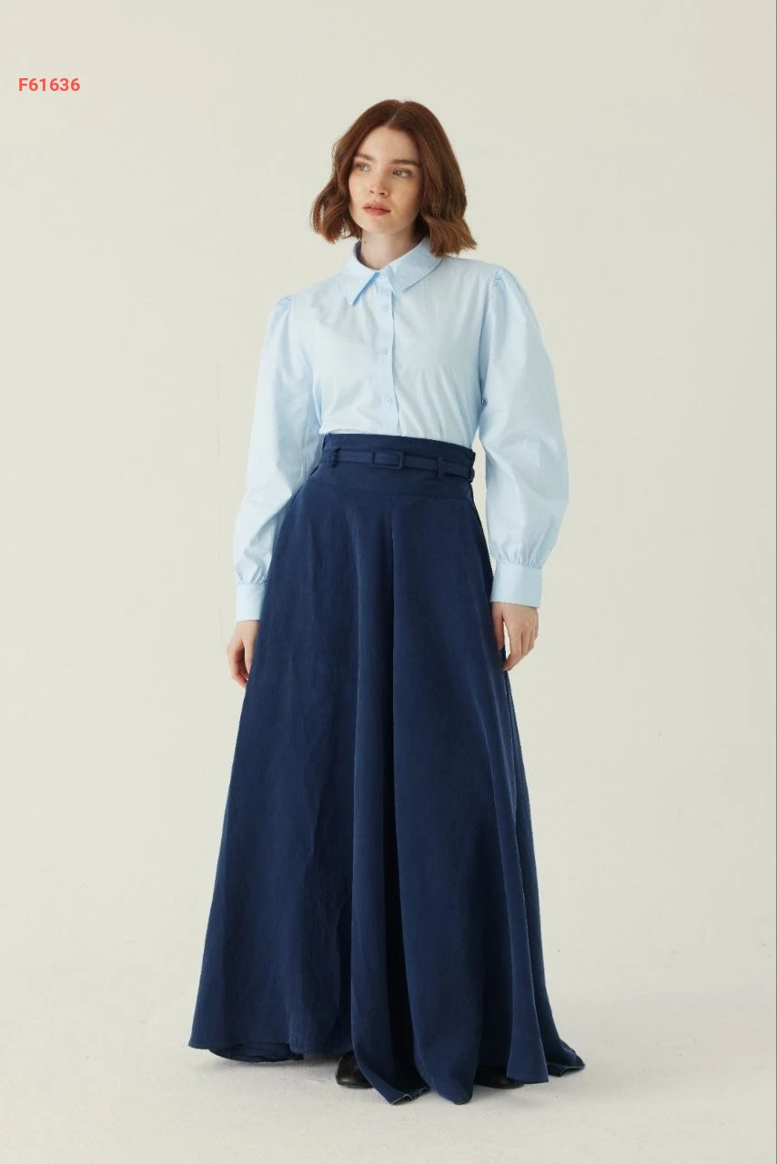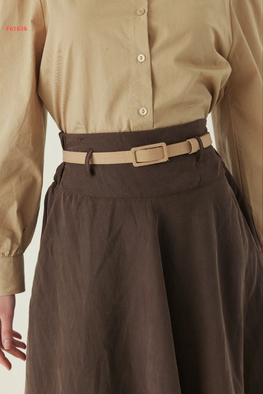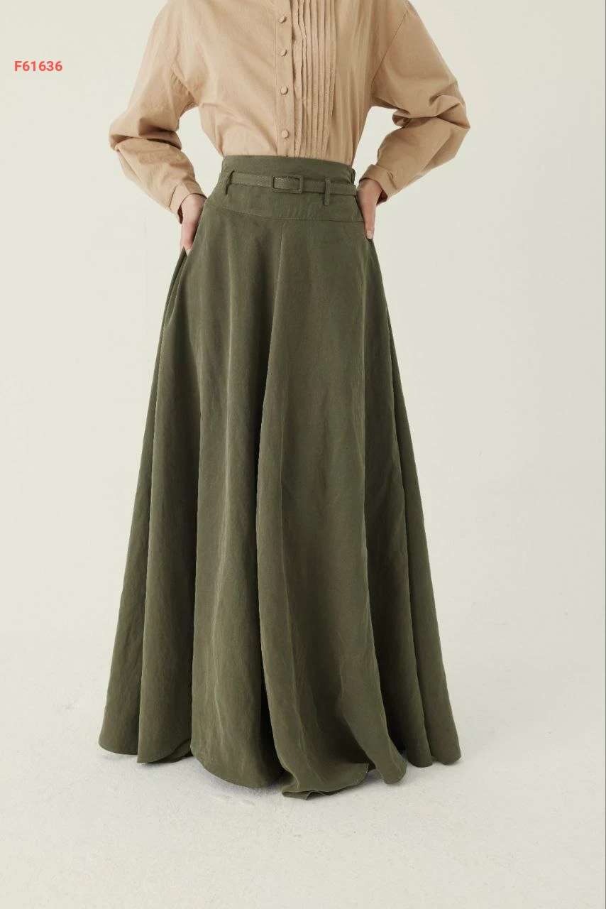 تنورة طويلة سادة خصر عالي مع جيب وحزام