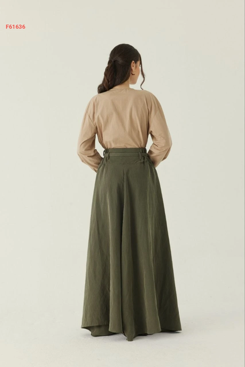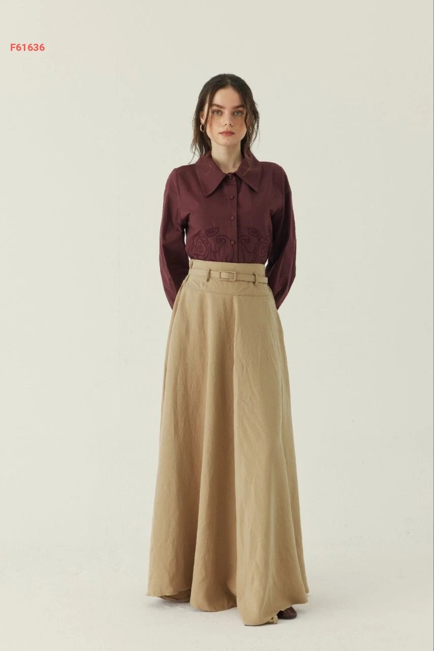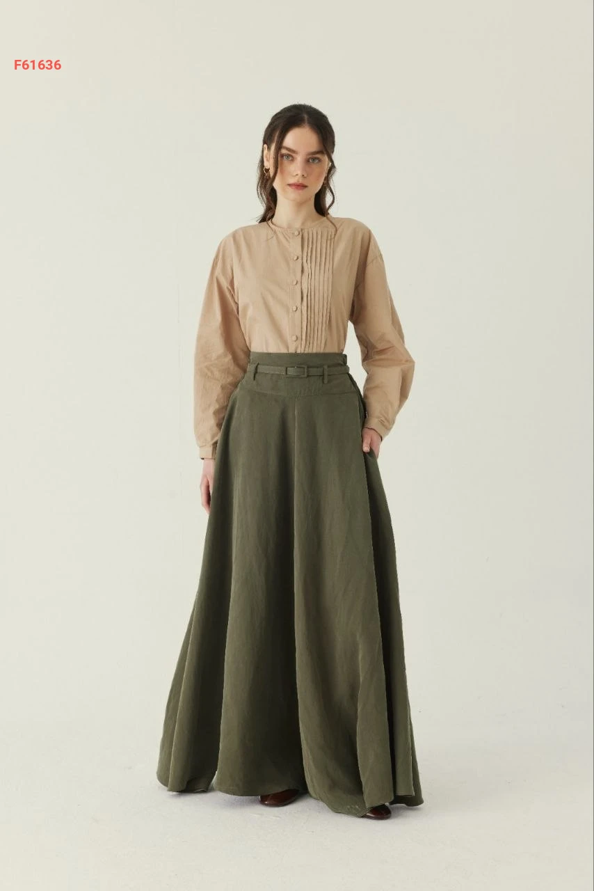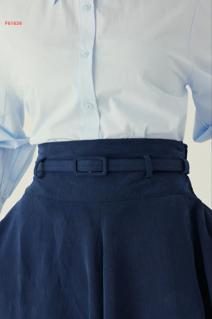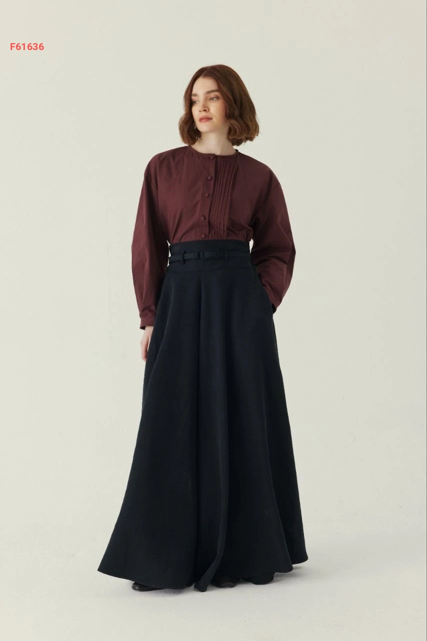 تنورة طويلة سادة خصر عالي مع جيب وحزام