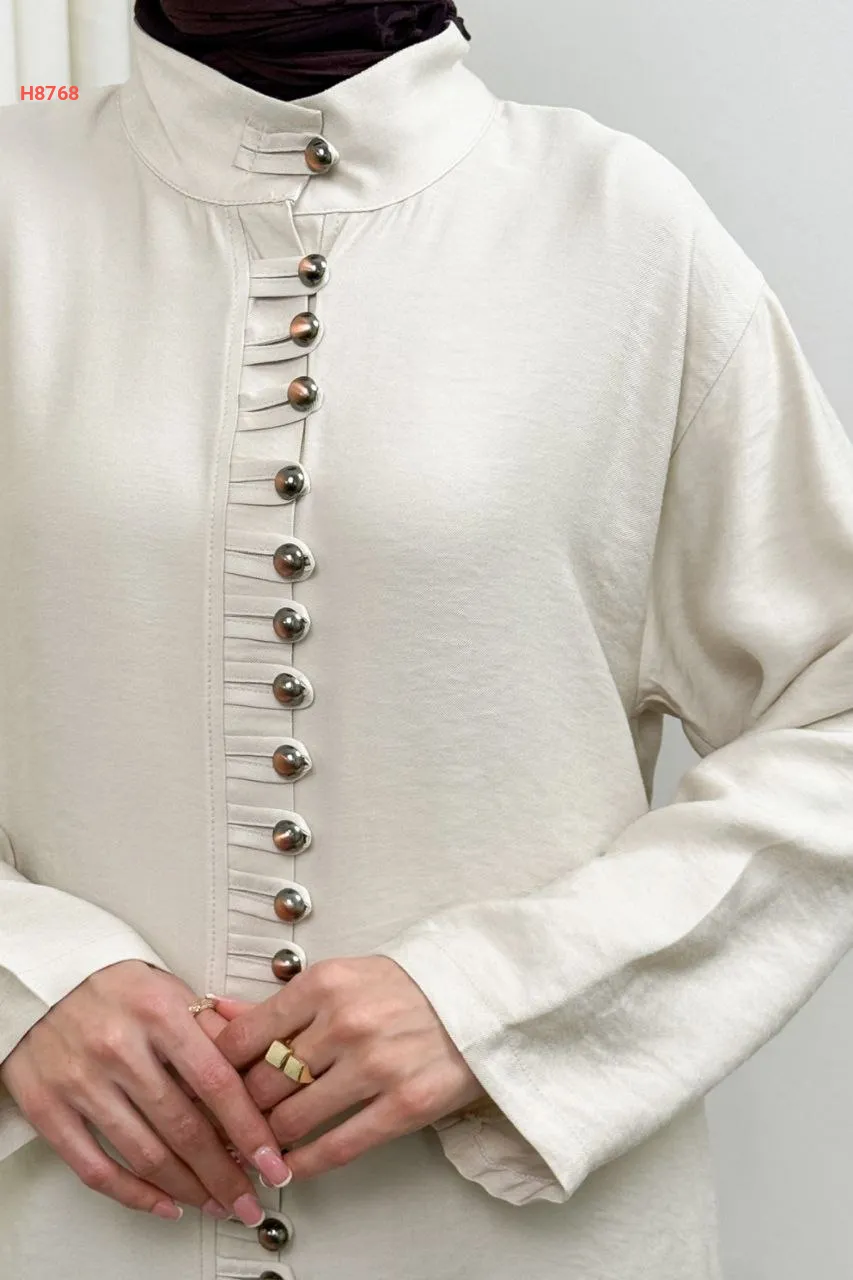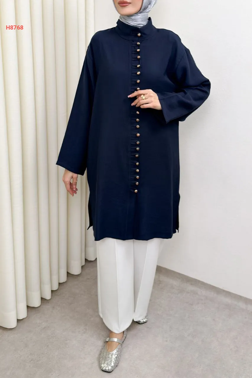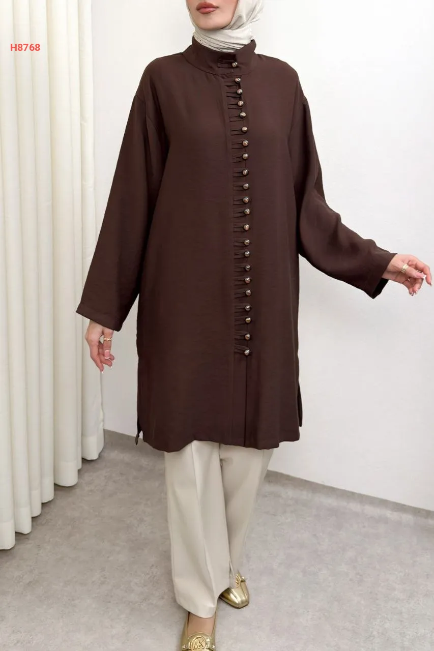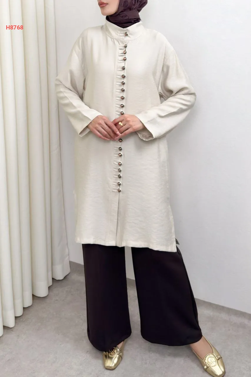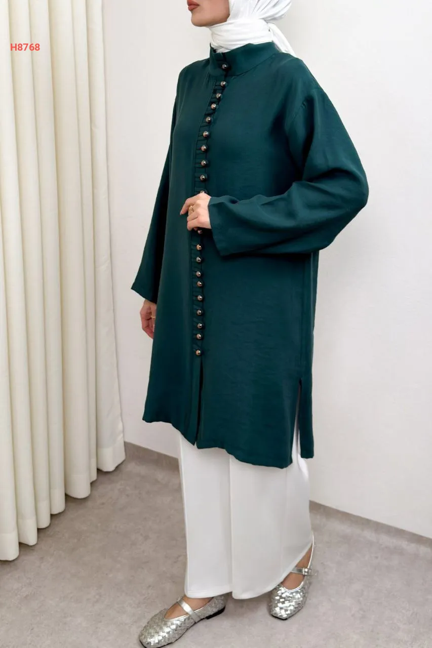 تونيك سادة طويل بأزرار ، بياقة مرتفعة