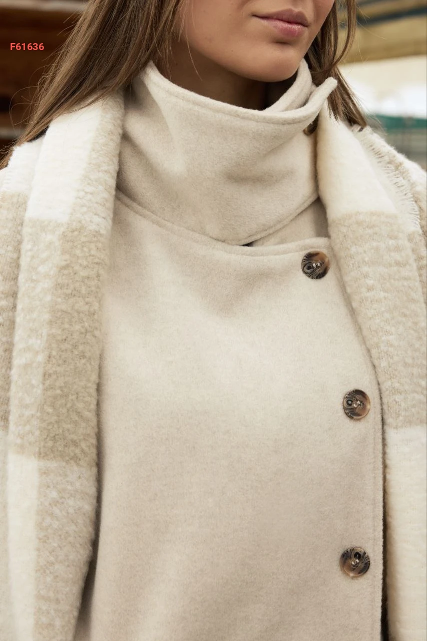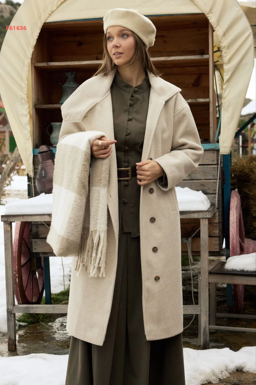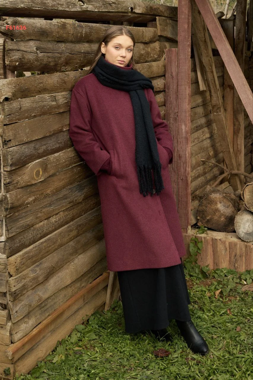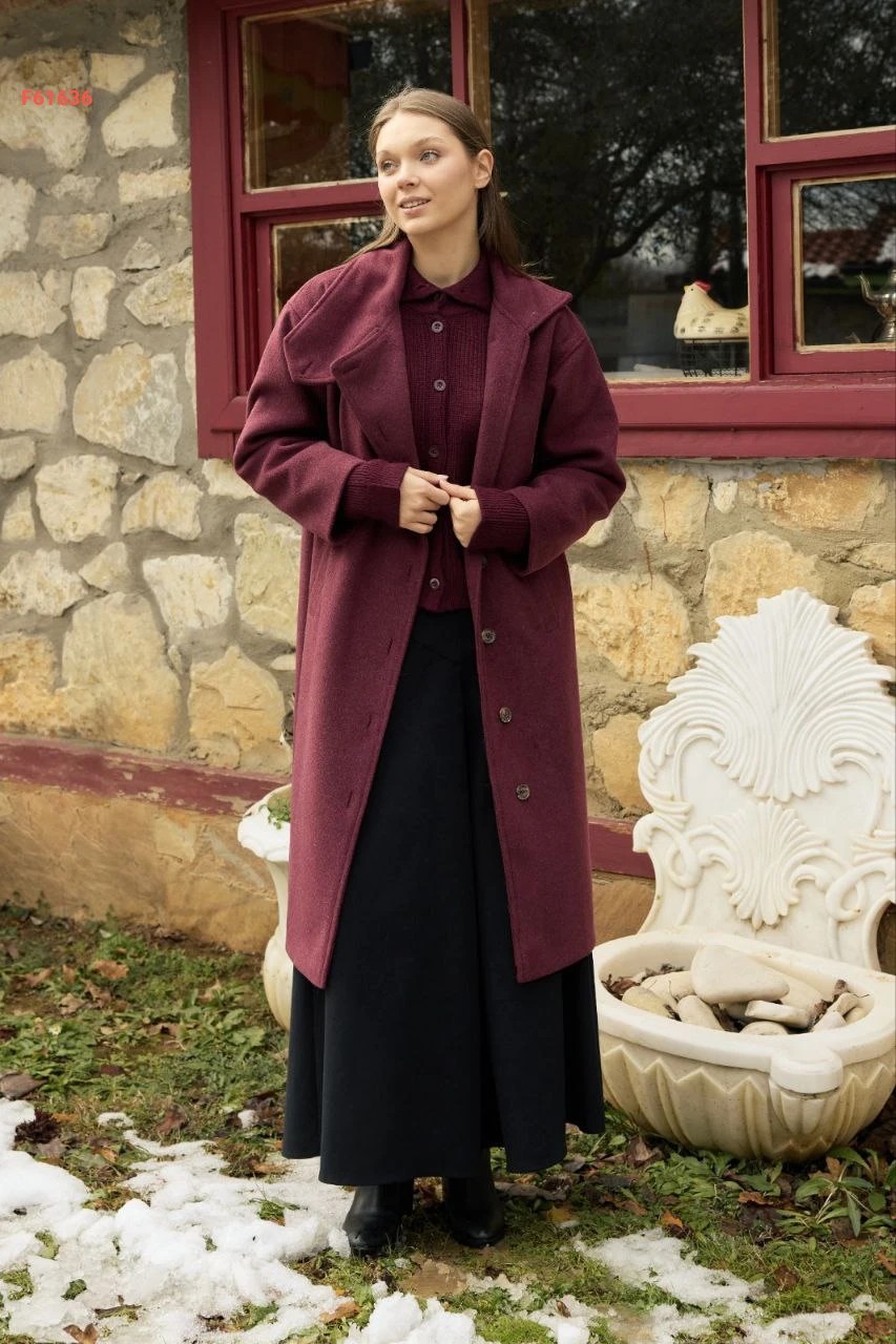 جاكيت جوخ طويل سادة بأزرار جانبية بياقة مرتفعة مع جيب
