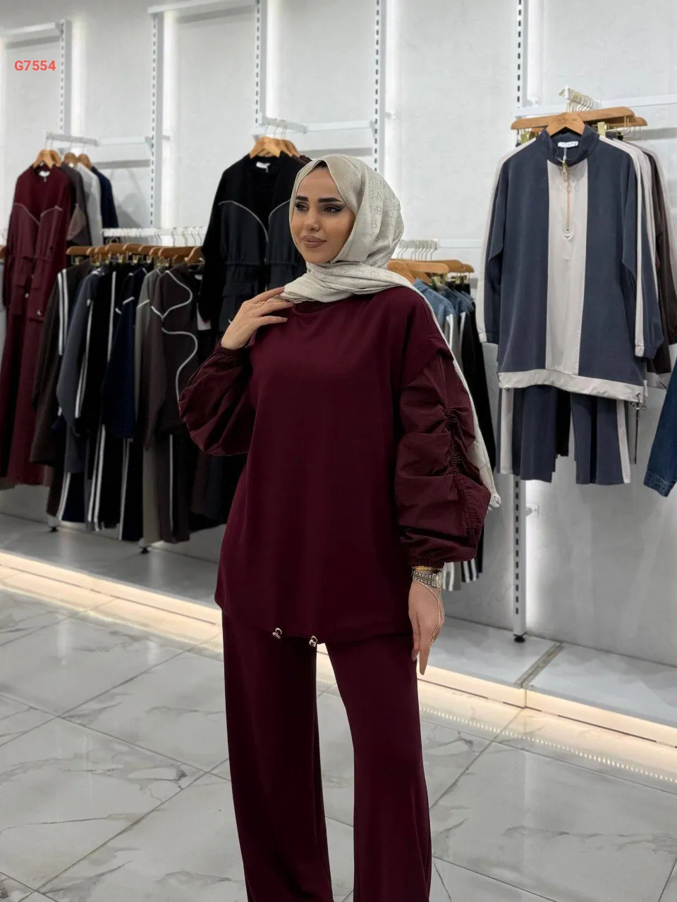 بيجامة سادة ، بأكمام مزمومة