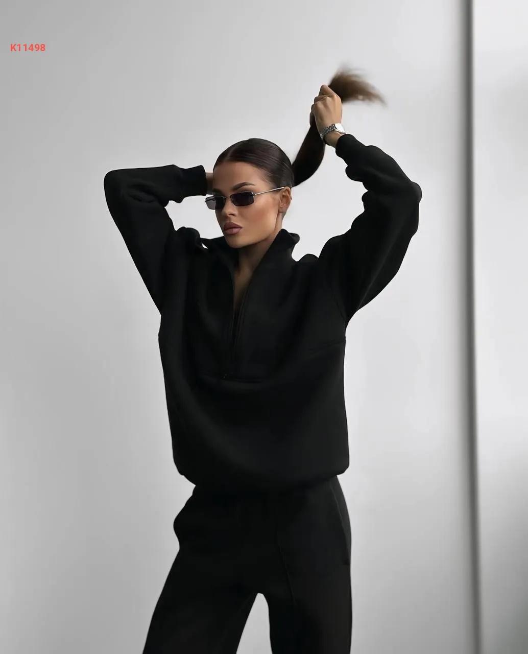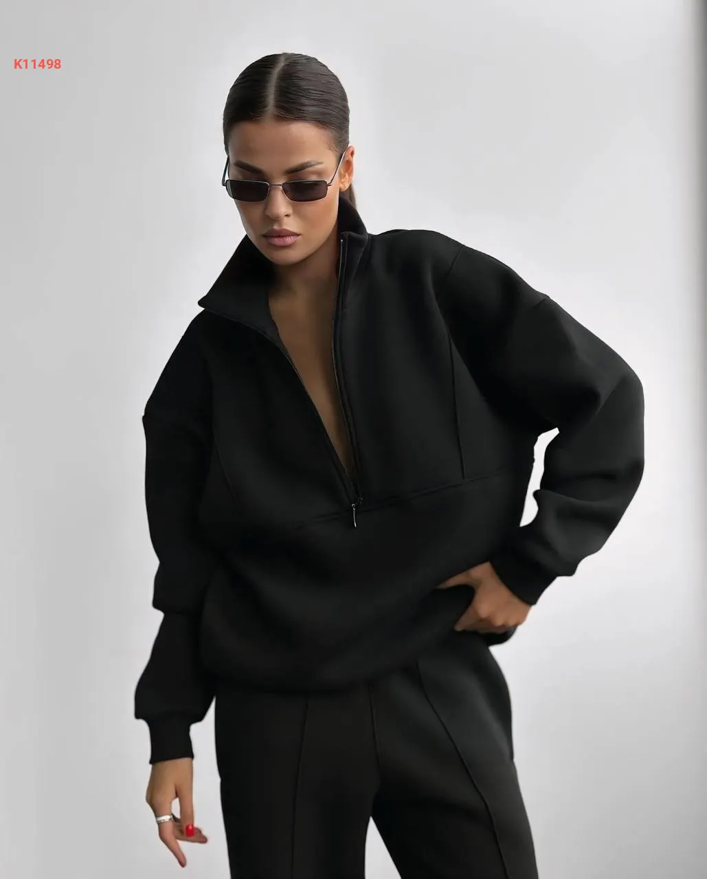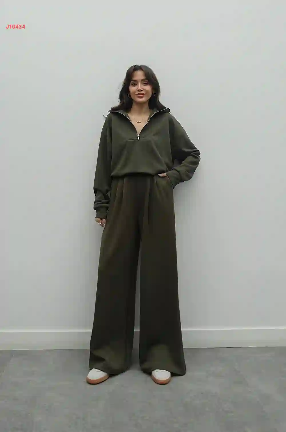 بيجامة سادة ، ياقة مرتفعة بسحاب