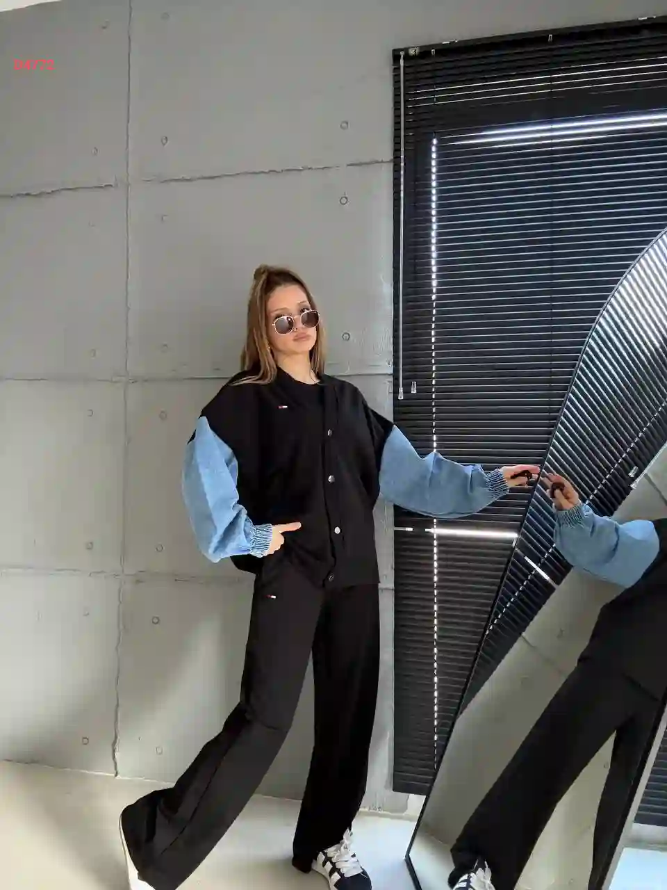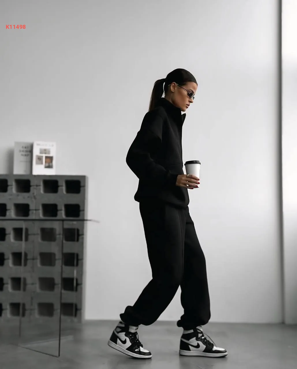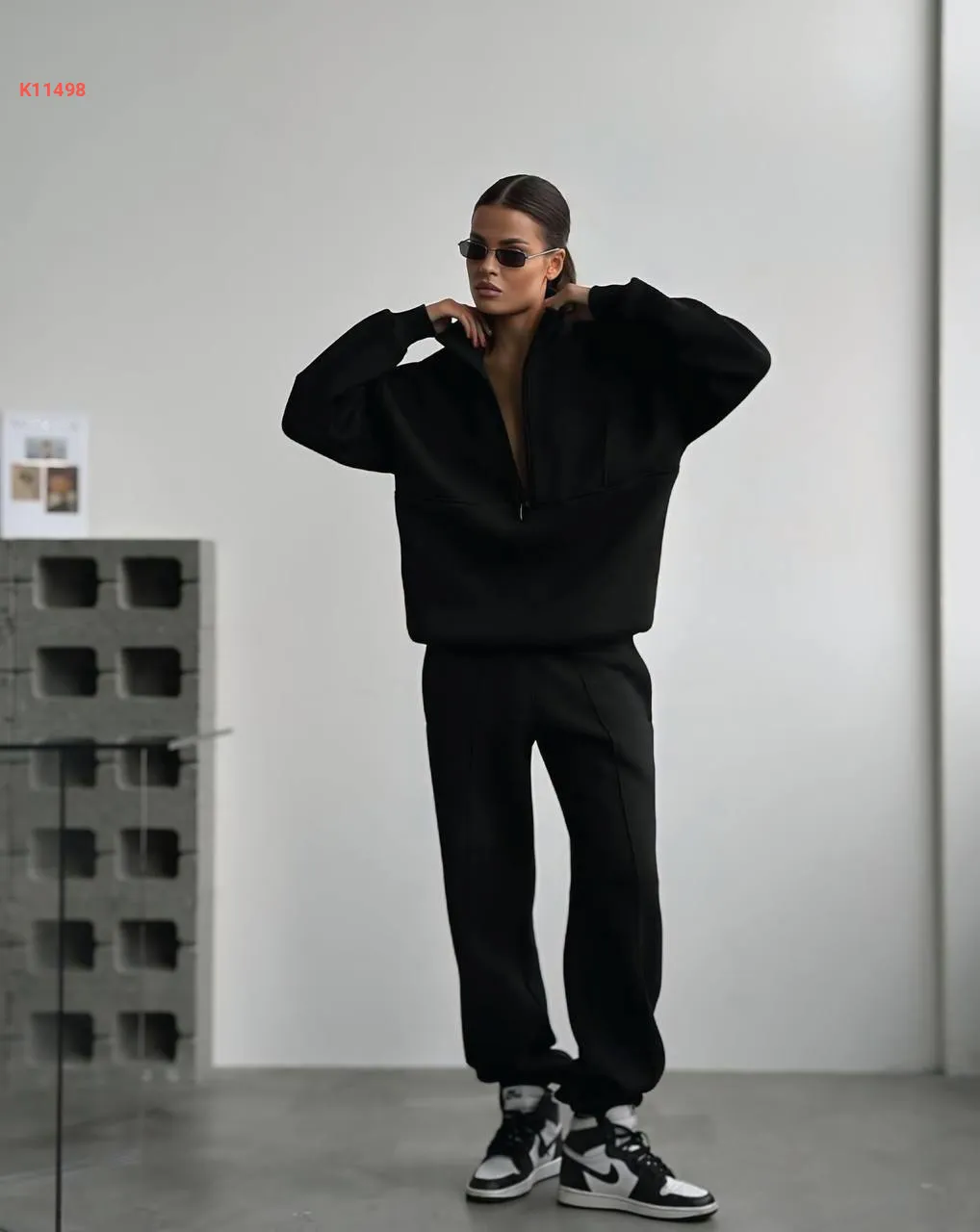 بيجامة سادة ، ياقة مرتفعة بسحاب