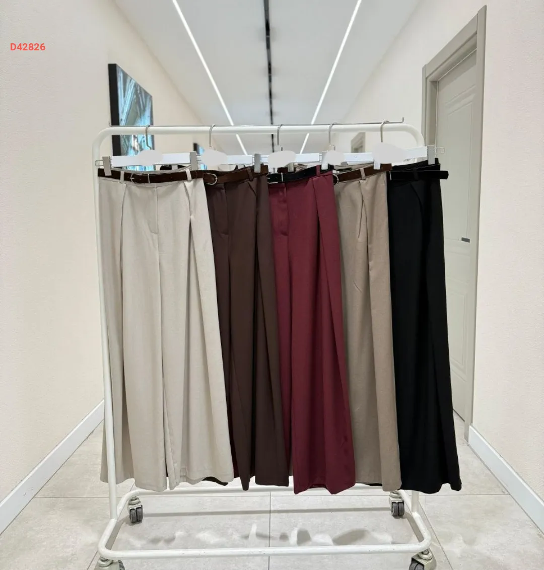 بنطال سادة بكسرات واسعة ، موديل عريض، مع حزام