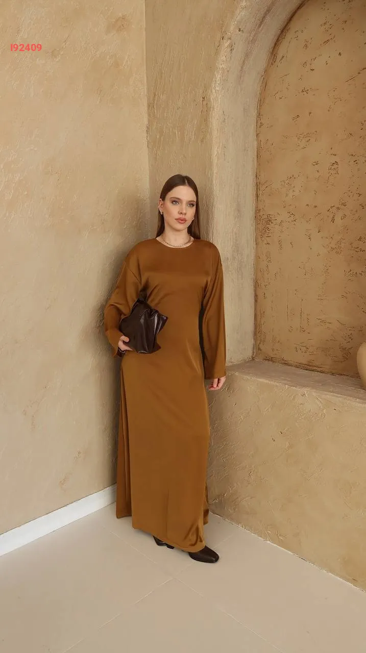 فستان طويل ساتان سادة