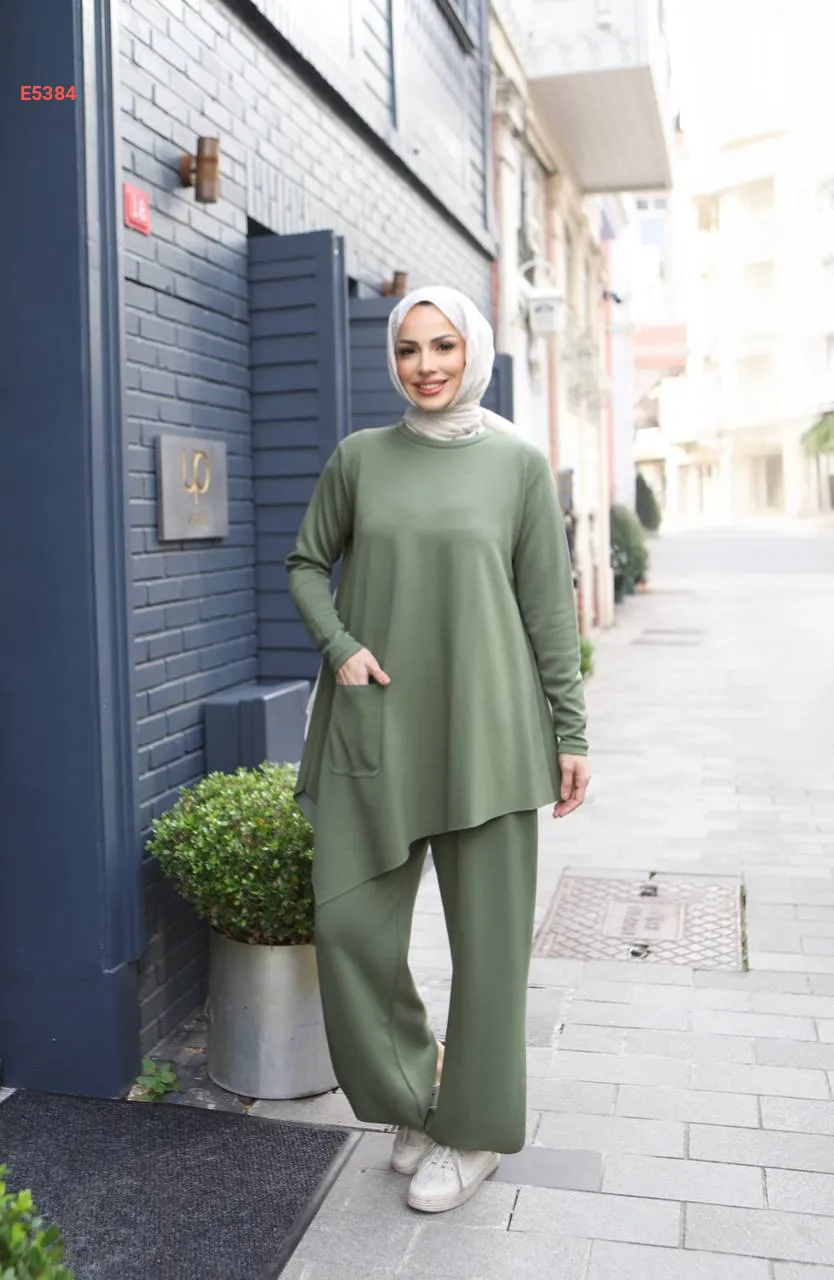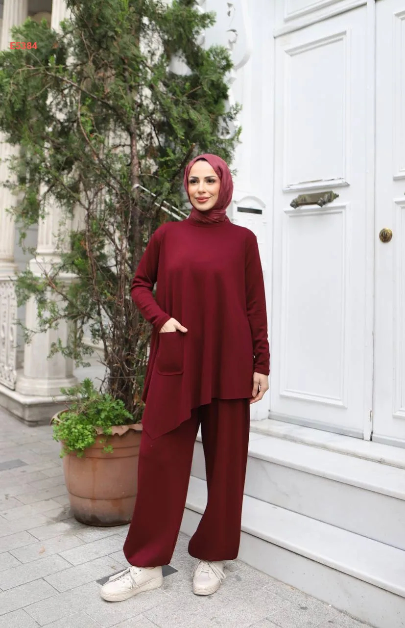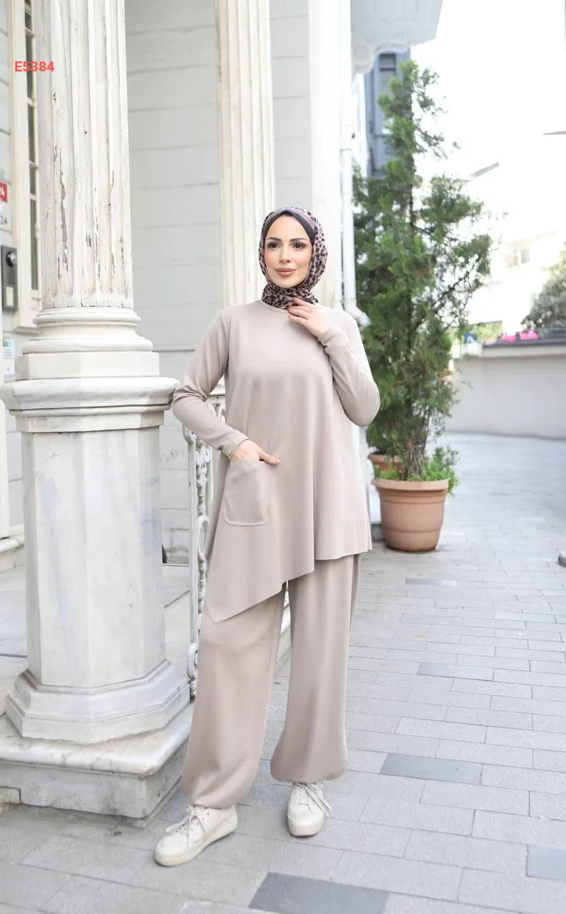 طقم سادة قطعتين جيبةعلى عالى الجنب