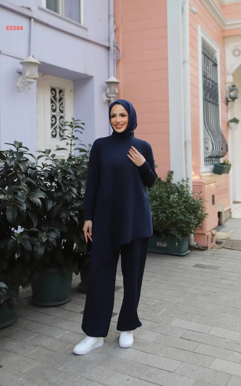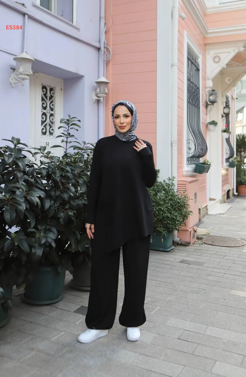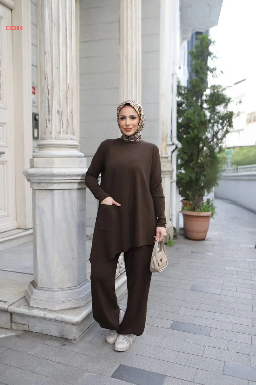 طقم سادة قطعتين جيبةعلى عالى الجنب