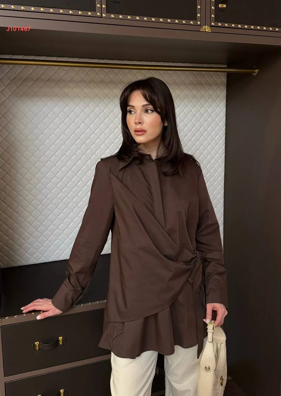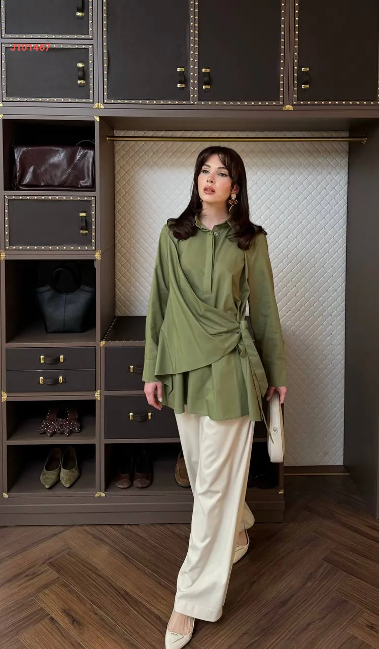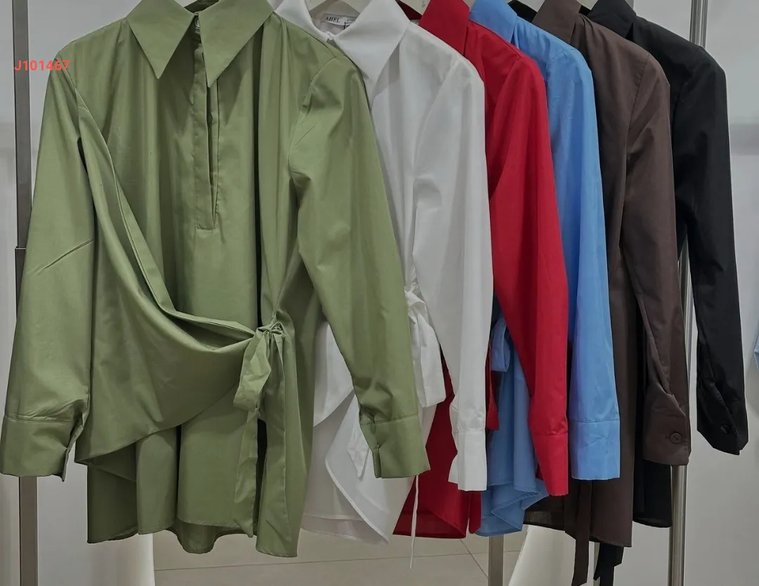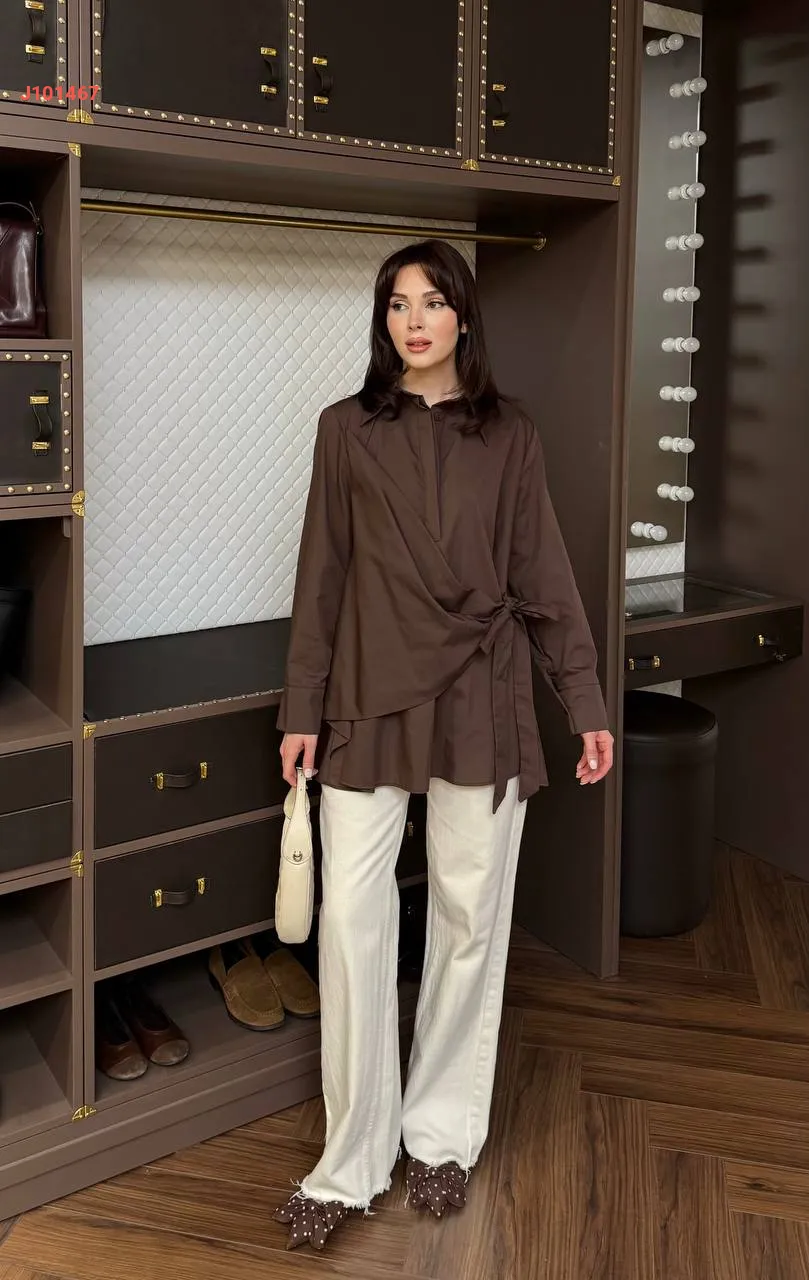 قميص سادة بأزرار مخفية، مع ربطة خصر