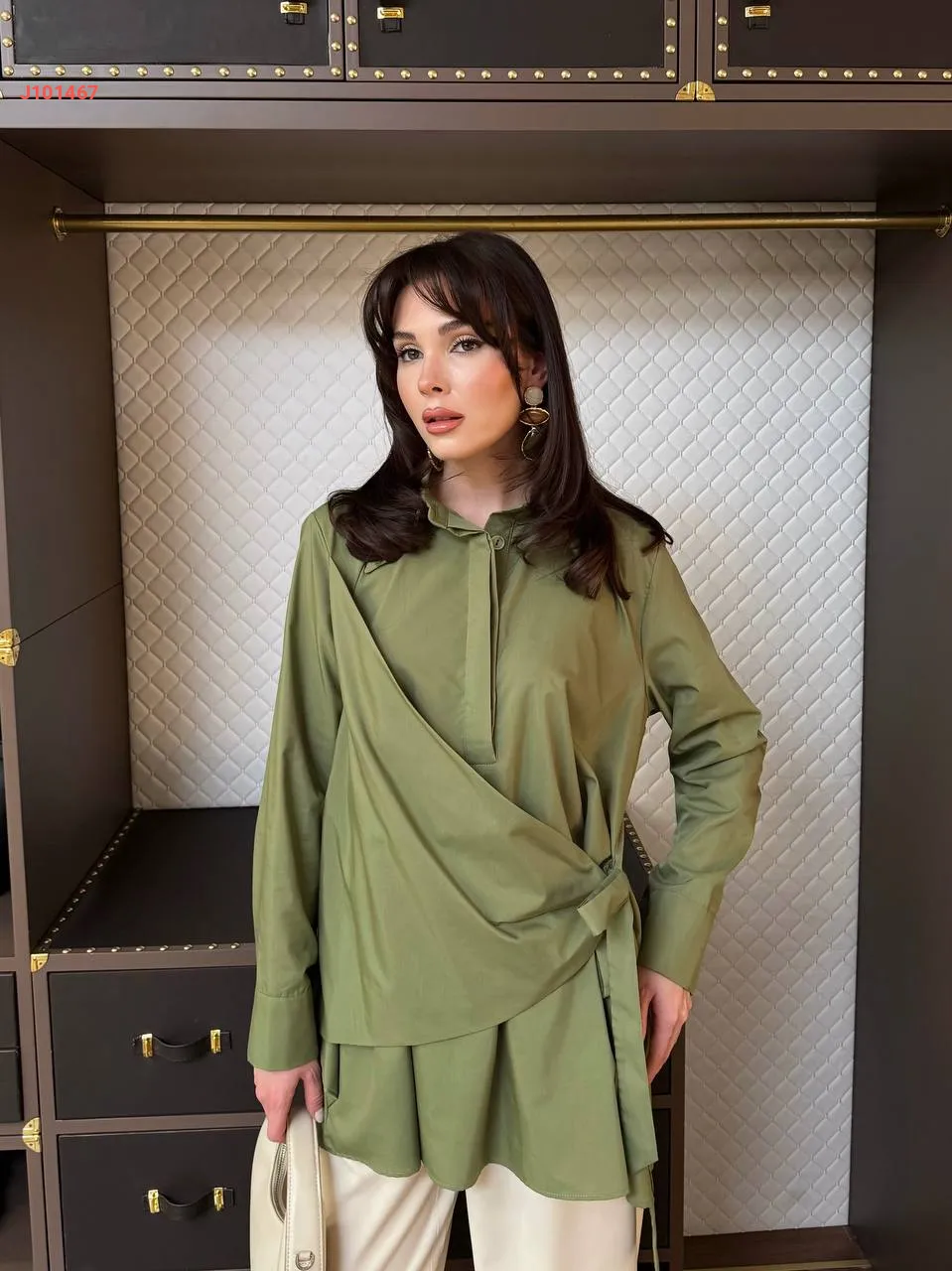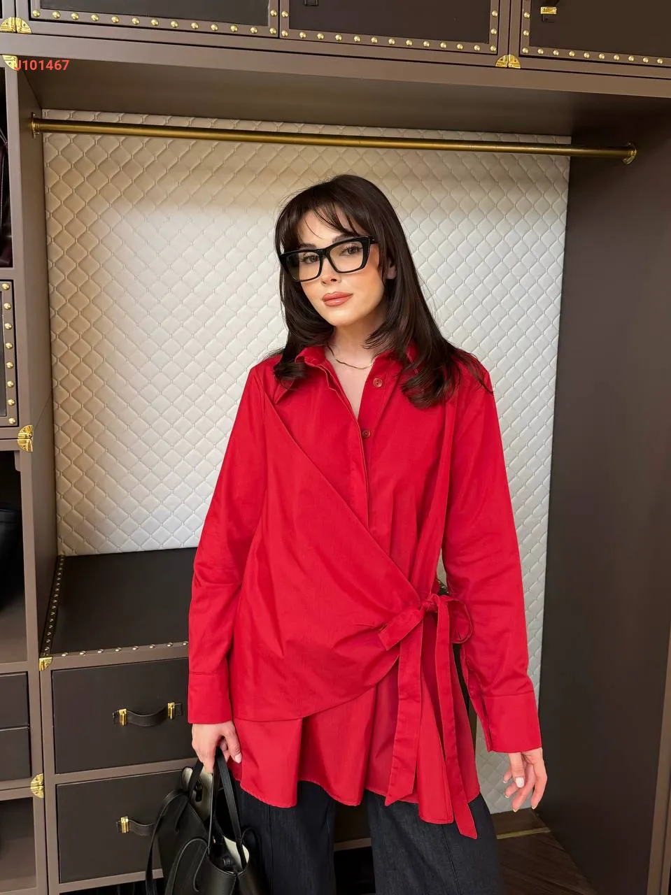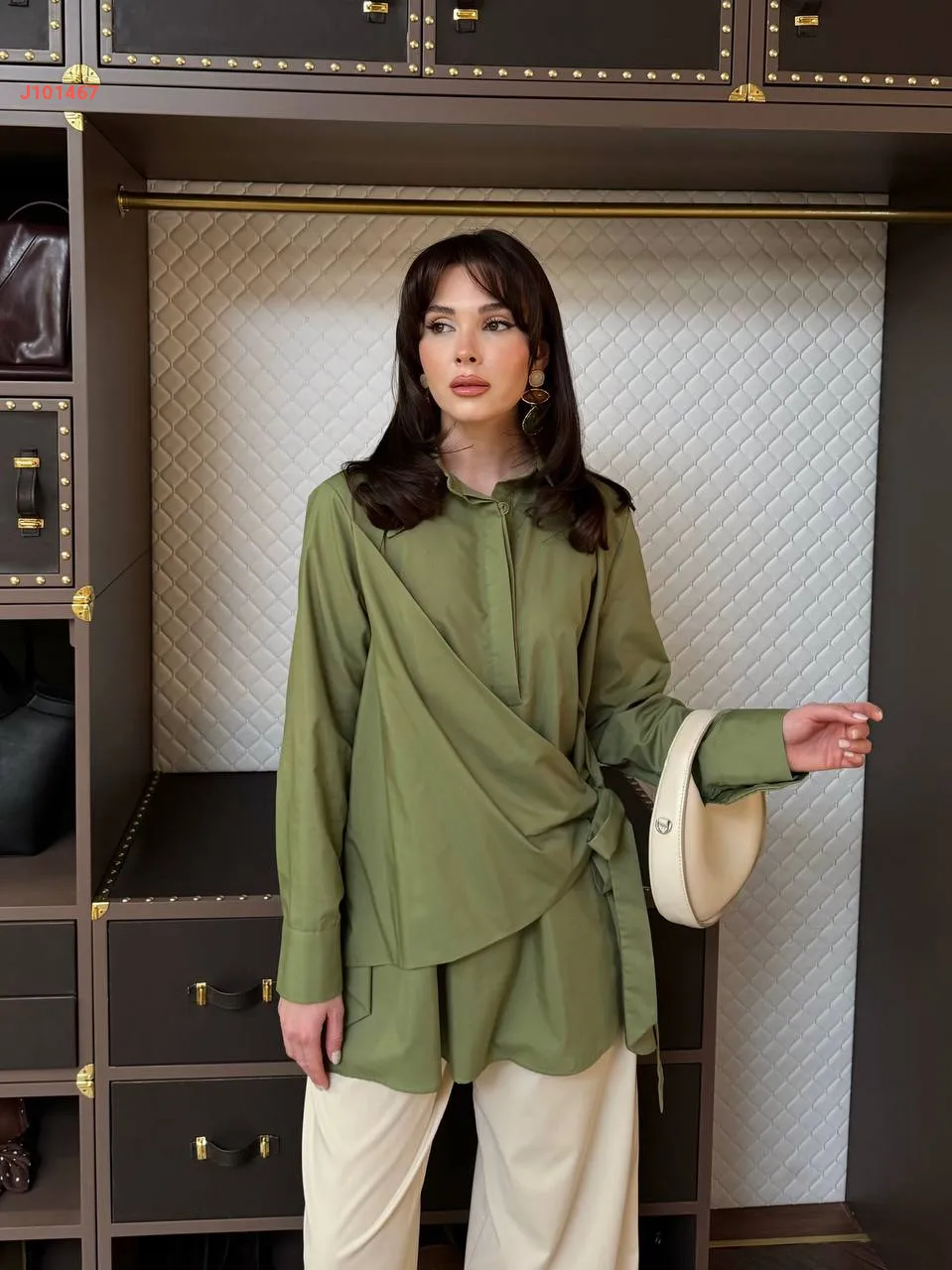 قميص سادة بأزرار مخفية، مع ربطة خصر