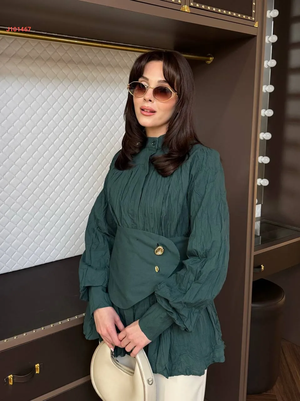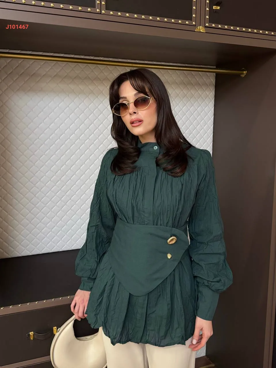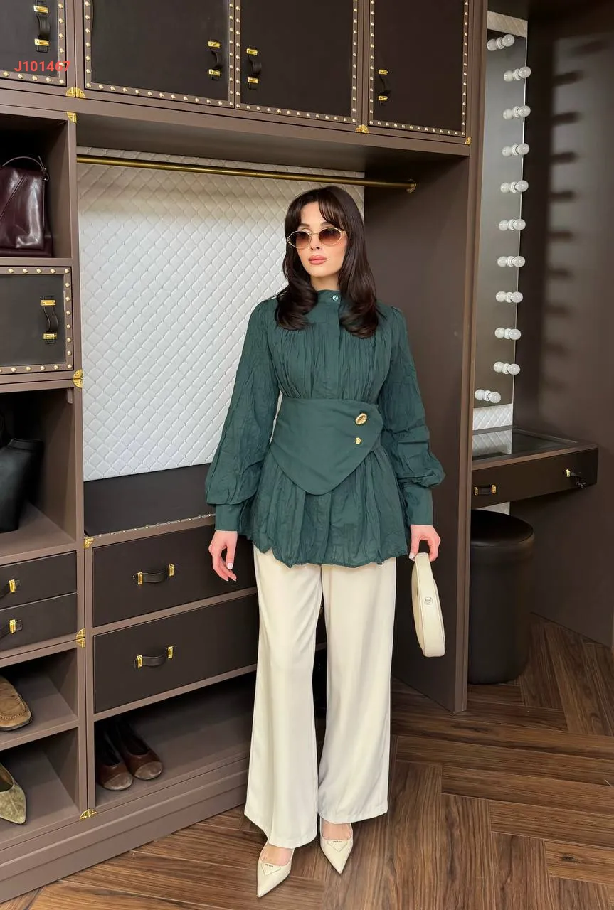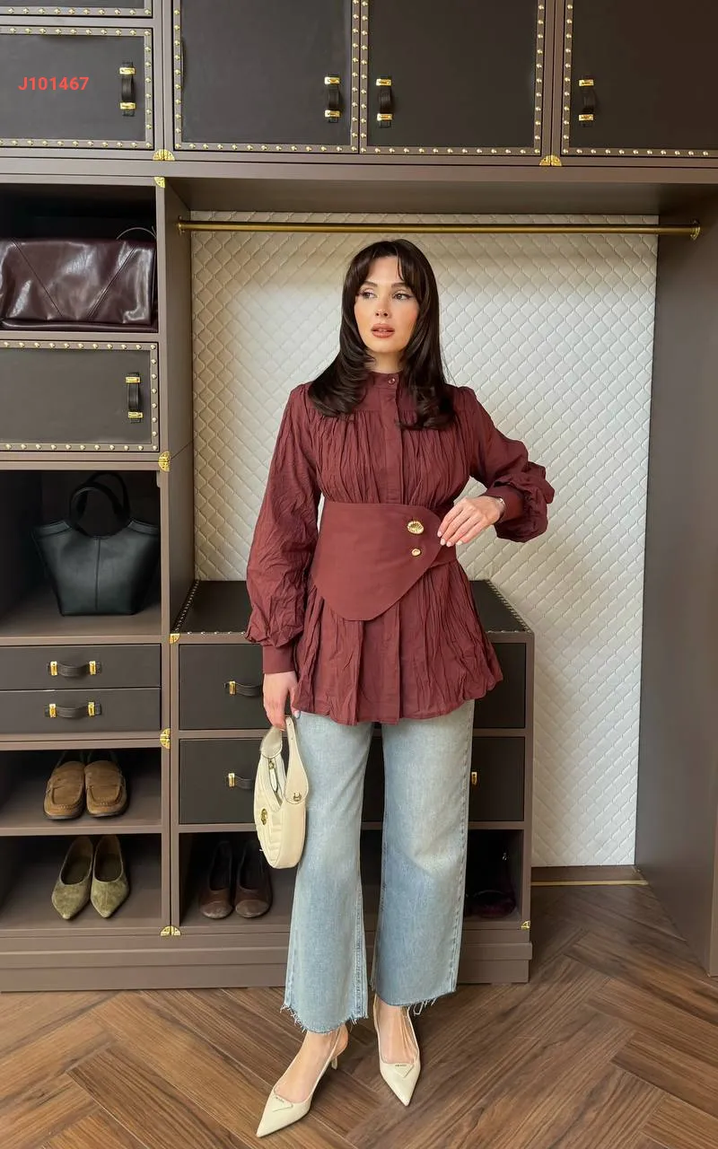 قميص سادة بأزرار مخفية ، مع حزام عريض