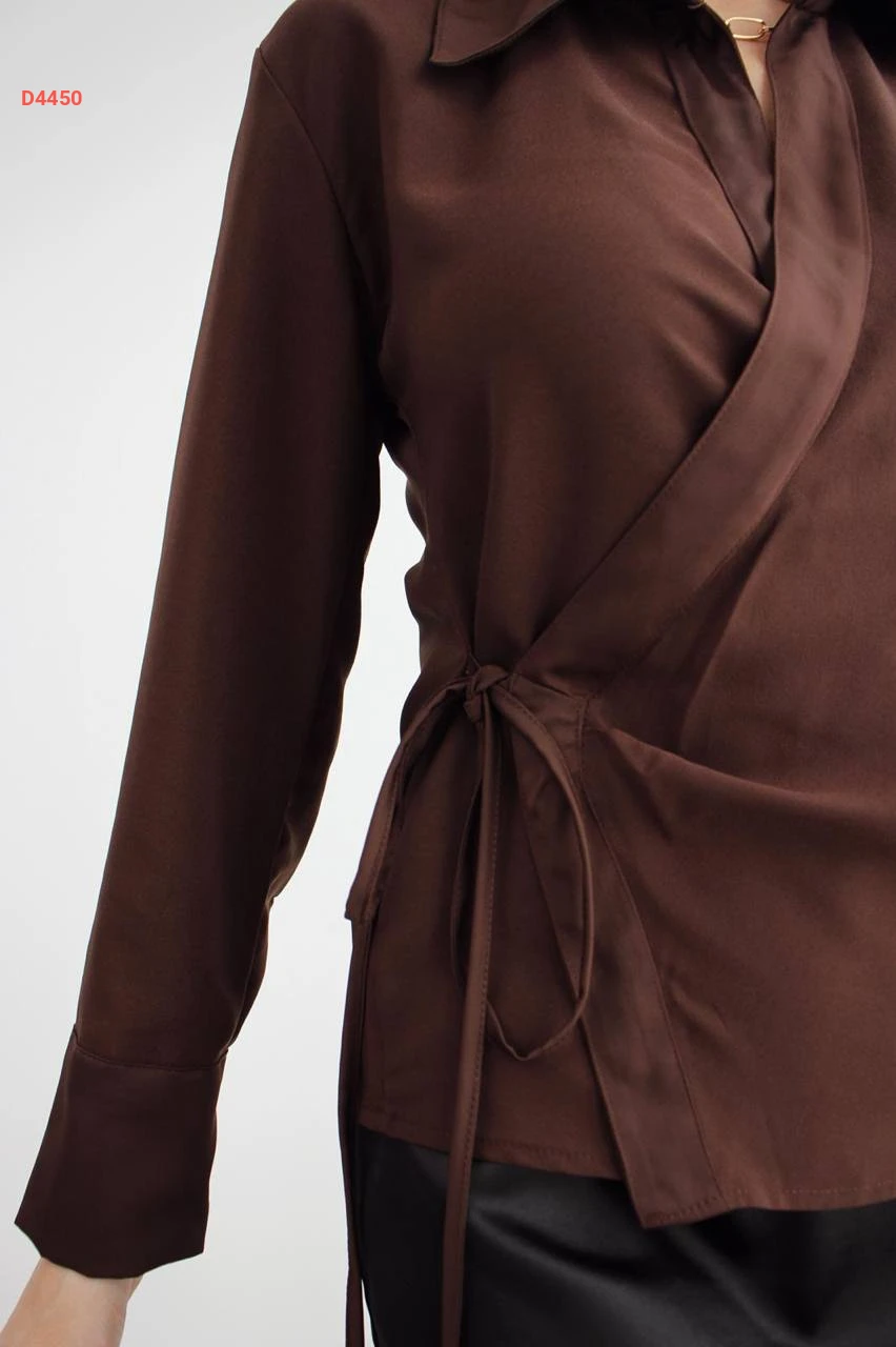 قميص سادة قصير مع ربطة خصر جانبية