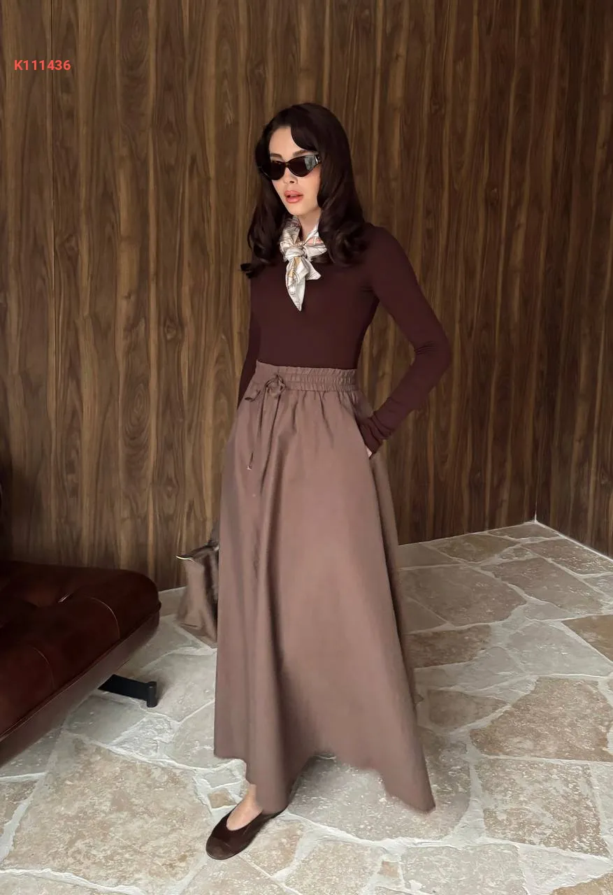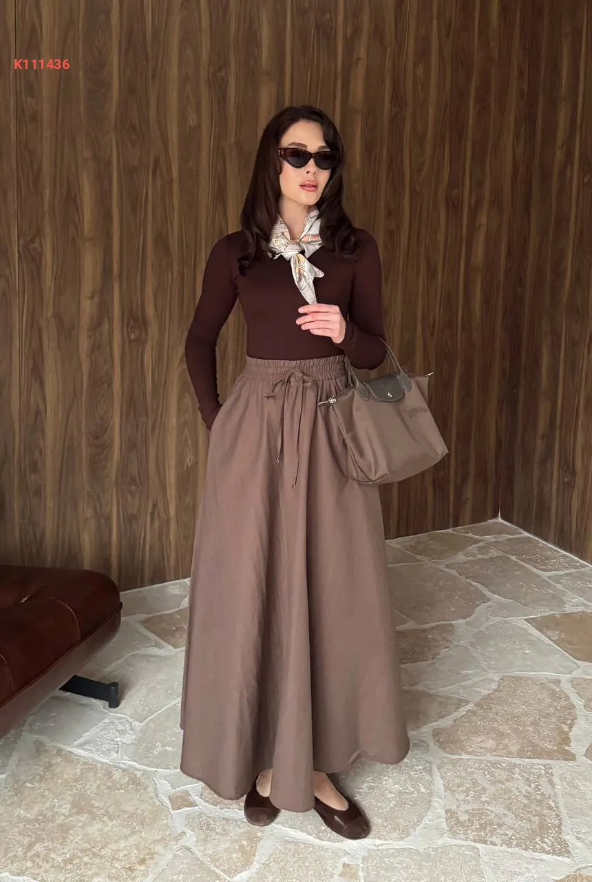 تنورة سادة بزمة خصر ، مع جيب
