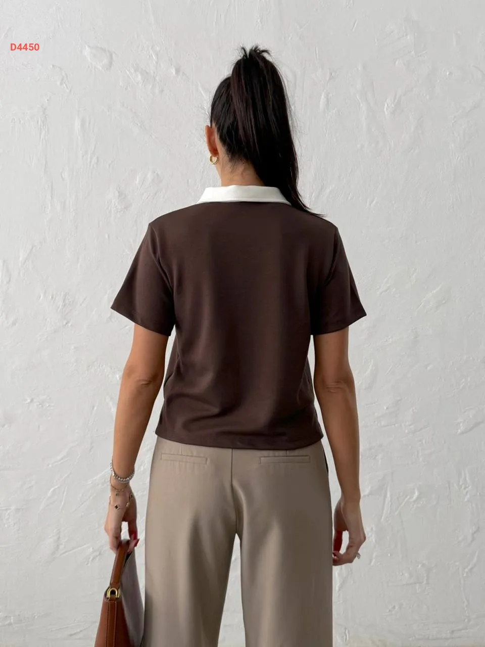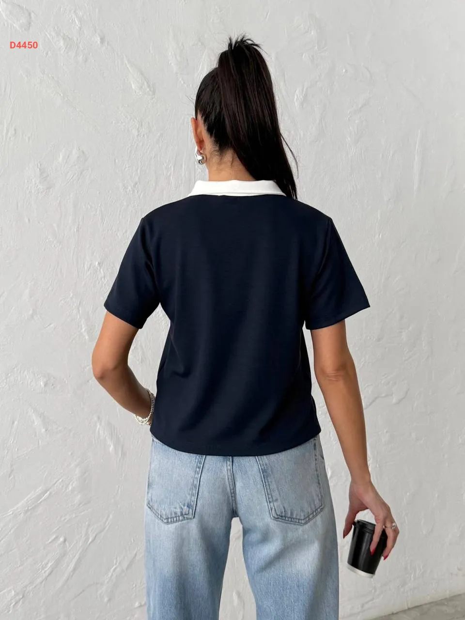 تيشيرت سادة بياقة قميص بأزرار