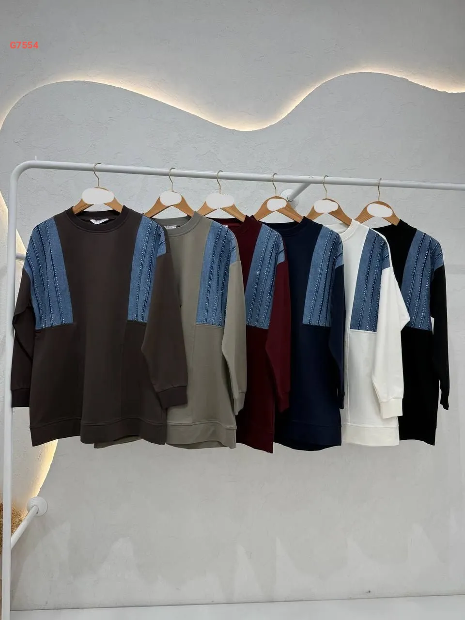 تونيك سادة مع خط ستراس ناعم عند الكتف