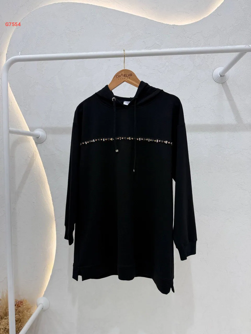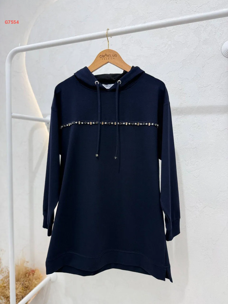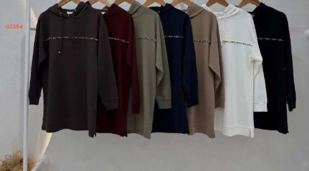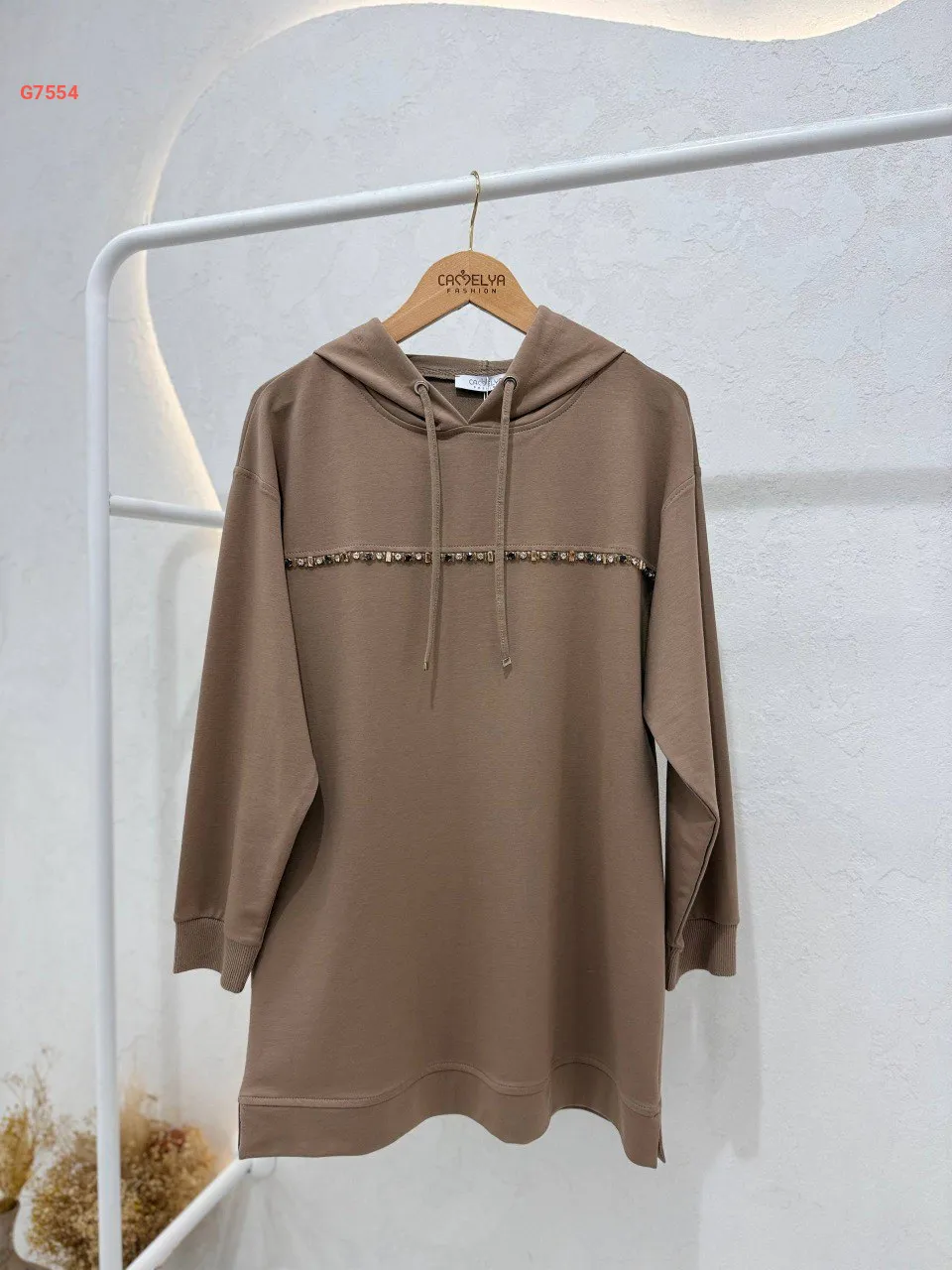 تونيك سادة، مزين بخط ألماس ناعم، مع غطاء رأس