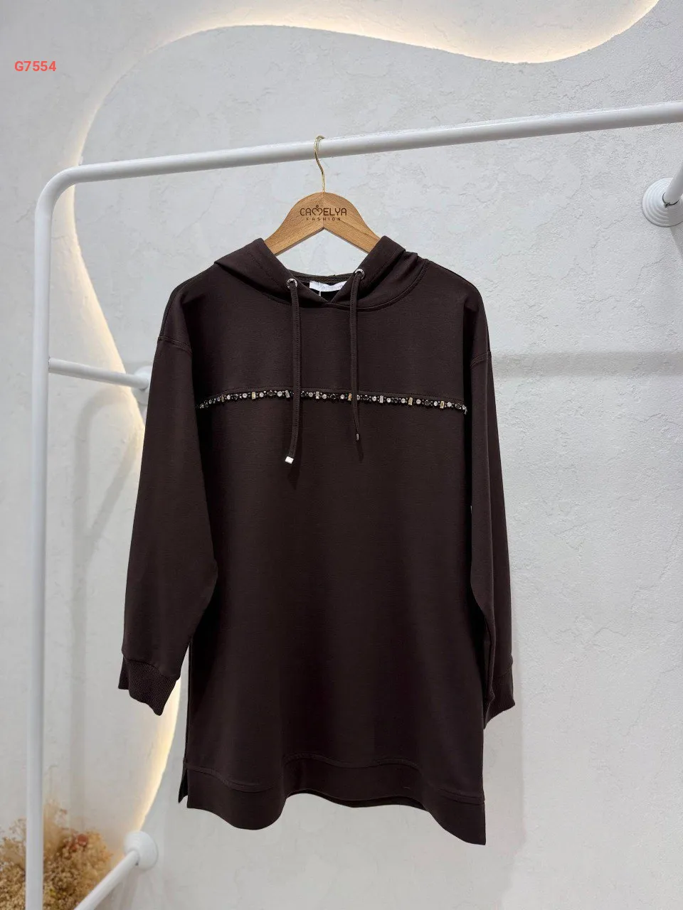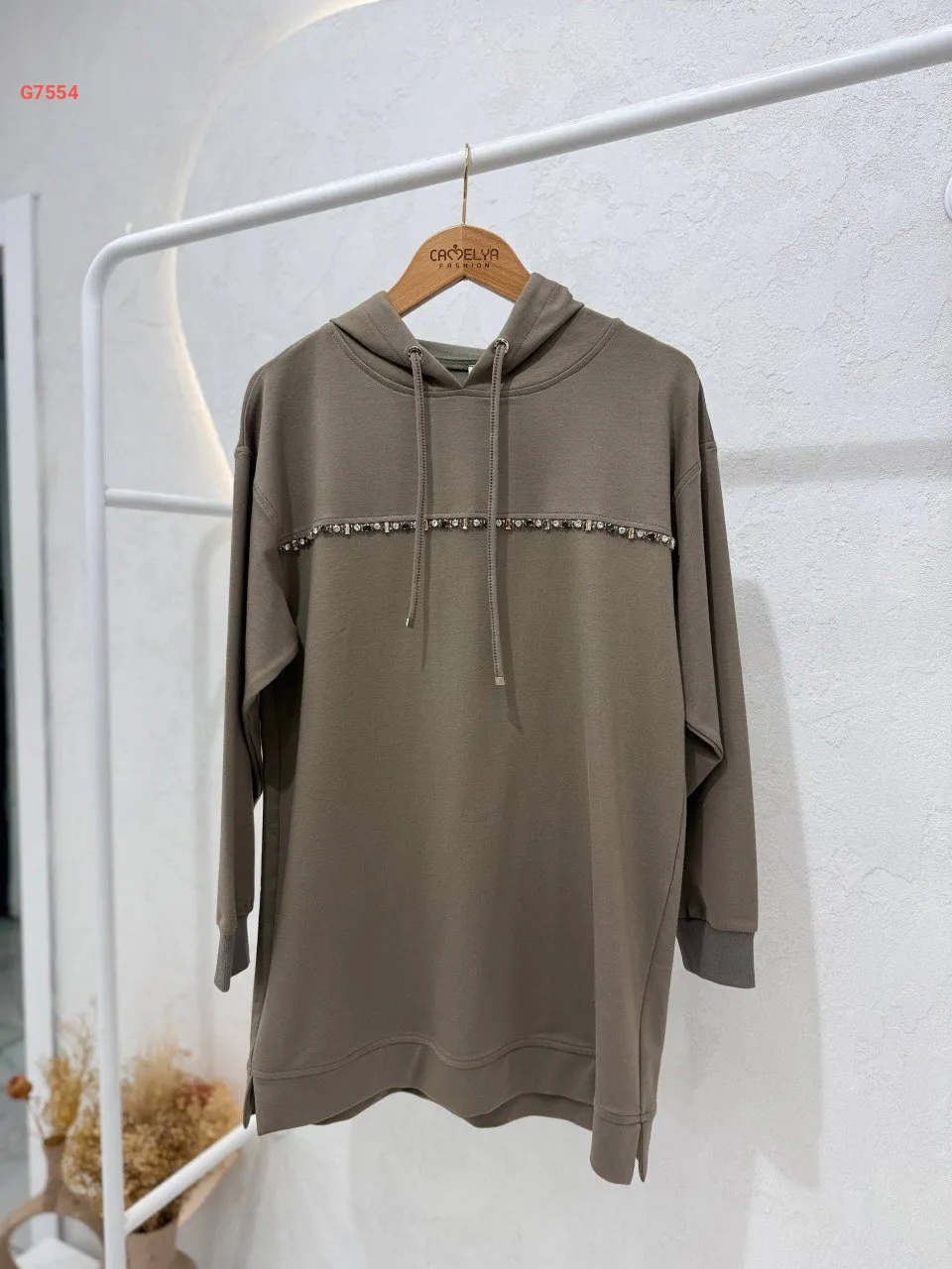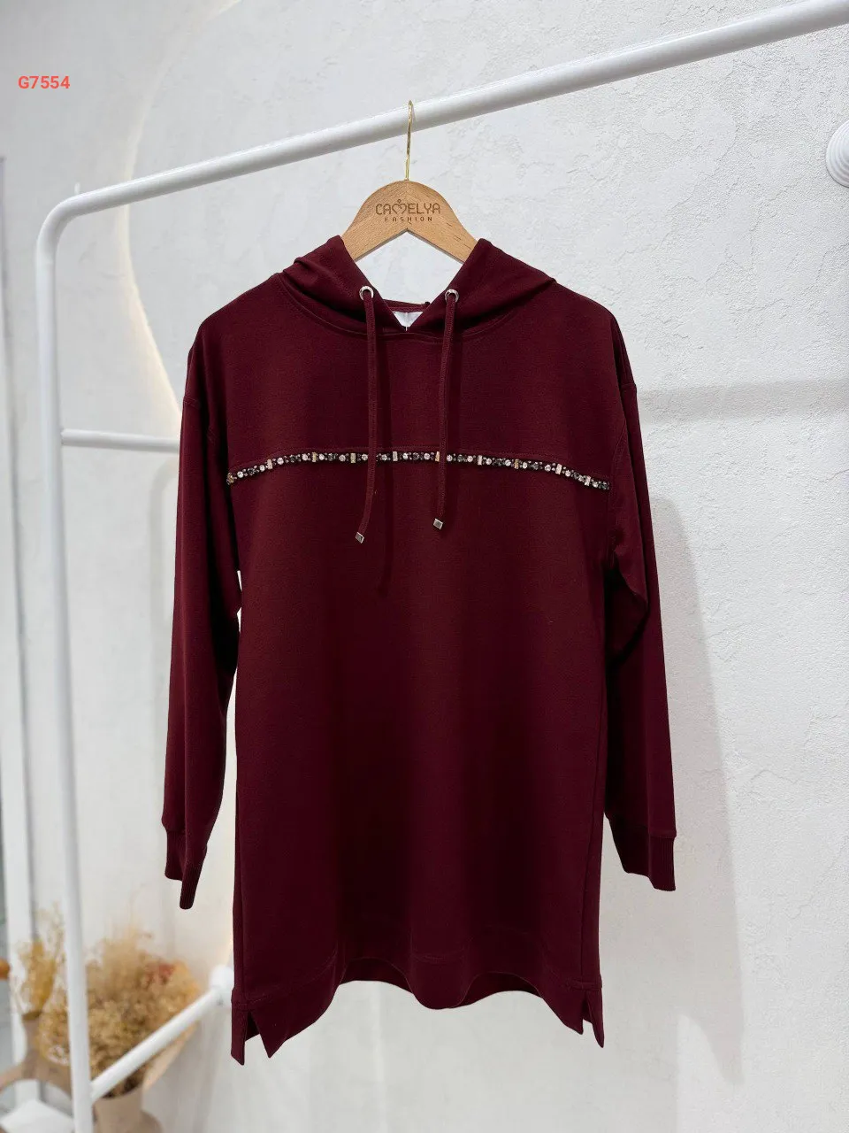 تونيك سادة، مزين بخط ألماس ناعم، مع غطاء رأس