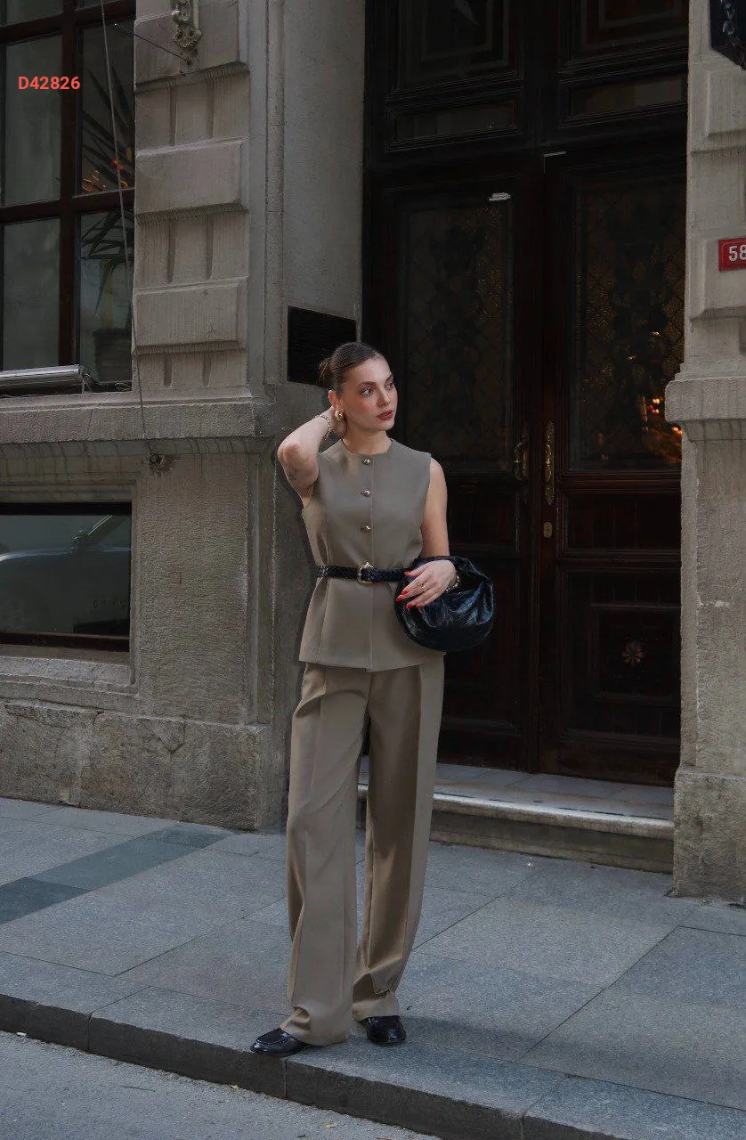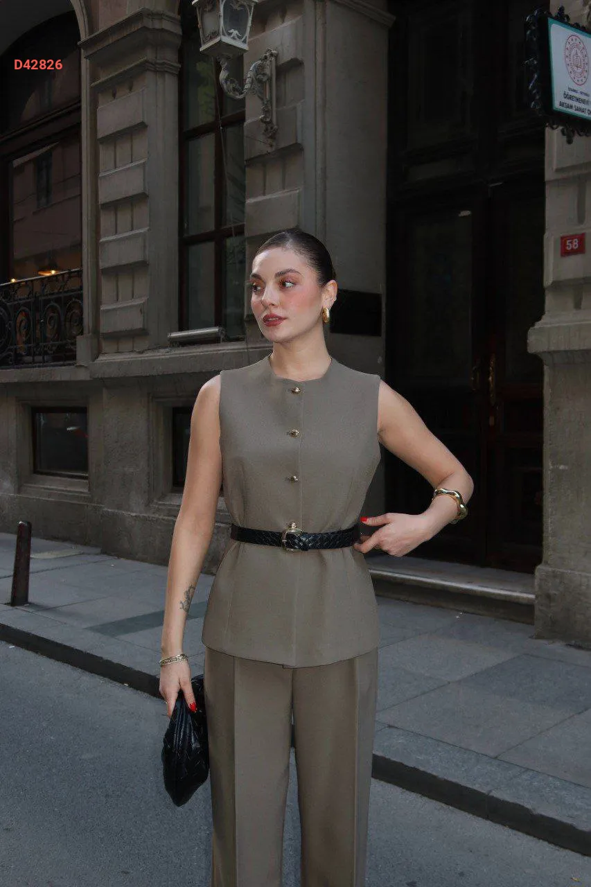 طقم سادة حفر قطعتين ، بأزرار ، مع حزام