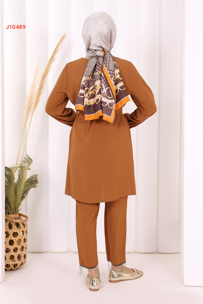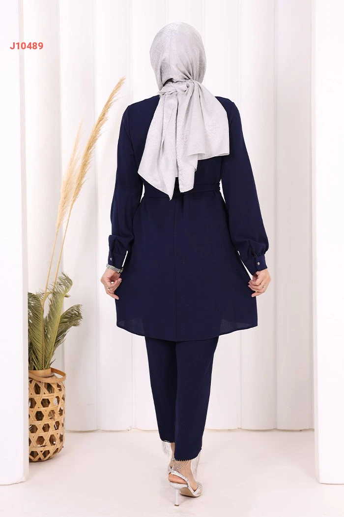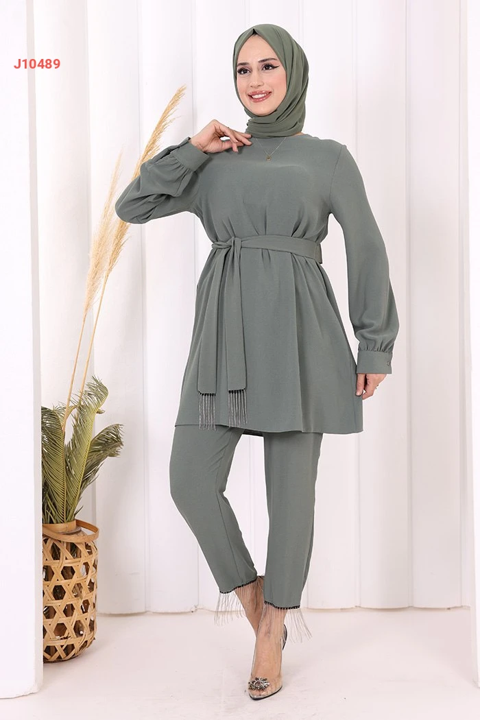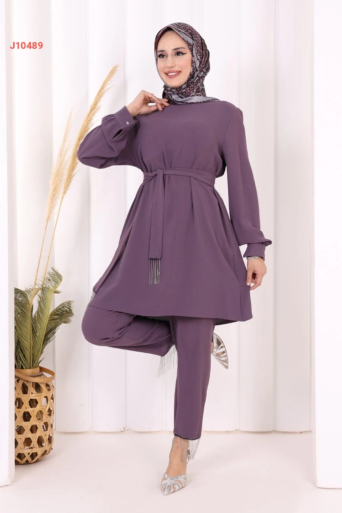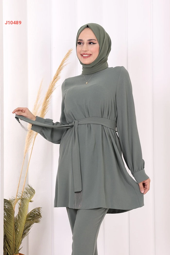 طقم تونيك سادة قطعتين مع حزام
