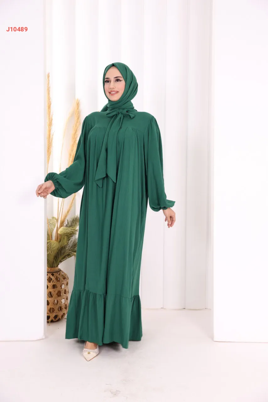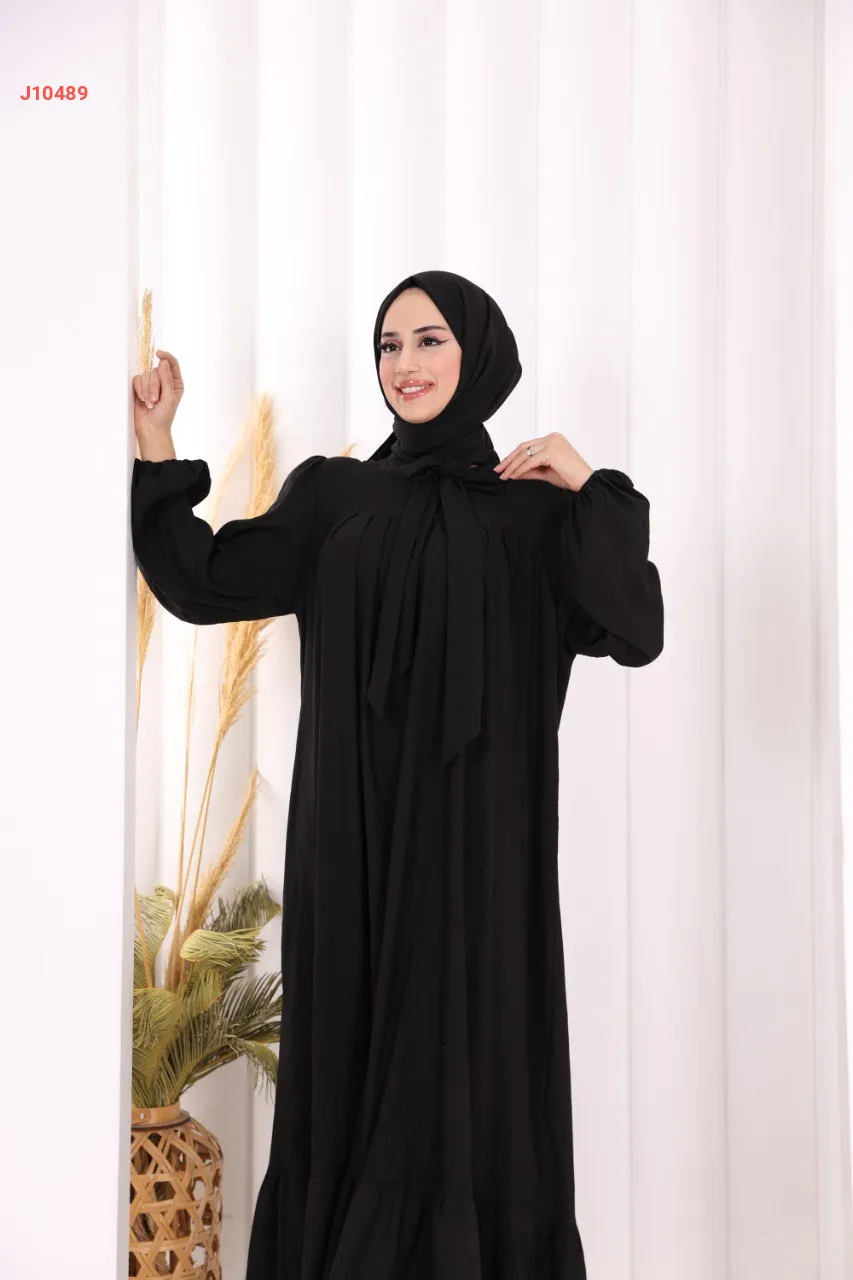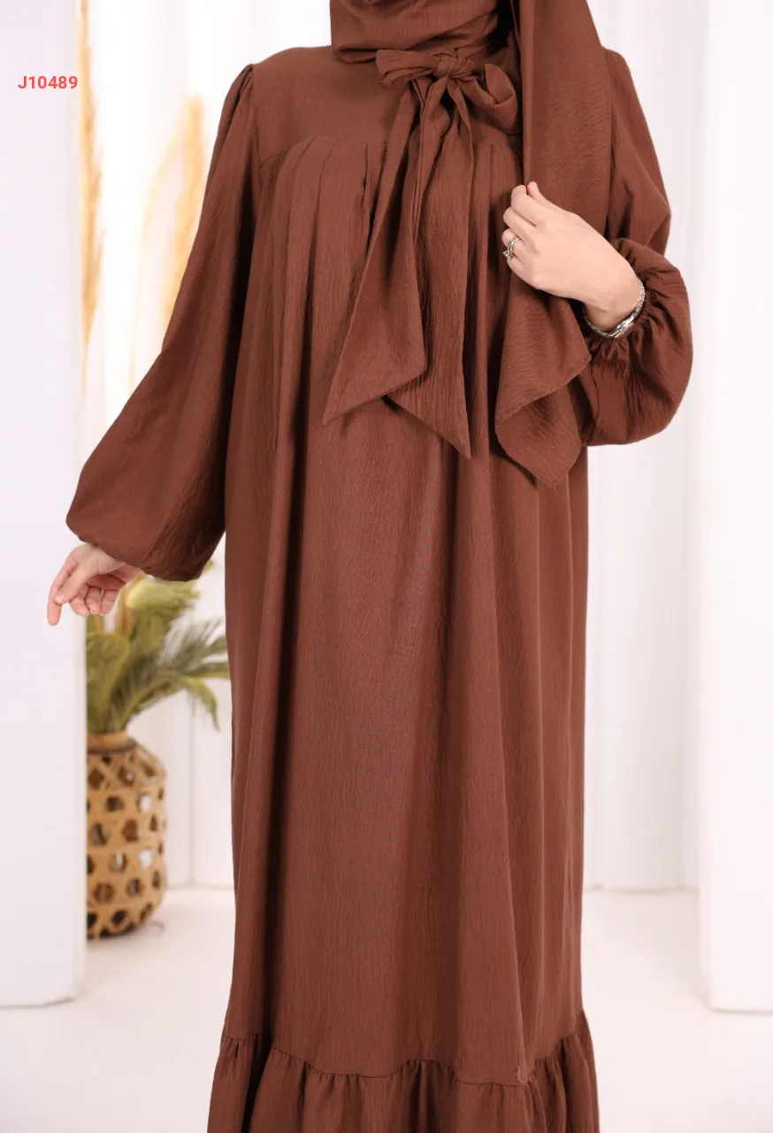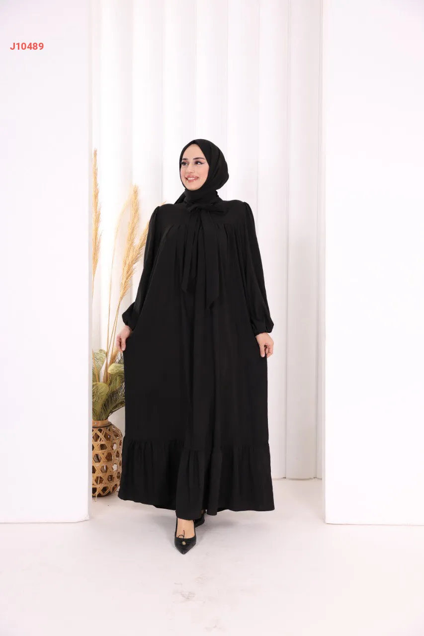 فستان سادة واسع مع ربطة عنق
