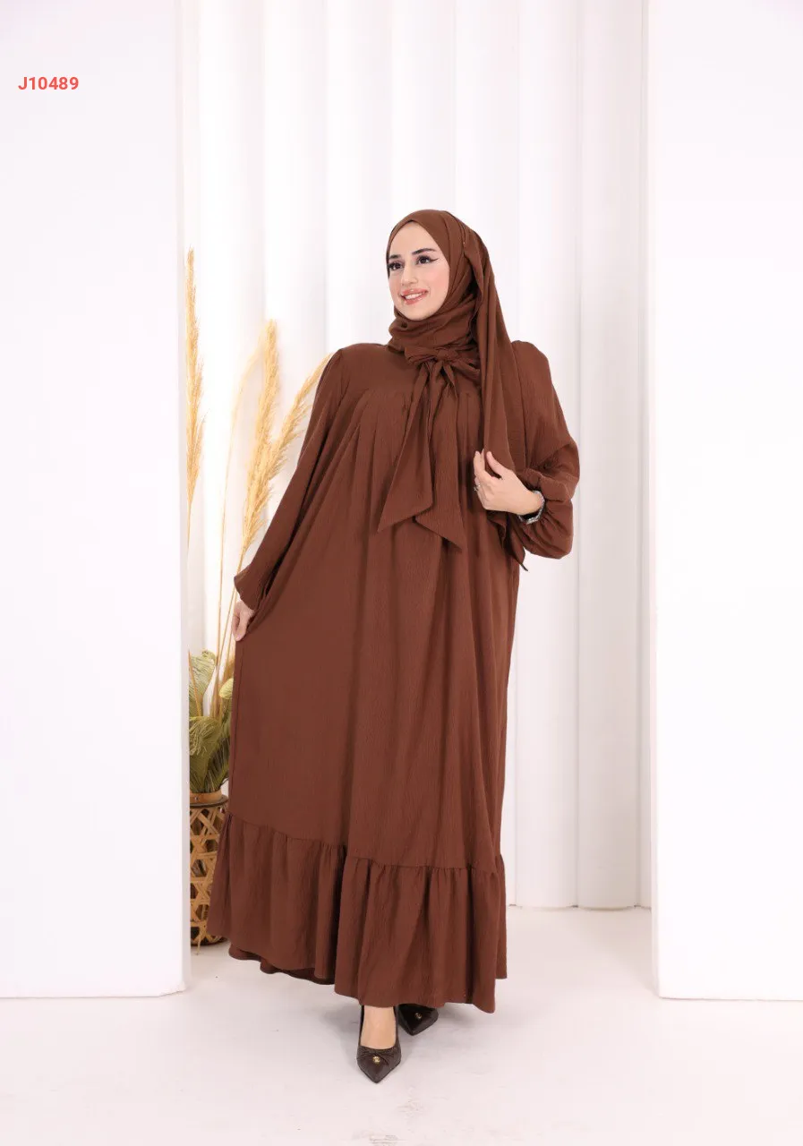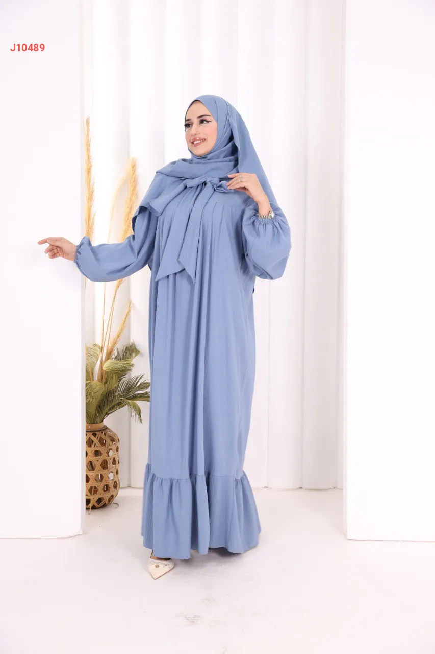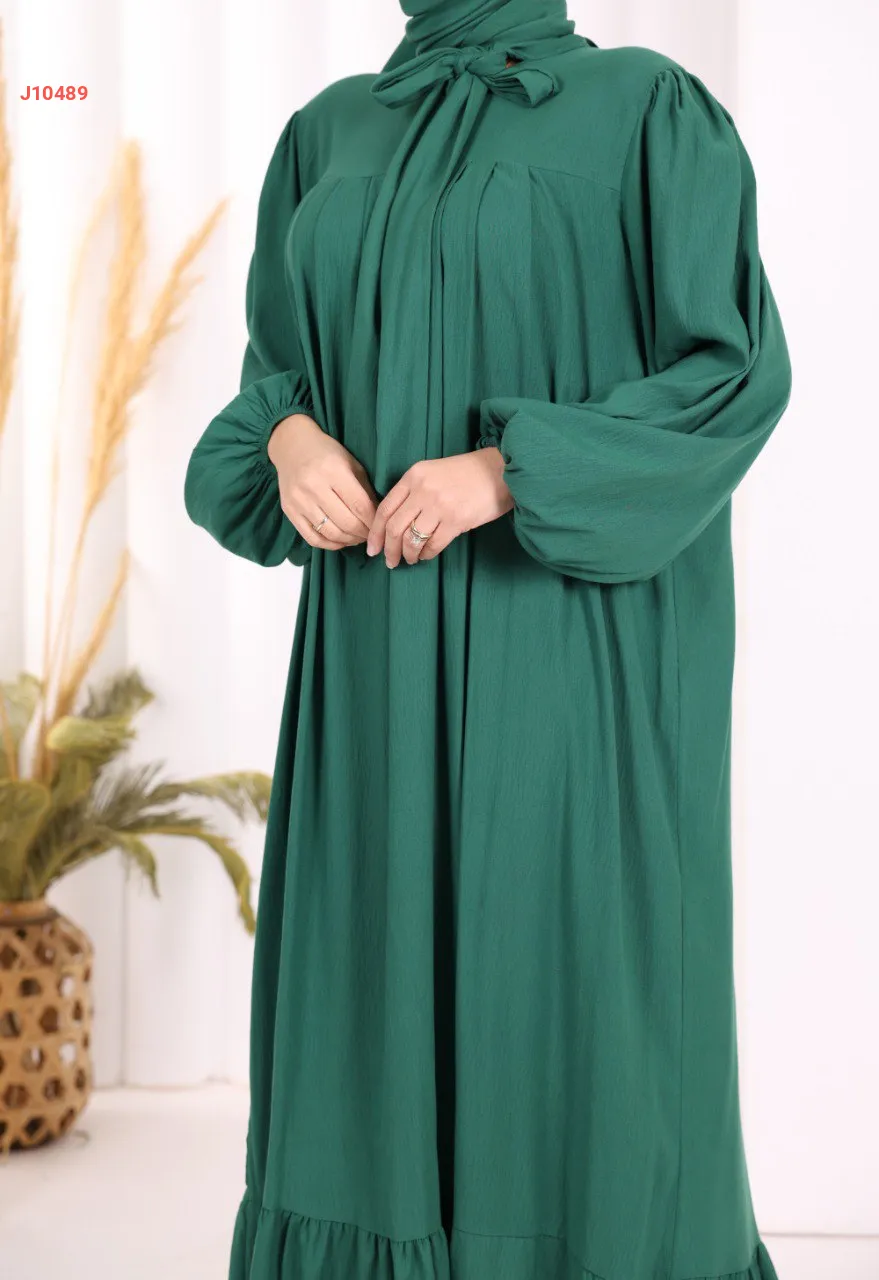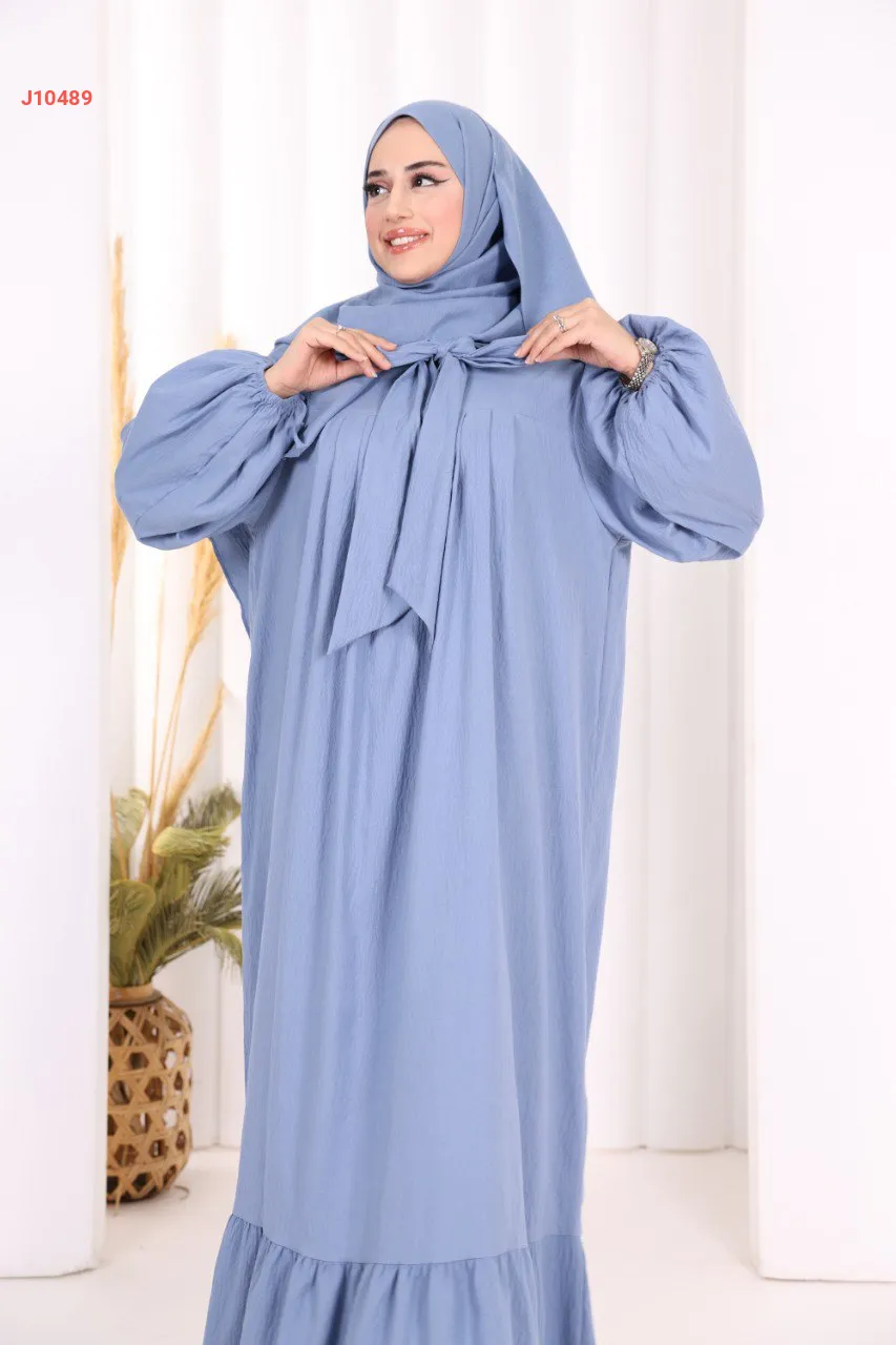 فستان سادة واسع مع ربطة عنق