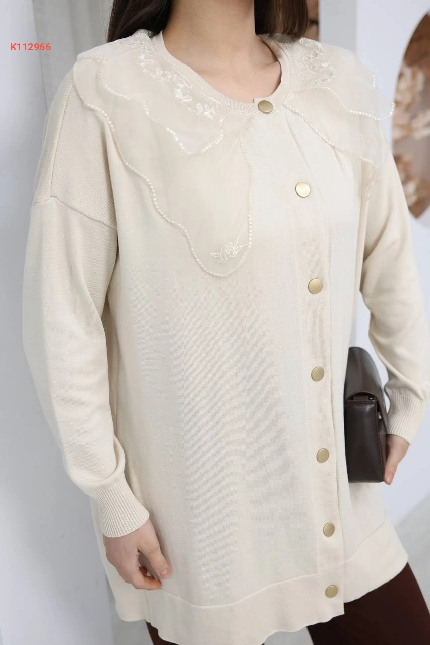 جاكيت صوف سادة بأزرار بياقة شيفون طبقات مطرزة
