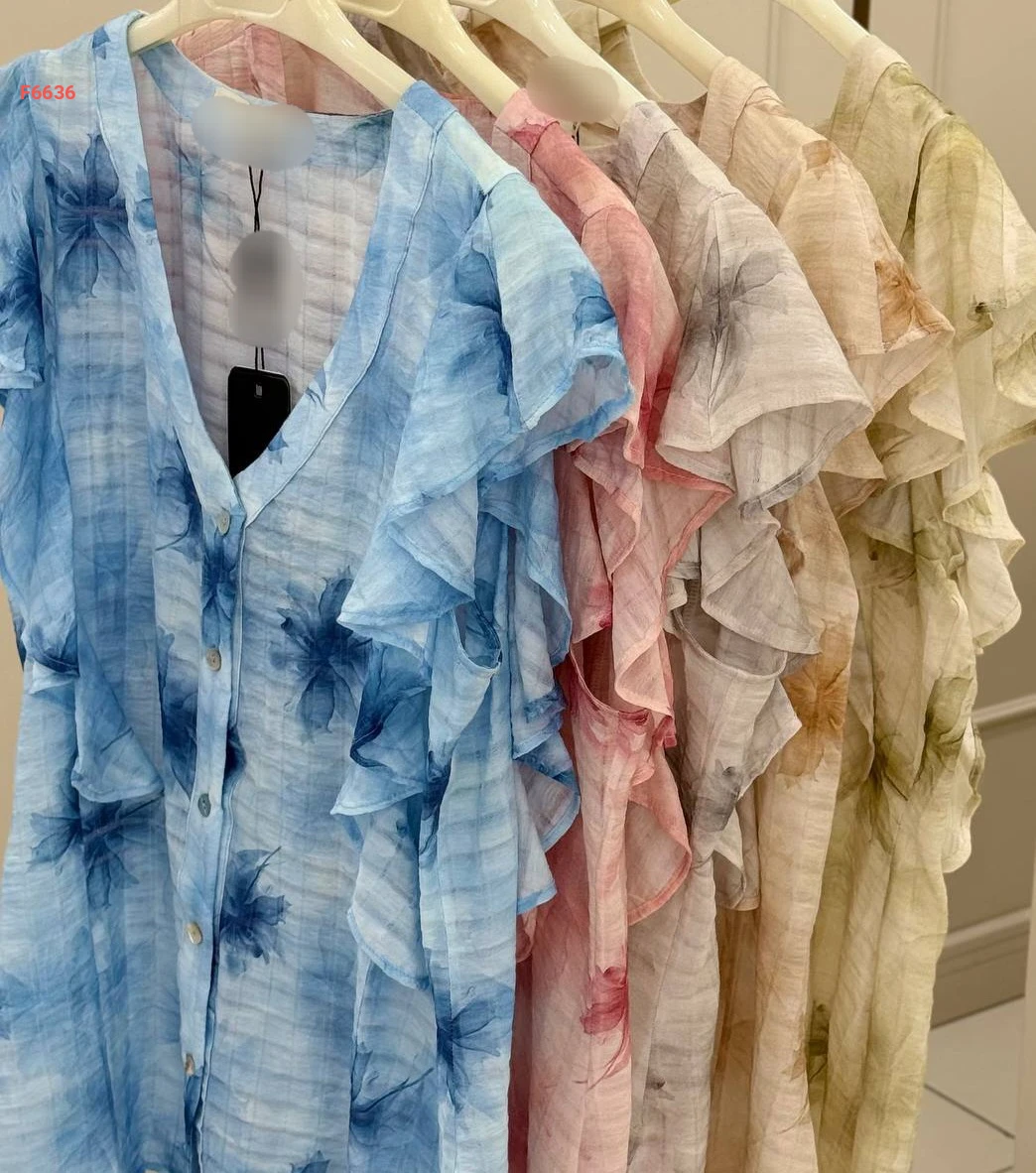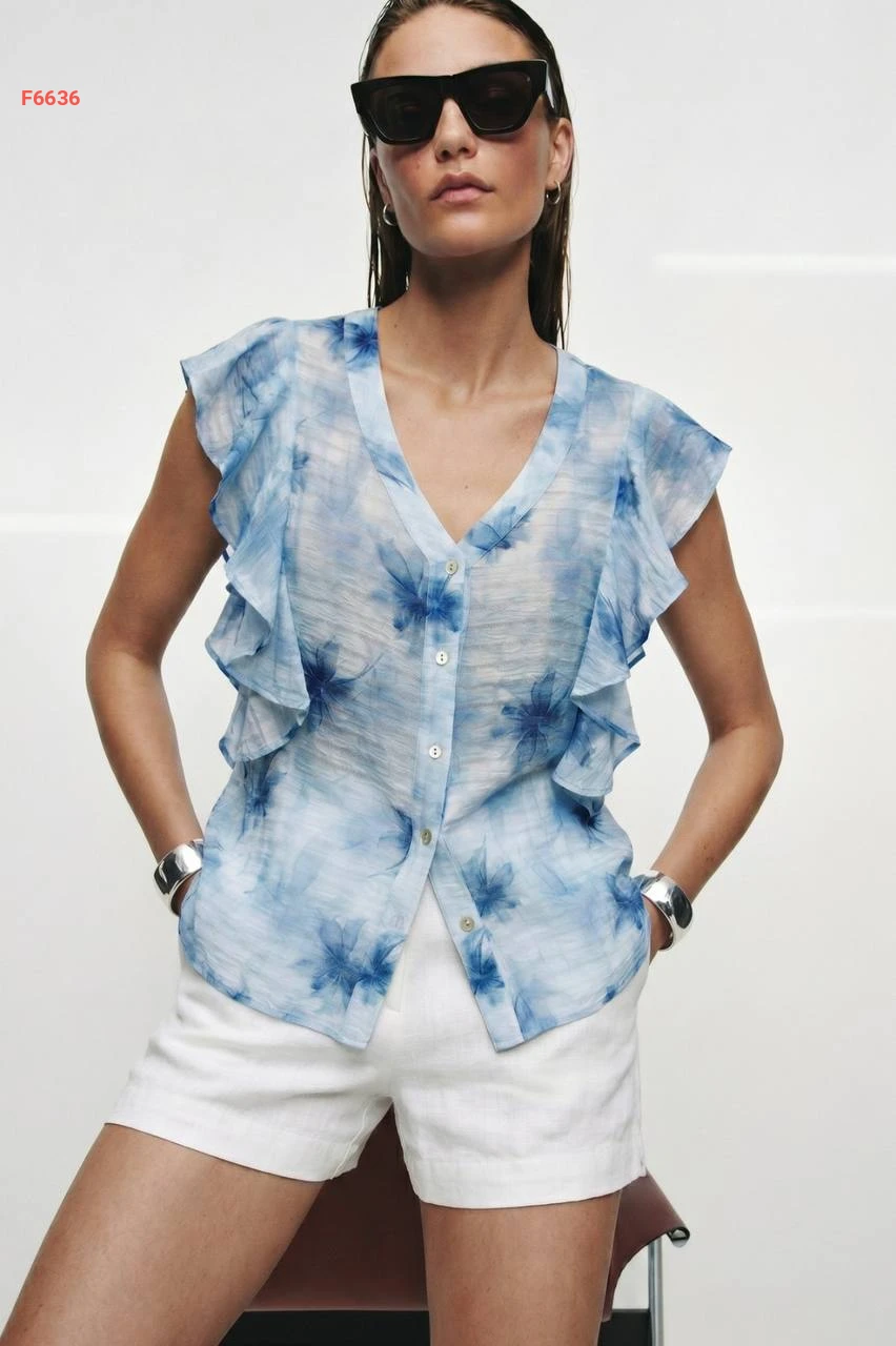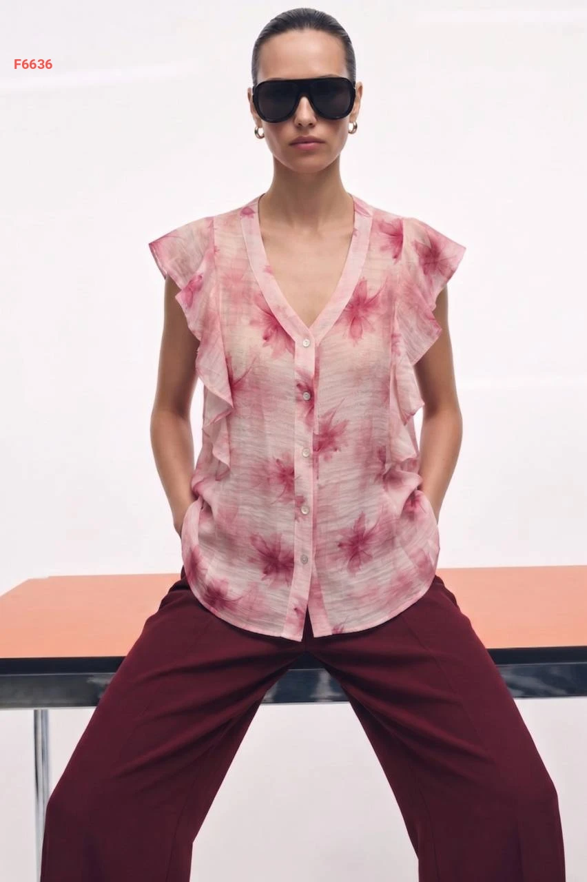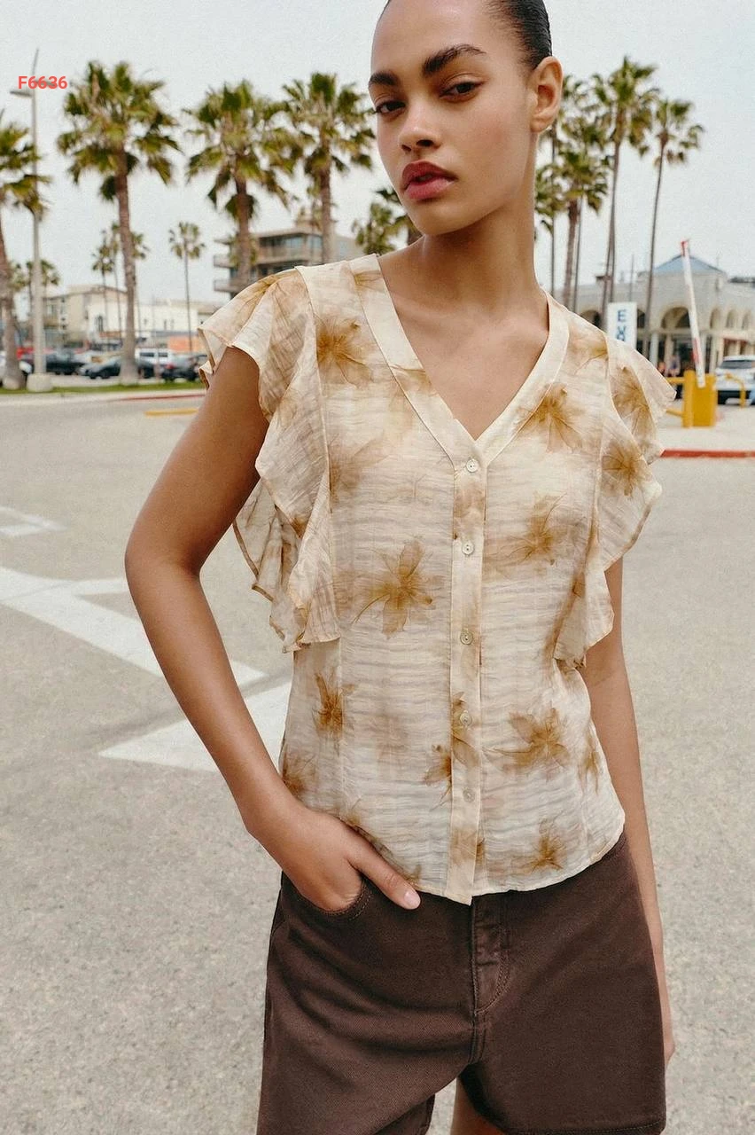 قميص حفر منقوش كشكش عالكتف