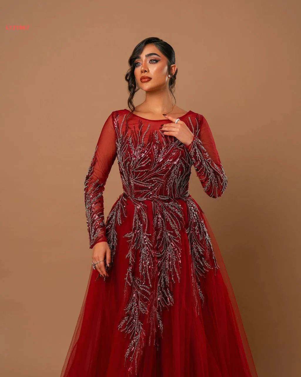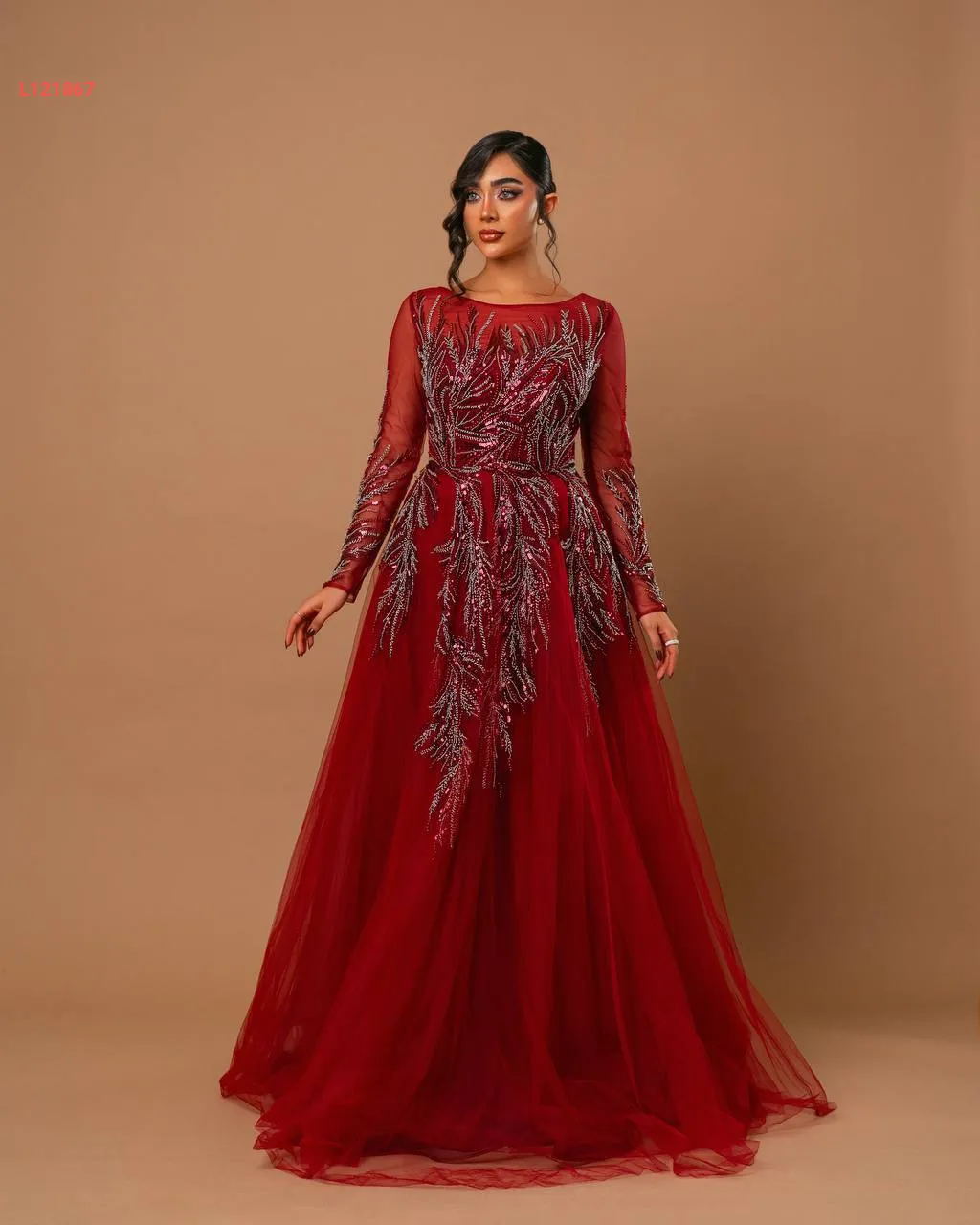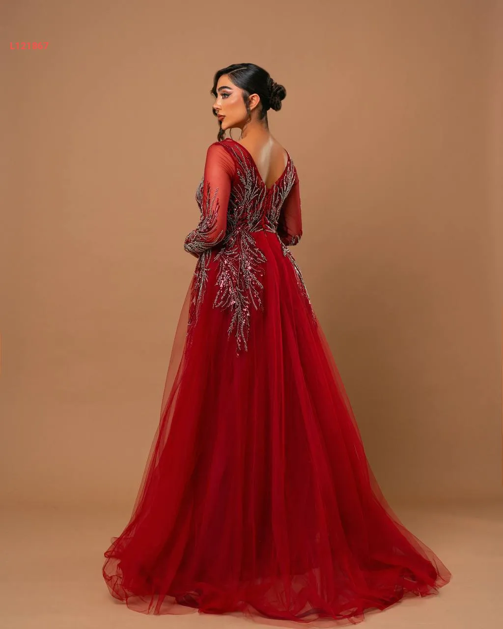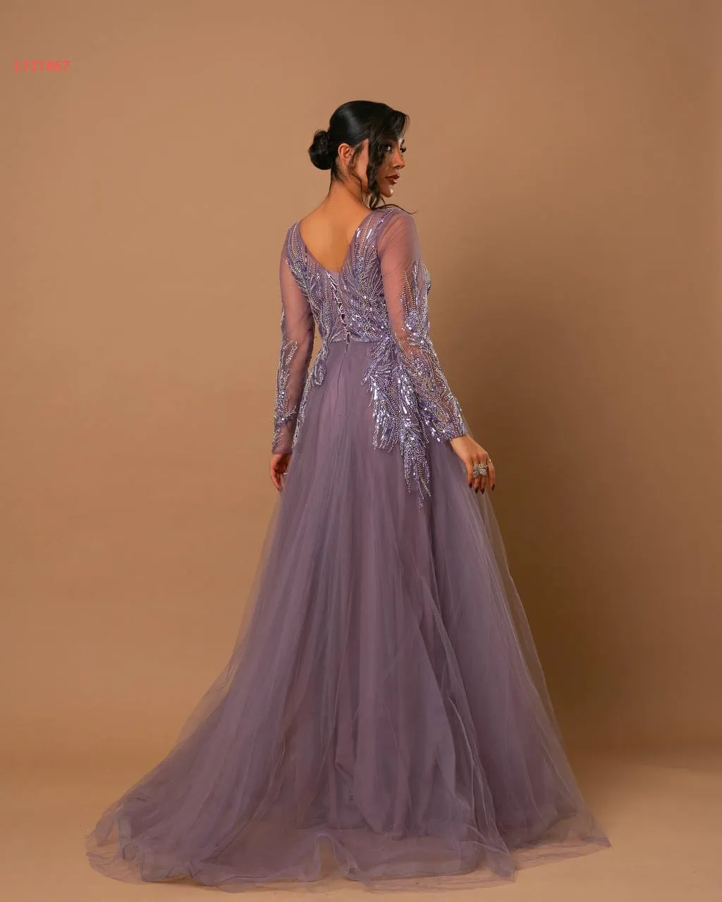 <p>فستان سهرة من الاورجان ، بأكمام ، شك بالبرق السيلان والخرز </p><p>متعدد الألوان </p><p>المقاسات 38/40/42/44/46/48</p>