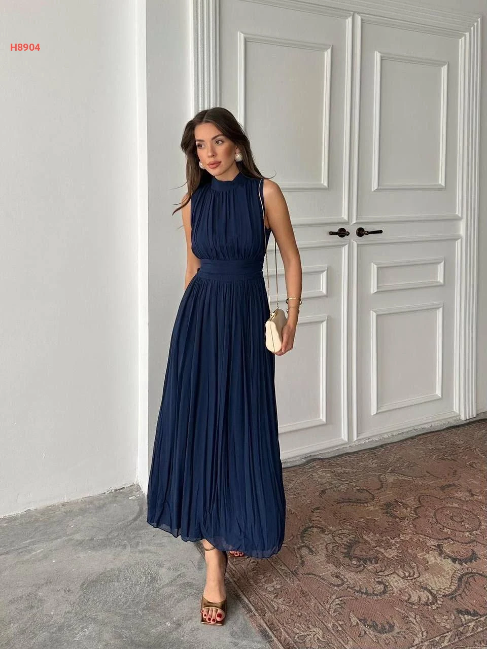 فستان طويل شيفون بليسيه