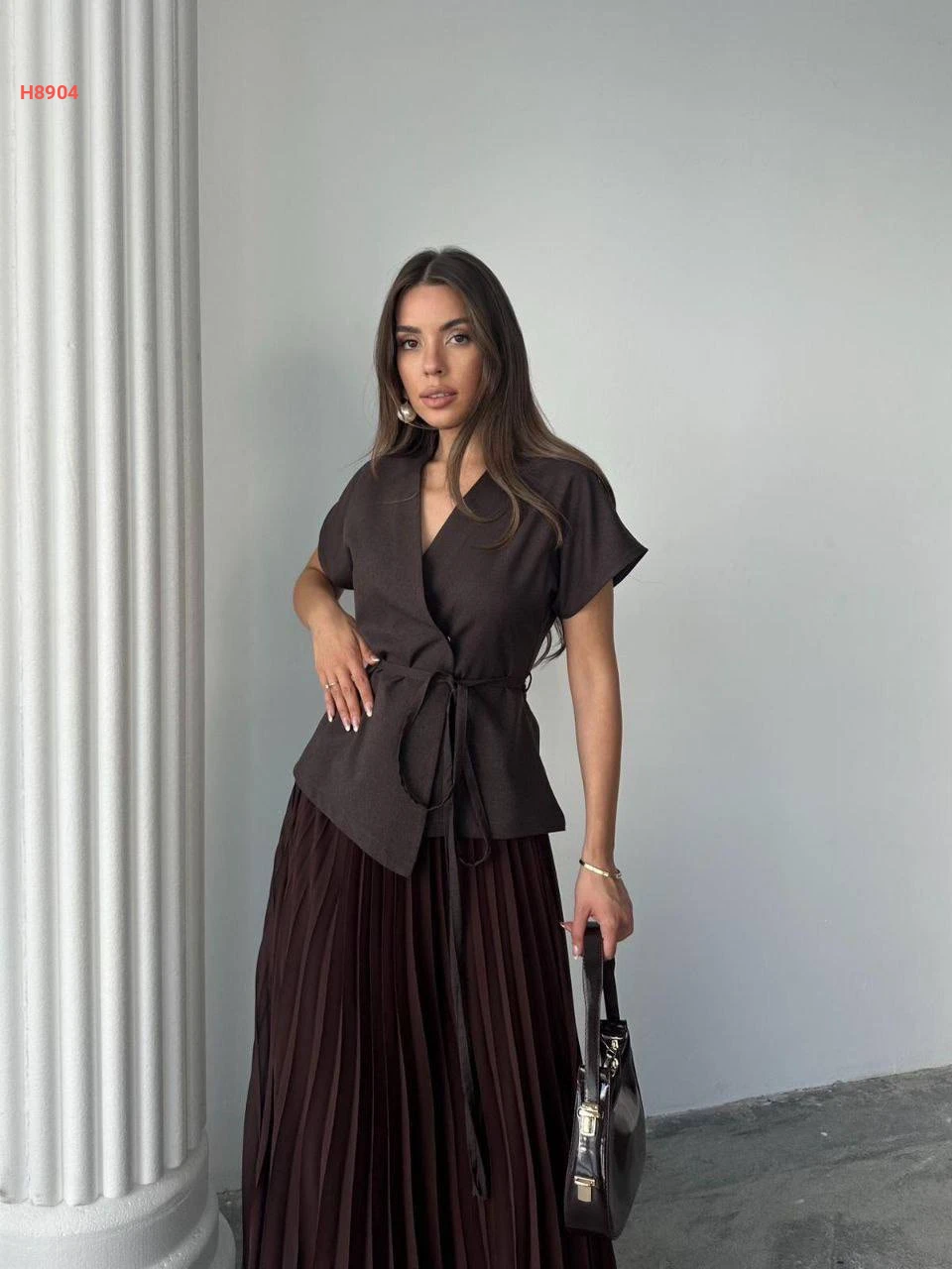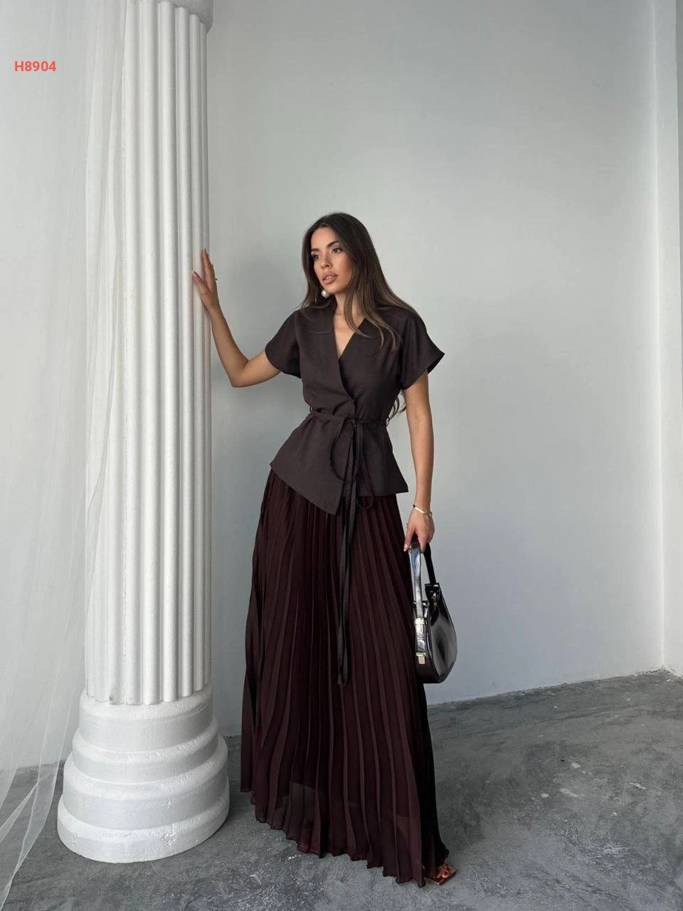 طقم تنورة شيفون بليسيه مع يلك