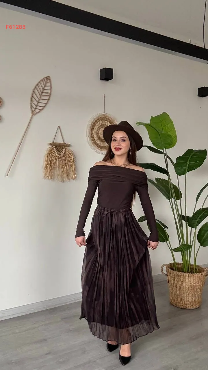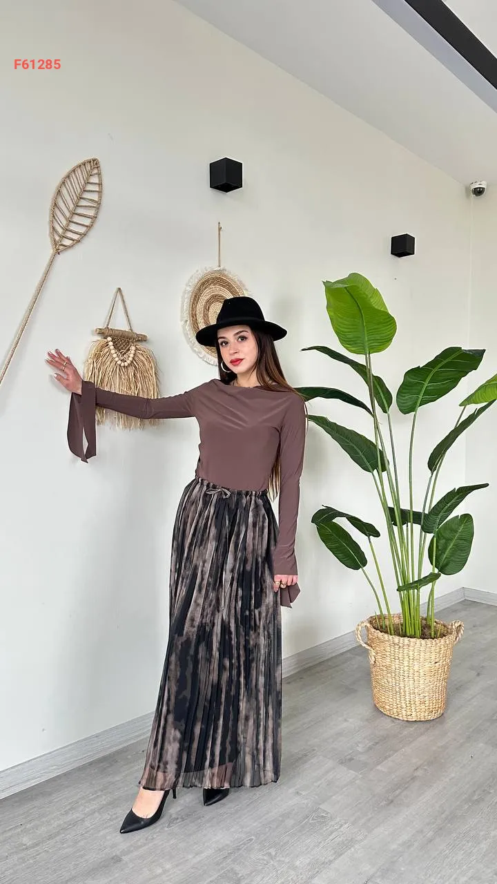 تنورة شيفون بليسيه مبطنة