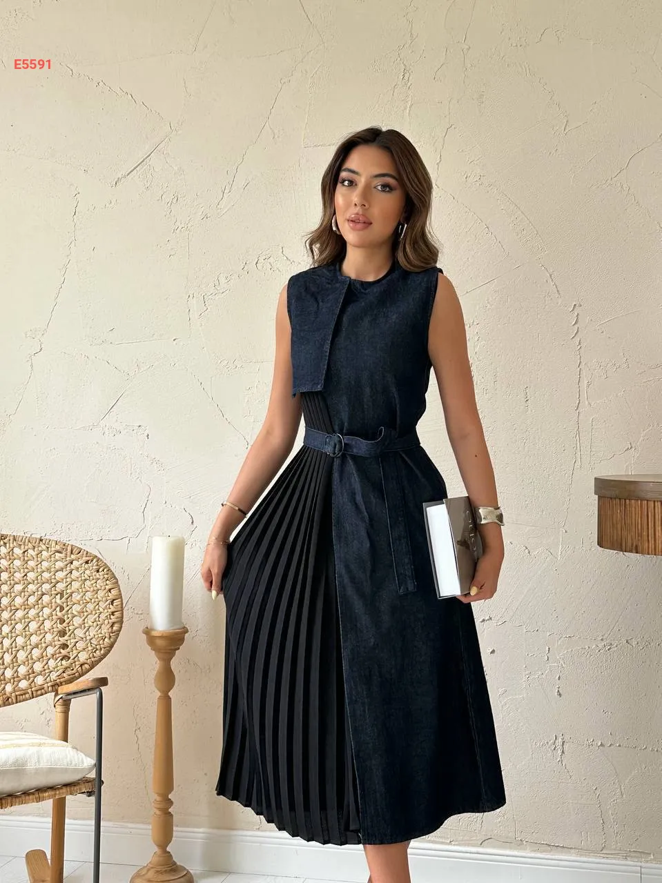 فستان بليسيه وجينز حفر مع حزام