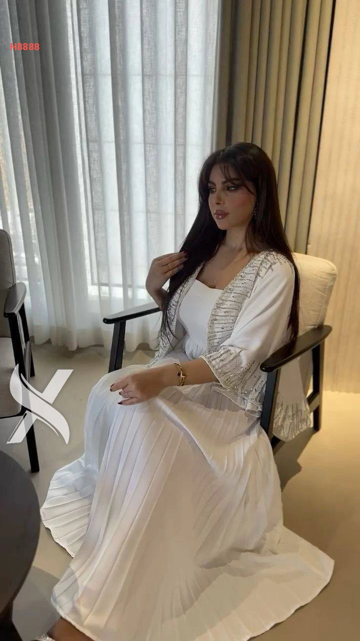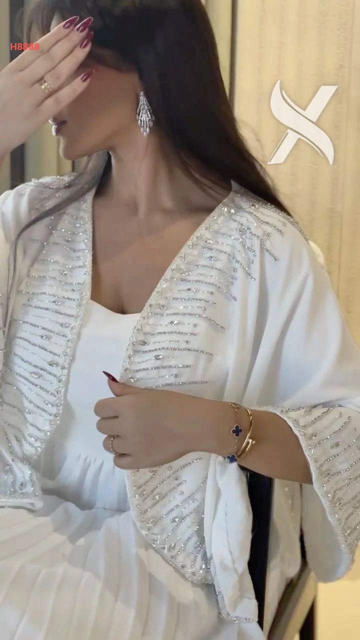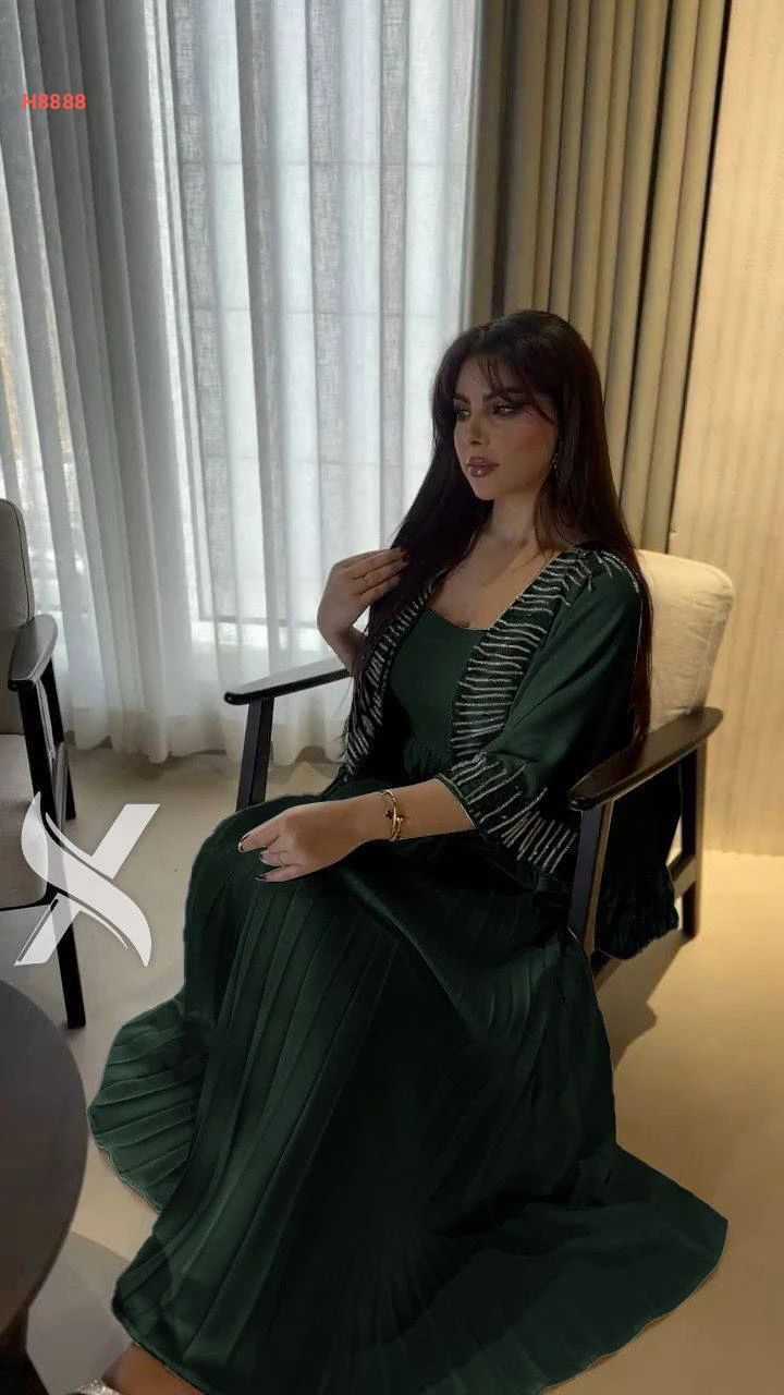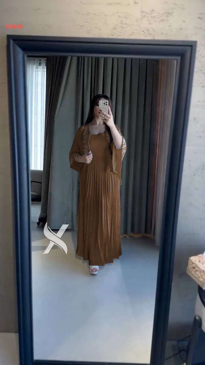 فستان بليسيه مكسر مع كاب كتف مطرز