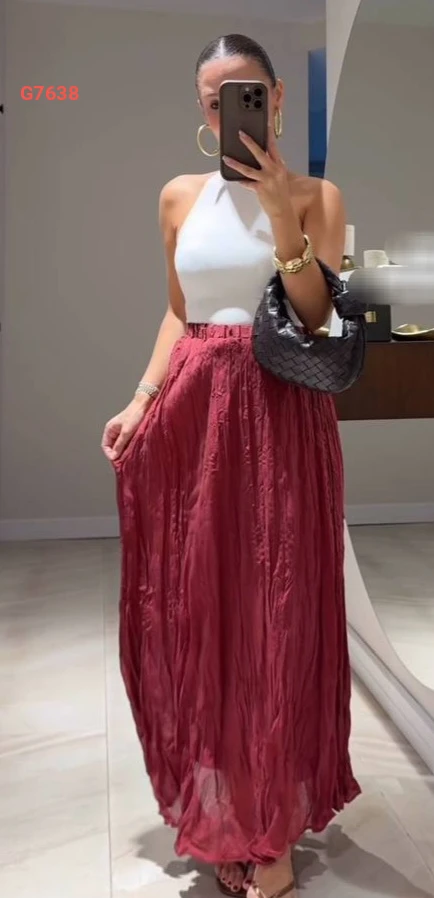 تنورة طويلة مجعدة
