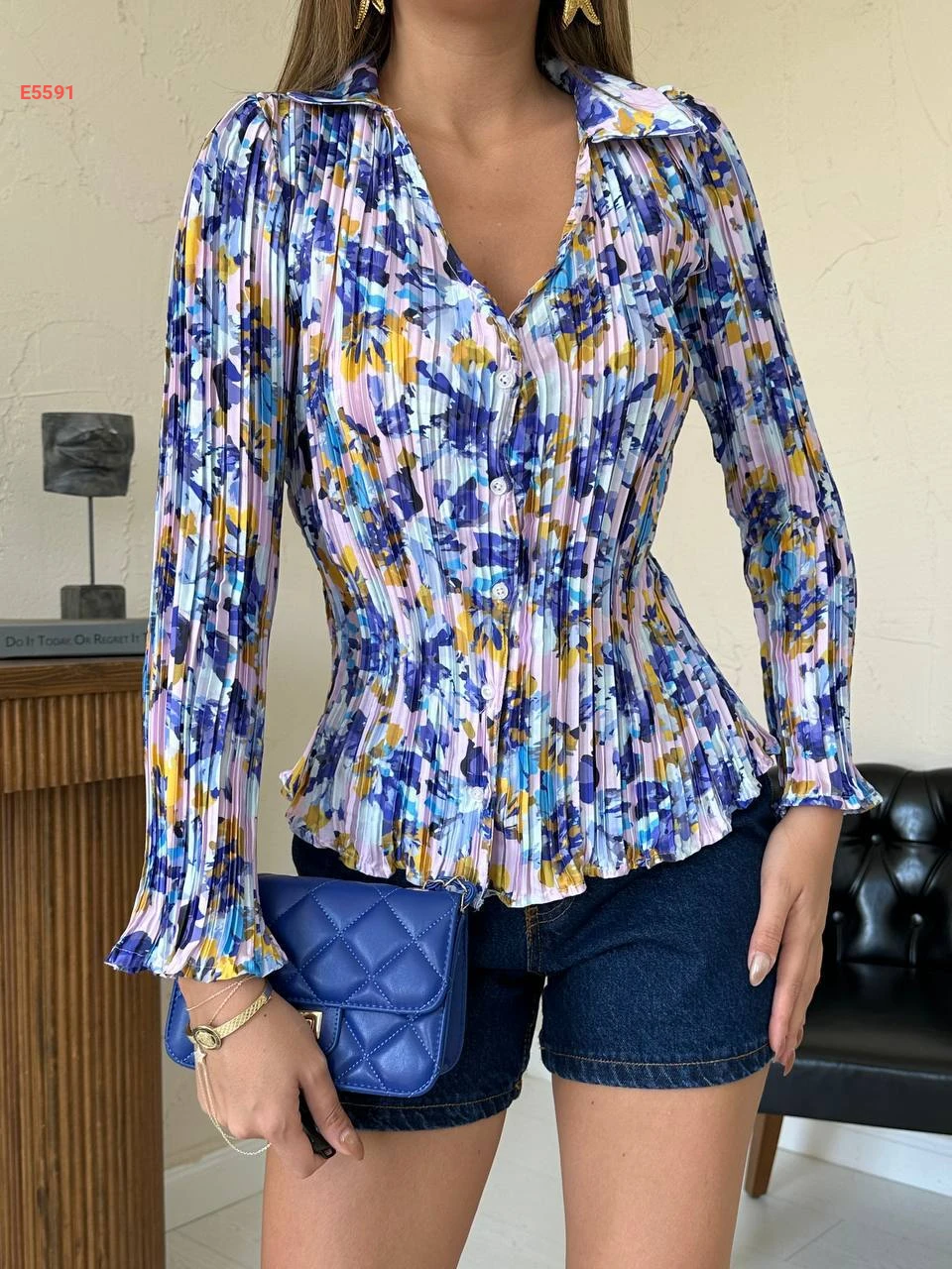 قميص بليسيه منقوش ورد