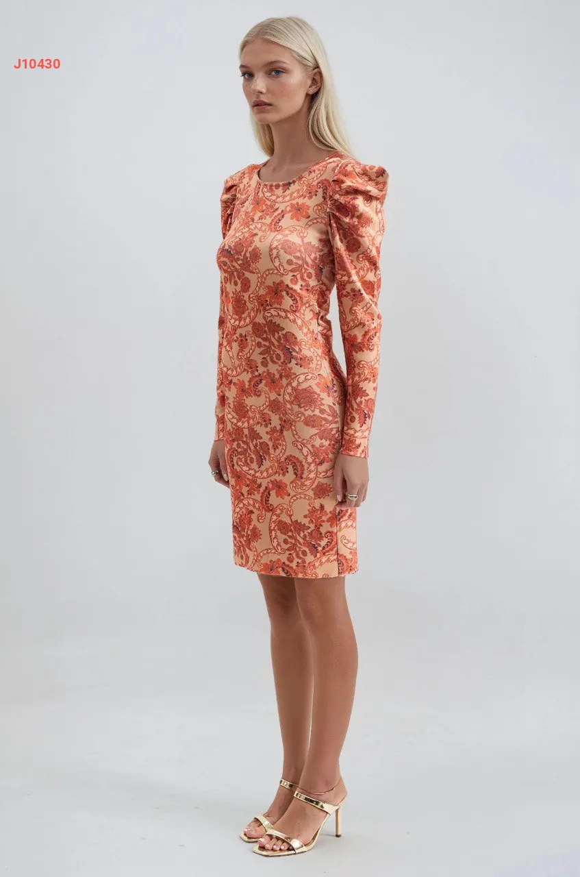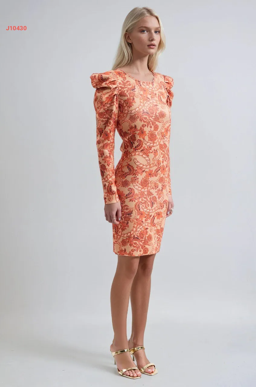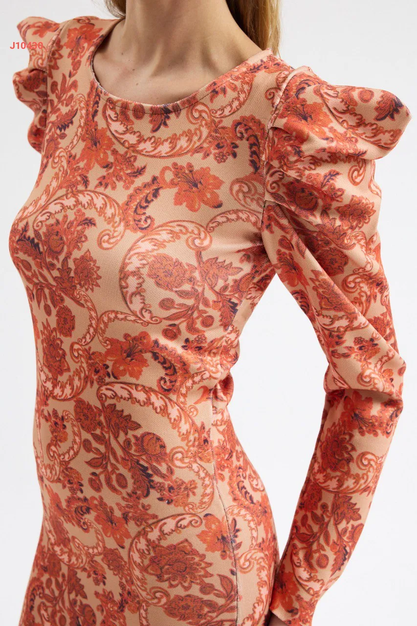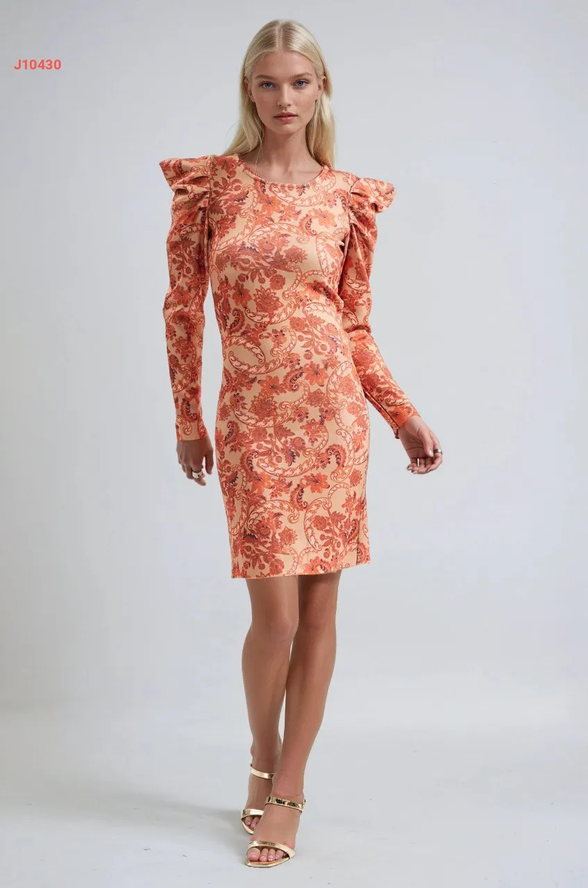 فستان قصير منقوش بأكتاف مجمعة