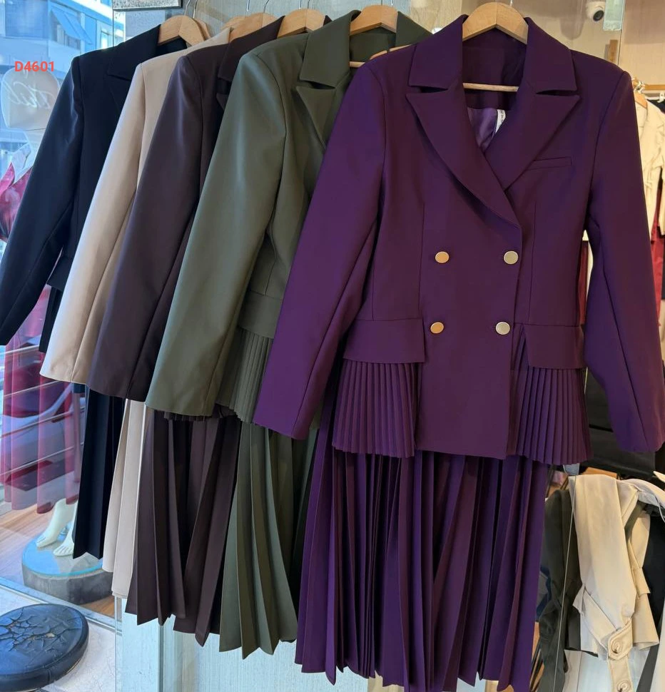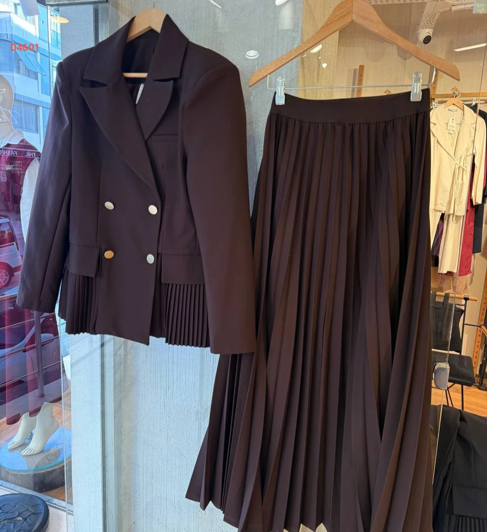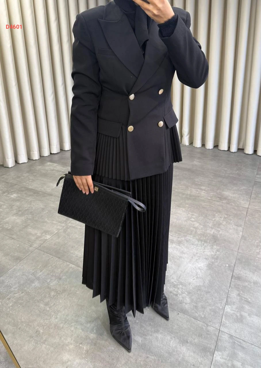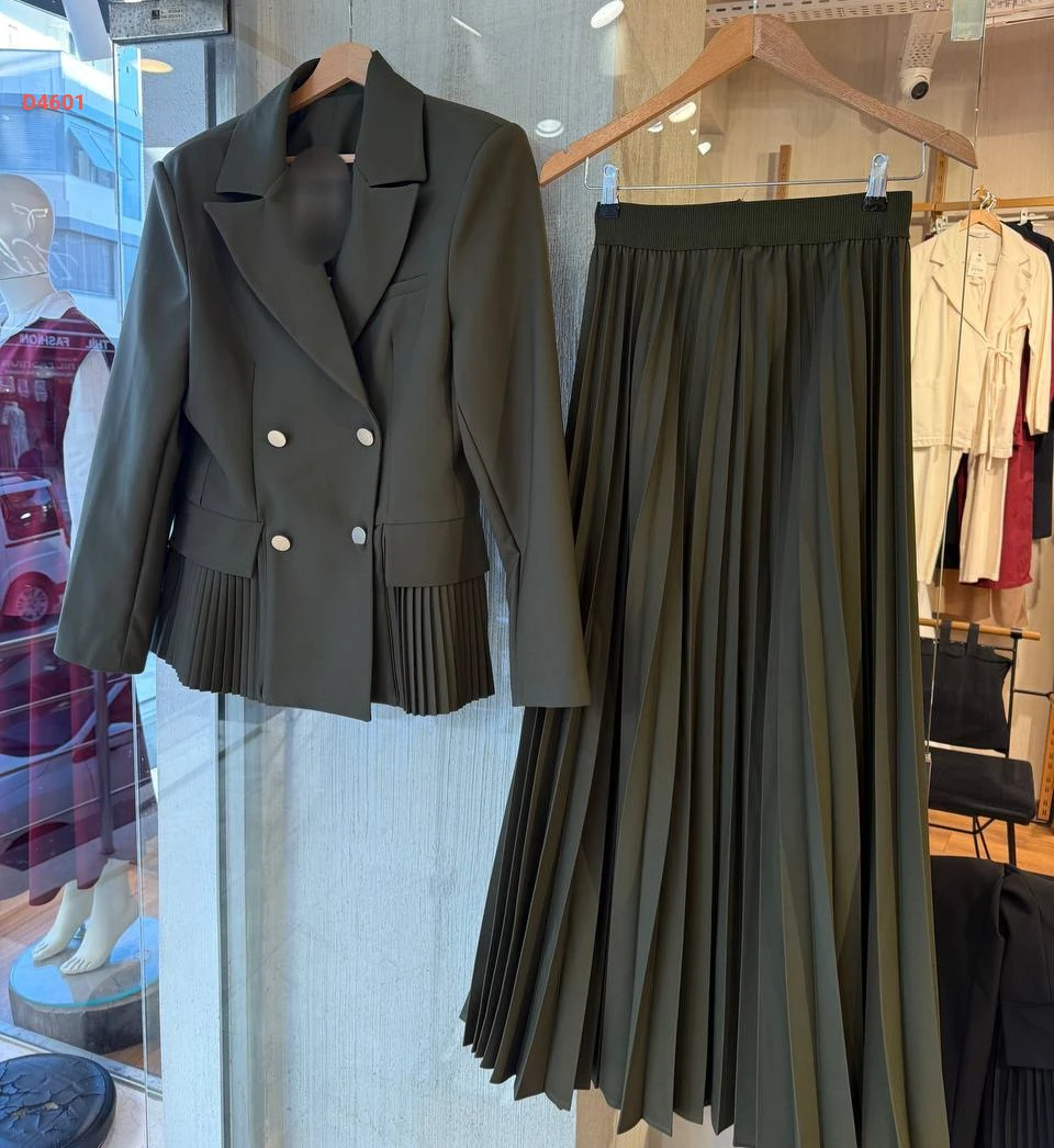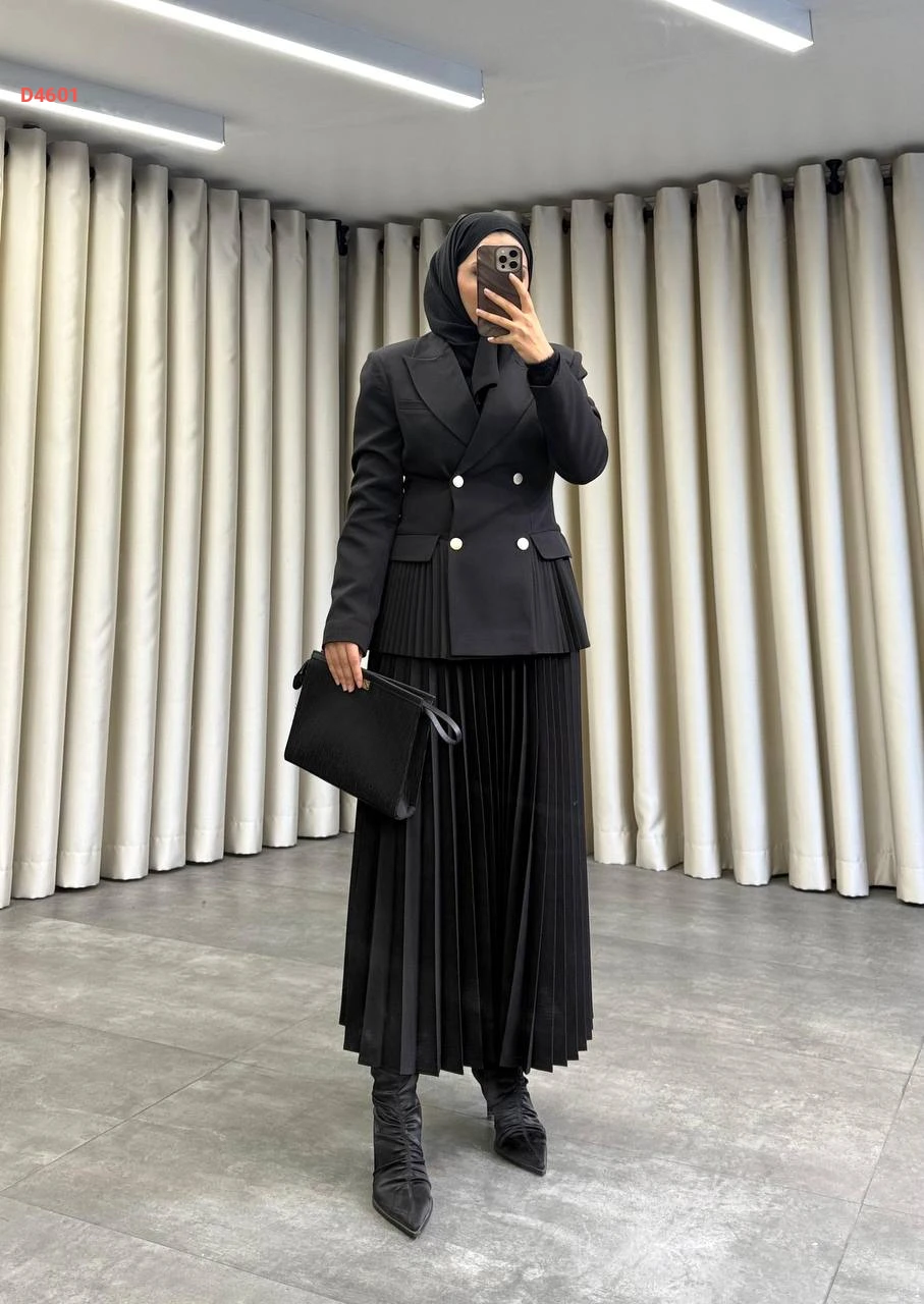 طقم تنورة بليسيه مع بليزر