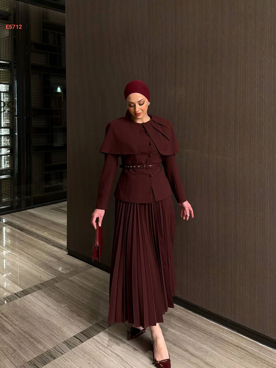 طقم تنورة بليسيه مع جاكيت وحزام