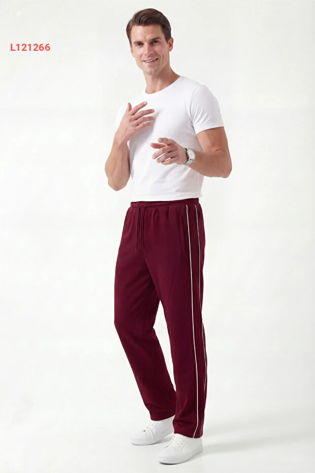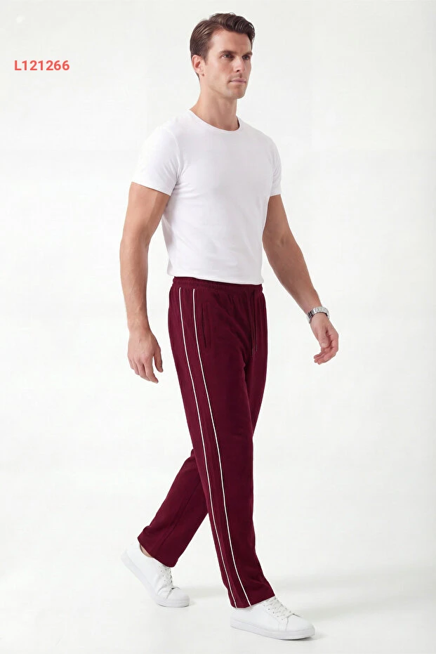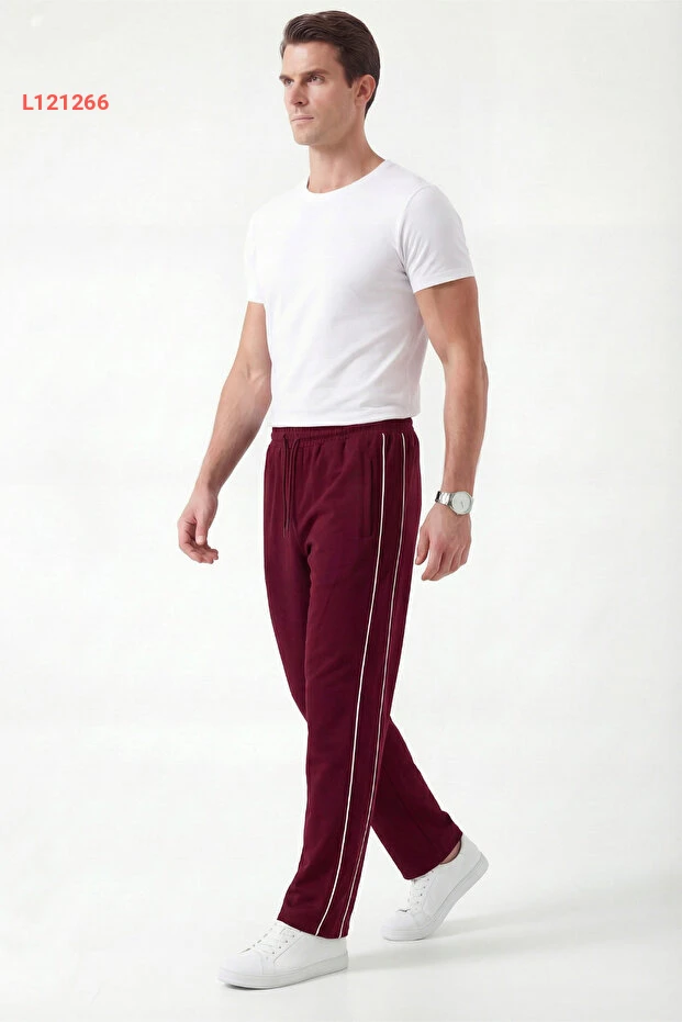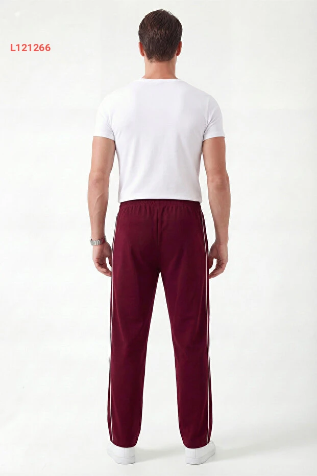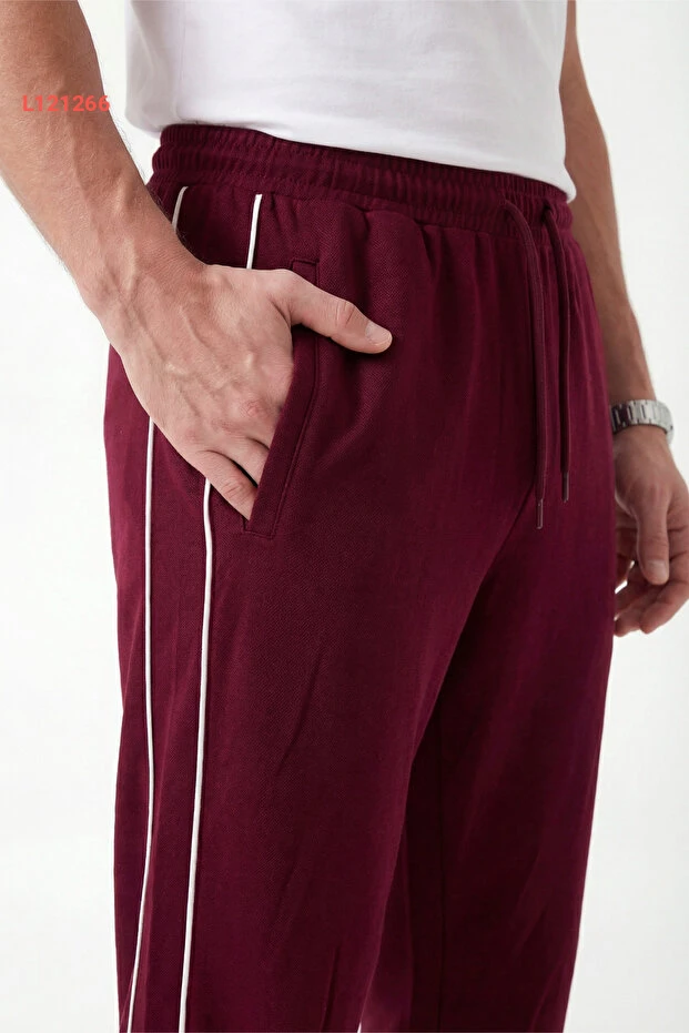 بناطيل رياضية للرجال بلون بورجوندي بجيوب بسحاب وحواف مطاطية