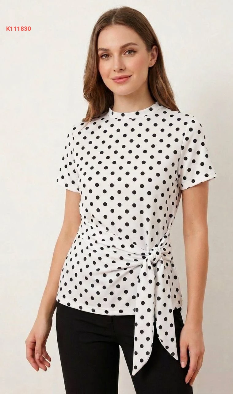 بلوزة منقطة بربطة خصر جانبية