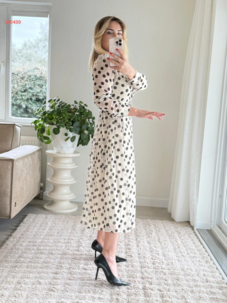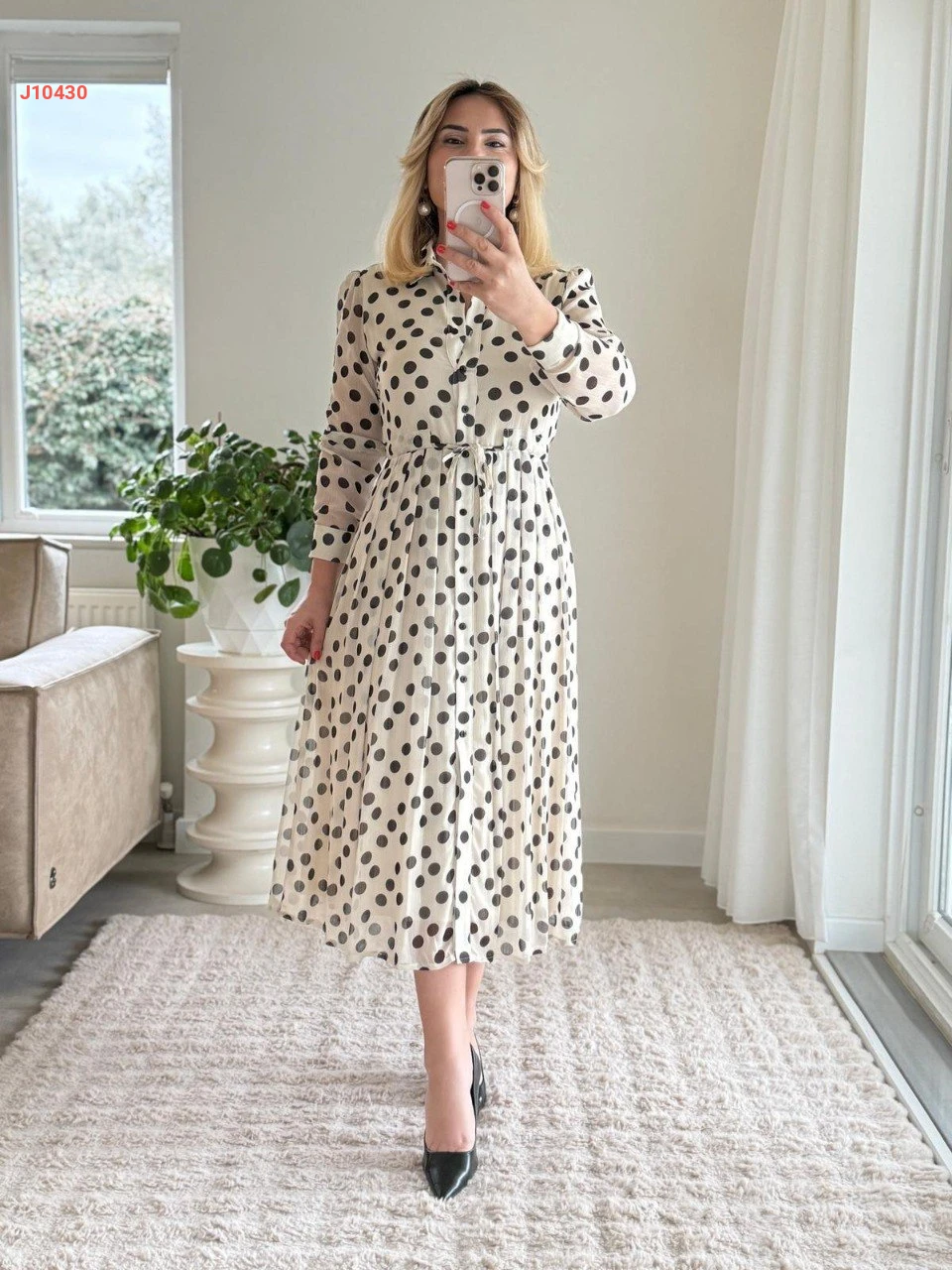 فستان شيفون منقط بأزرار