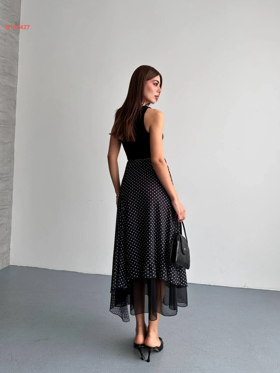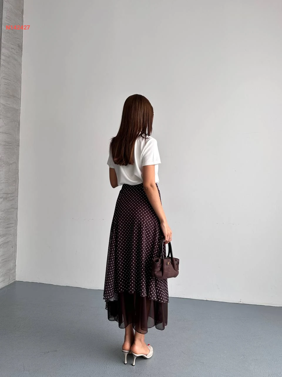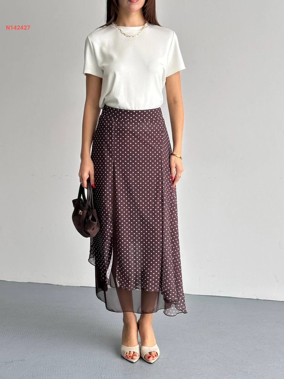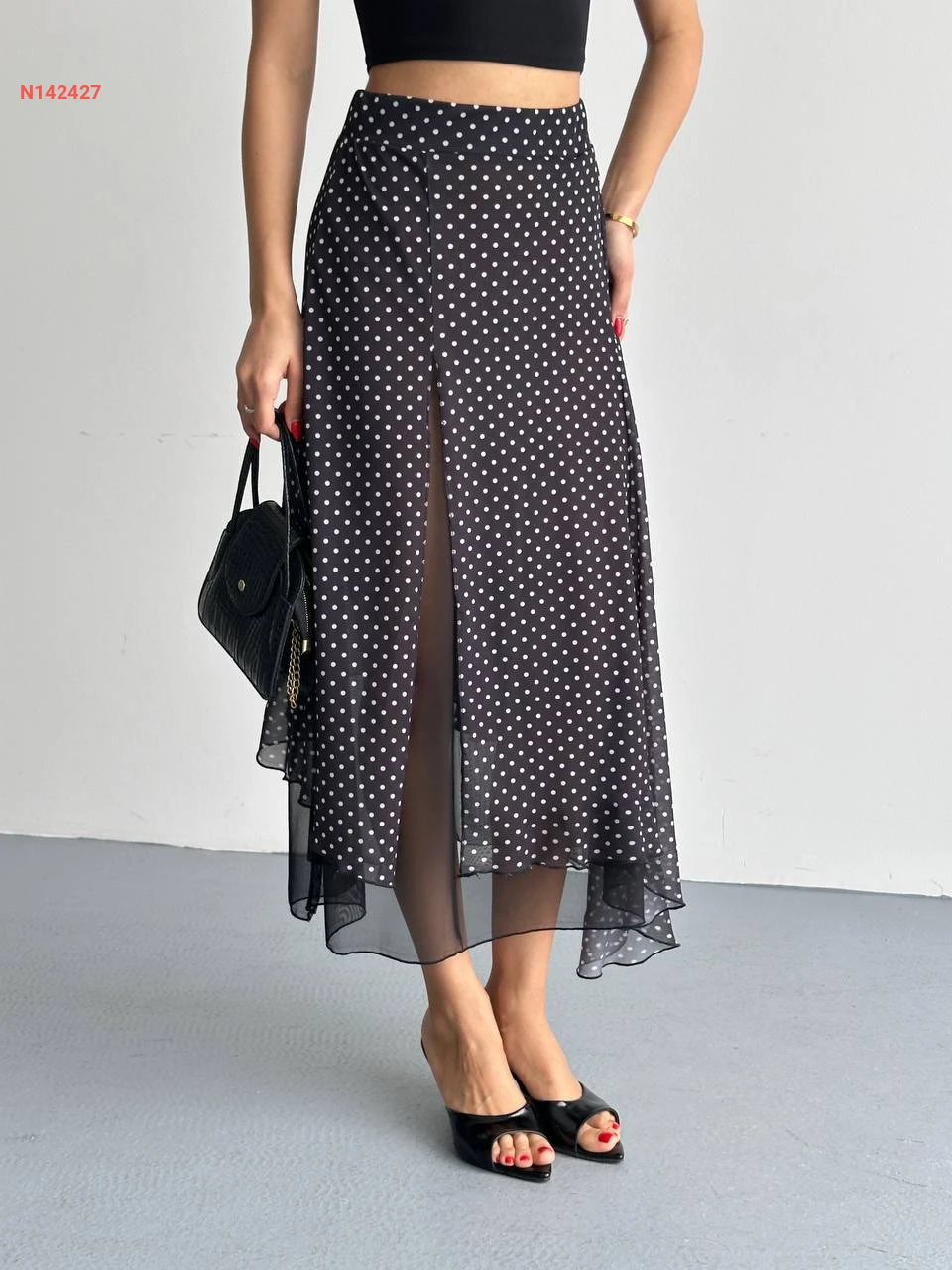تنورة طويلة شيفون منقطة