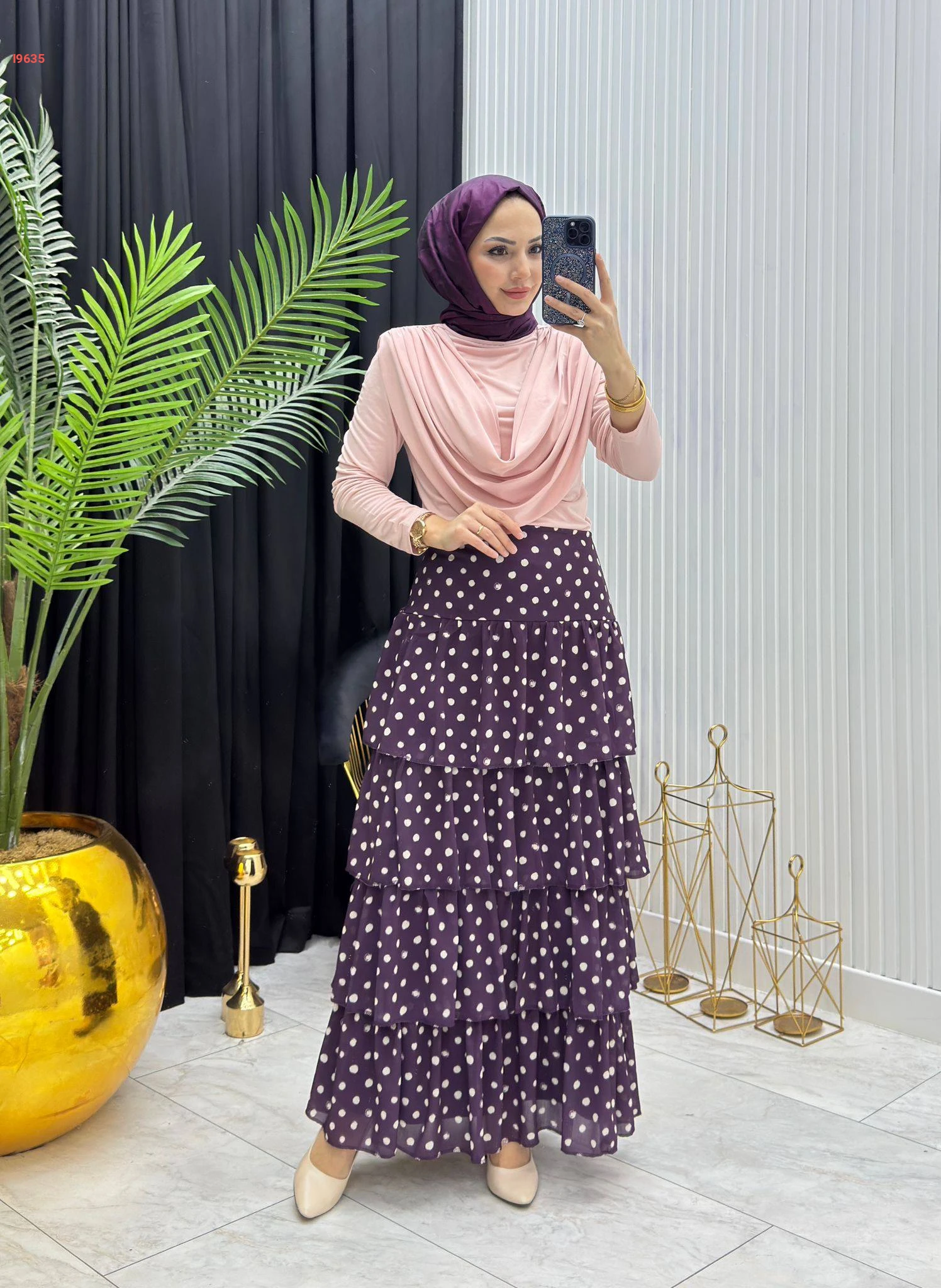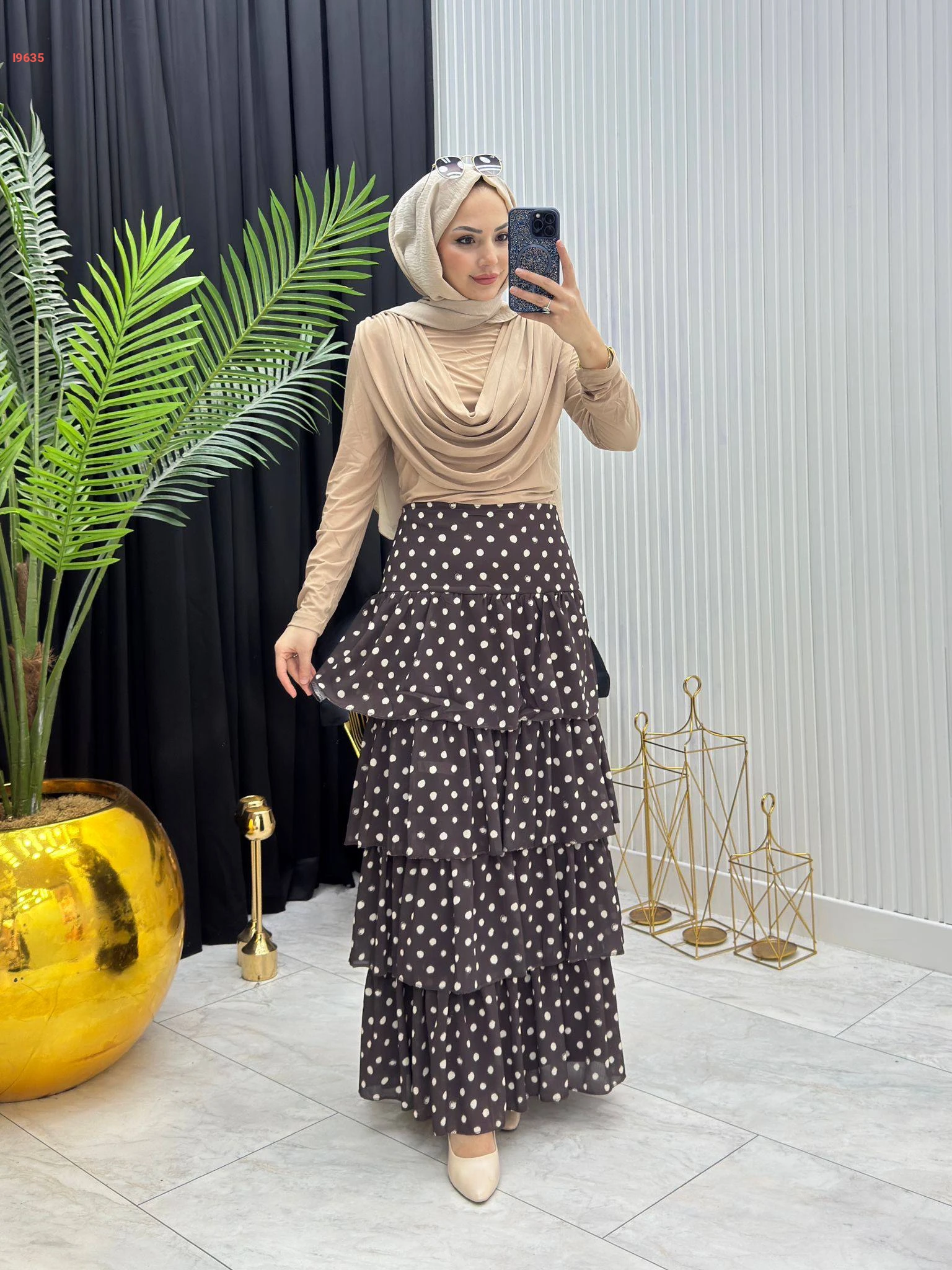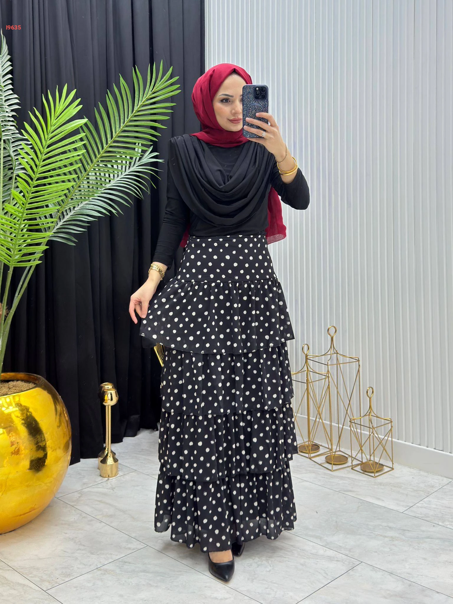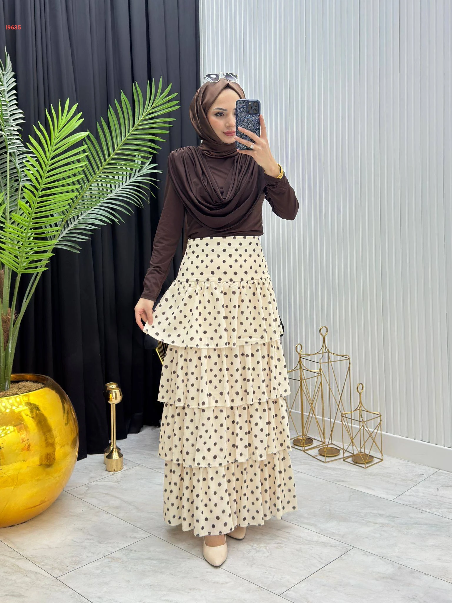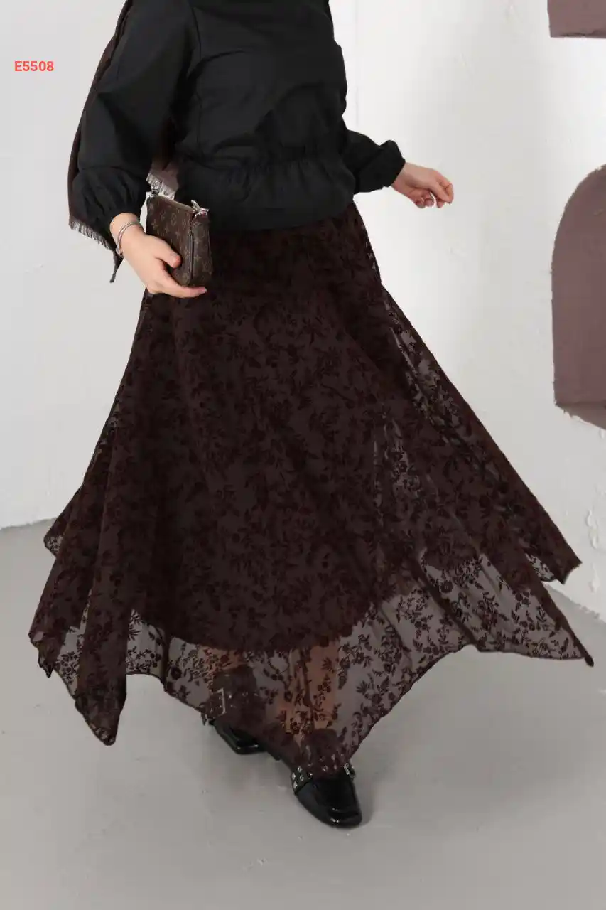 تنورة شيفون كشكش منقطة