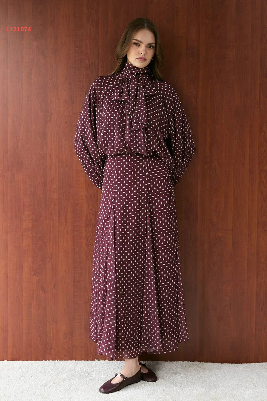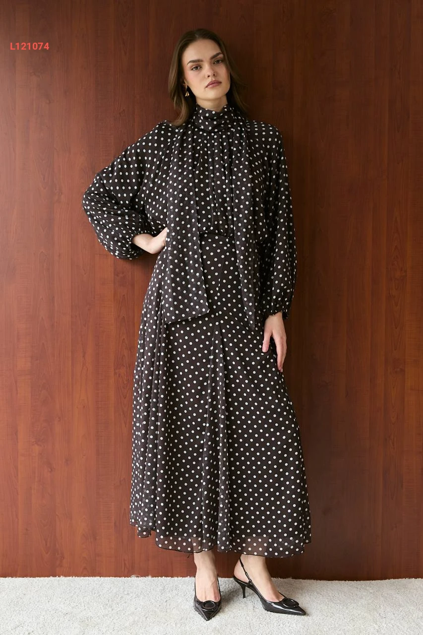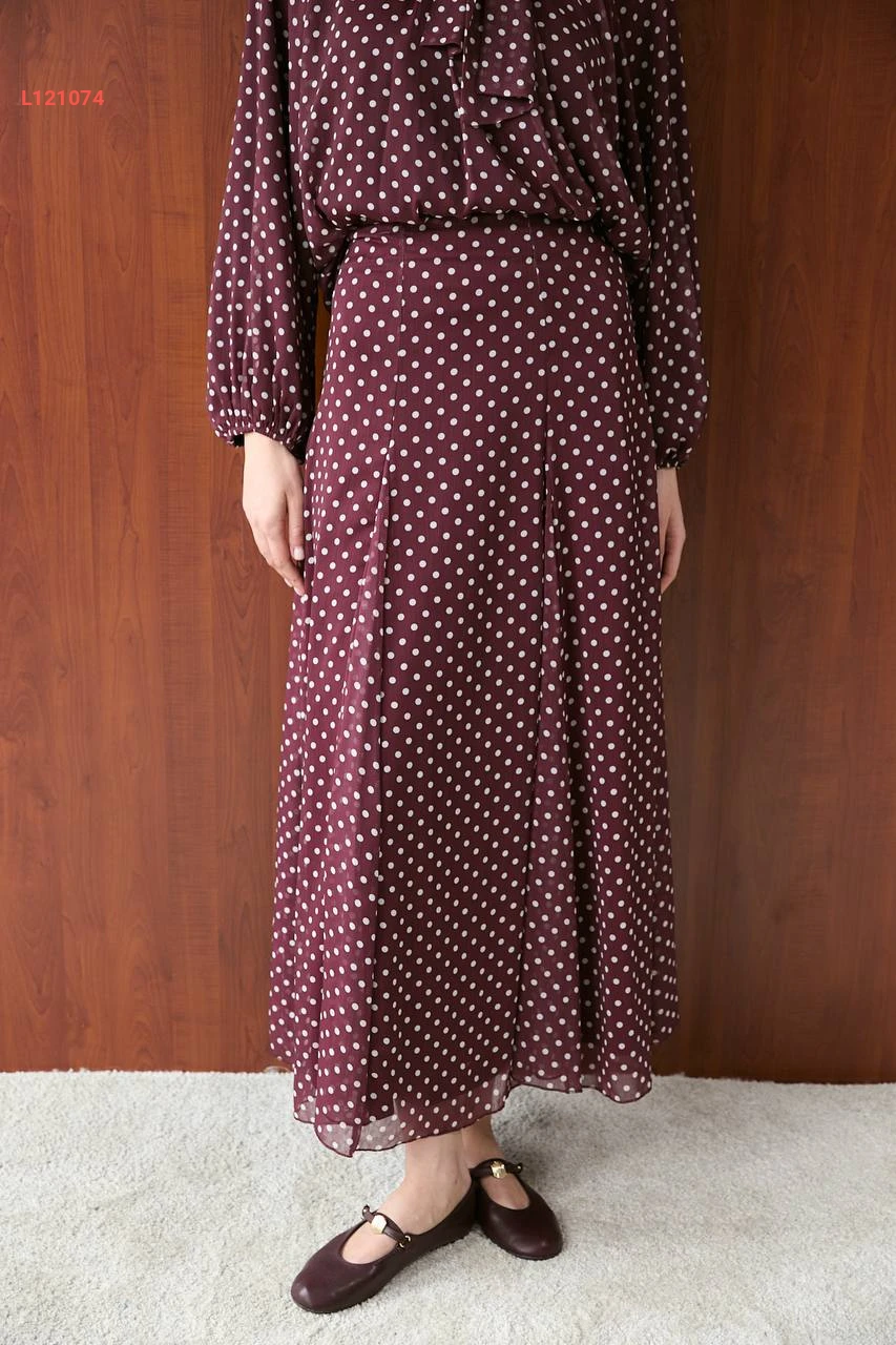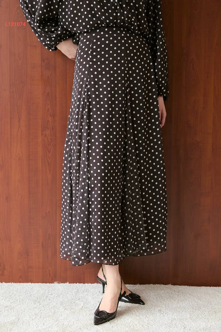 طقم تنورة طويل شيفون منقط